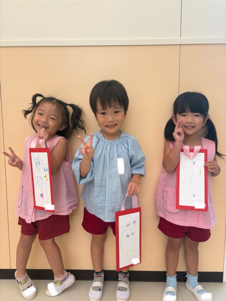 完成した作品を持って写真を撮ると、みんな嬉しそうでした^_^
