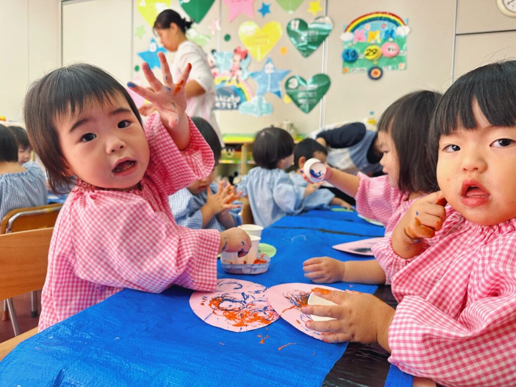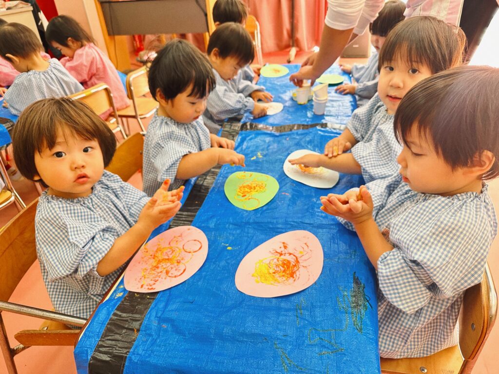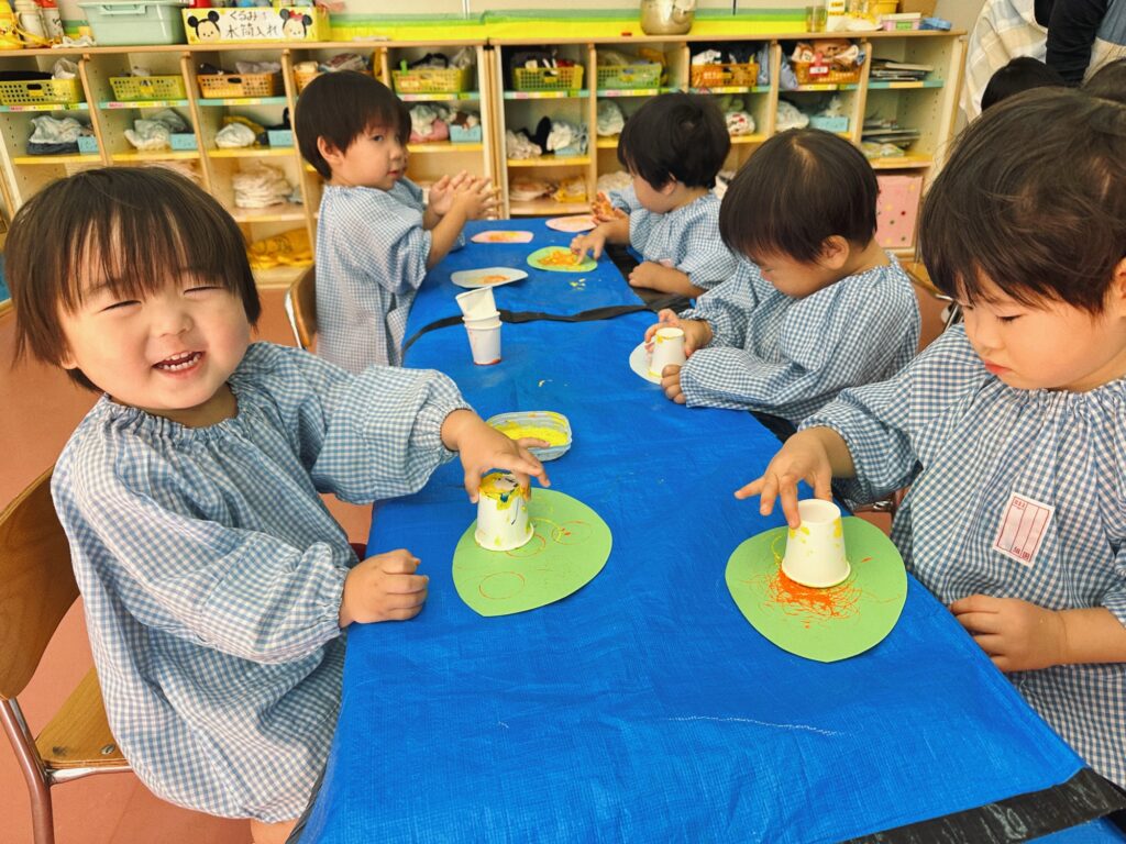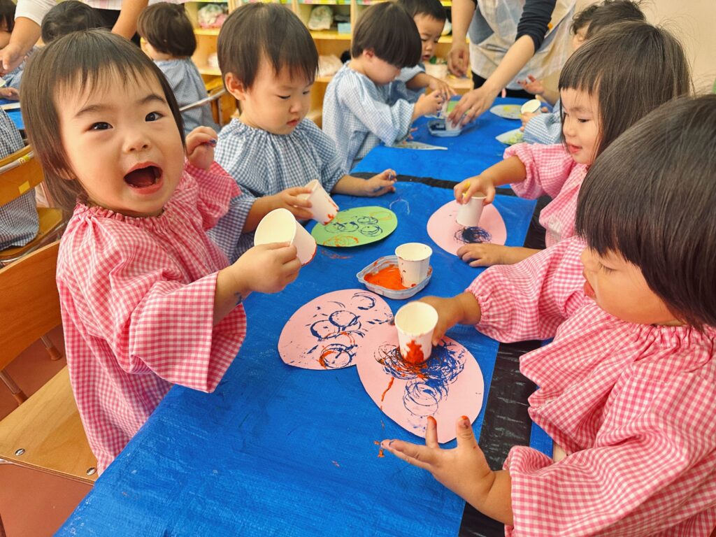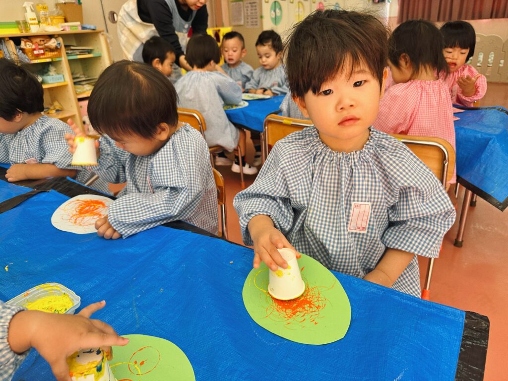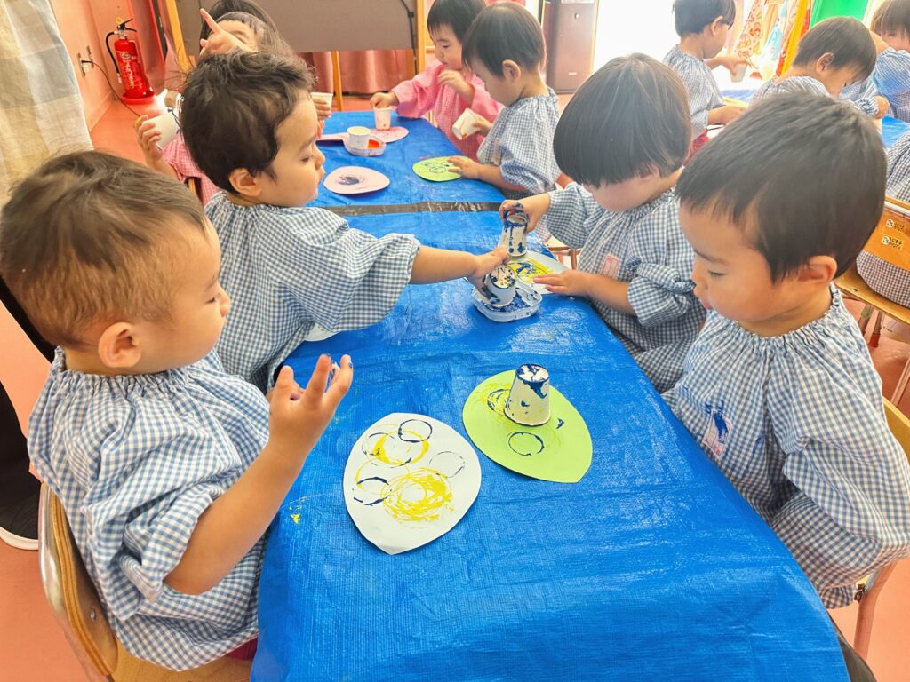 絵の具をつけた紙コップでスタンプ!