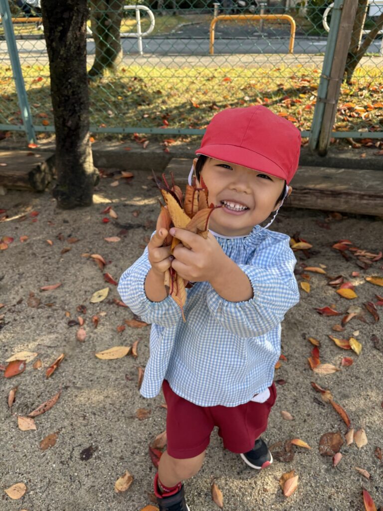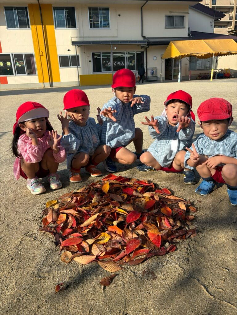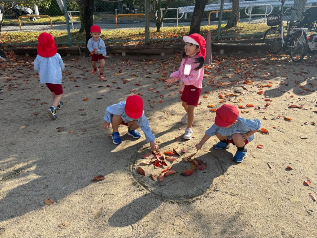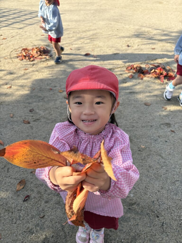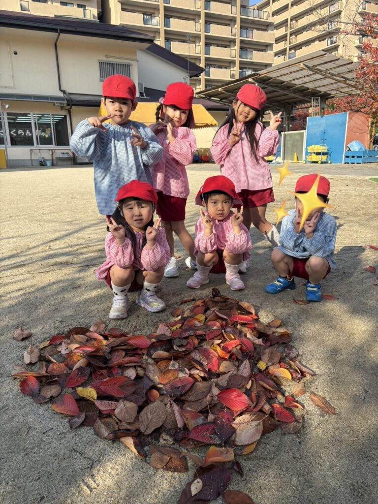 他のチームに負けたくない一心で、みんな夢中に落ち葉を集めていましたよ!