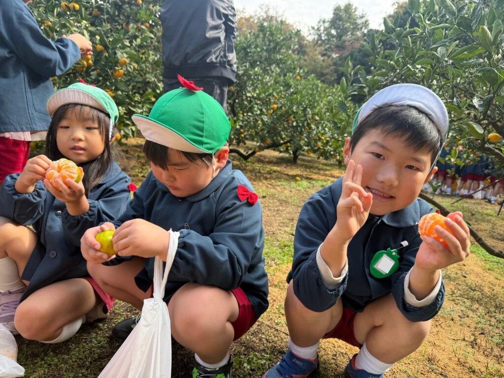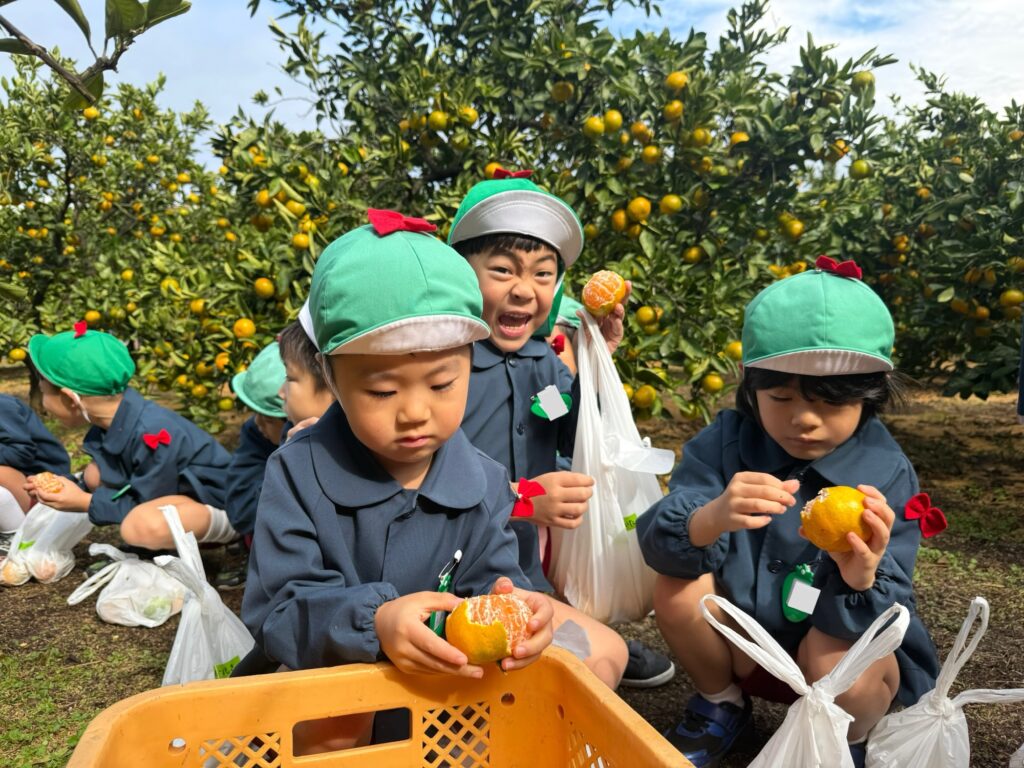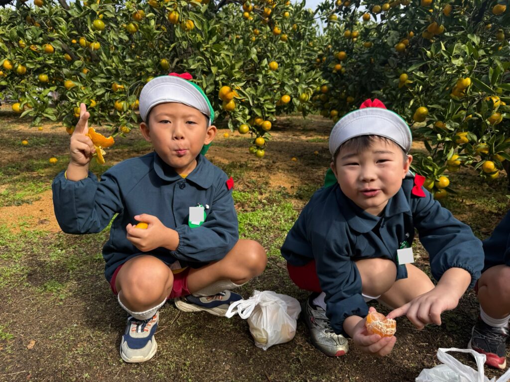 みかん狩りでは子どもたちは
