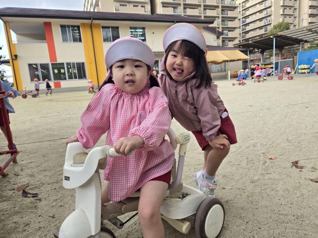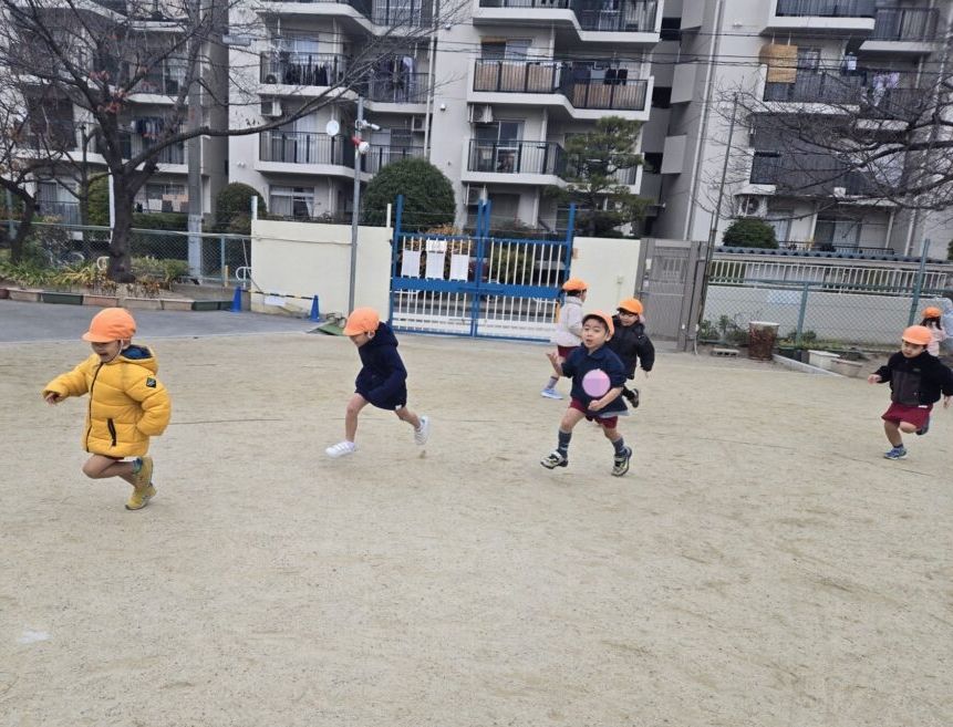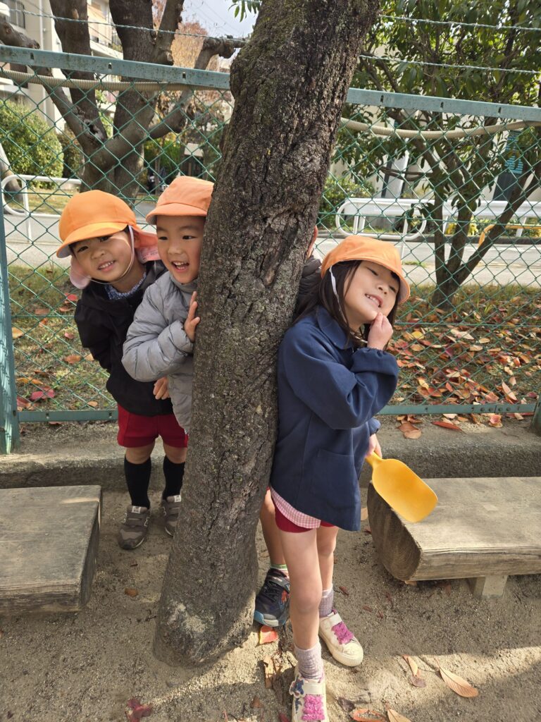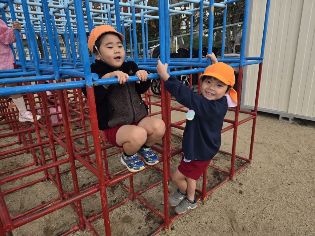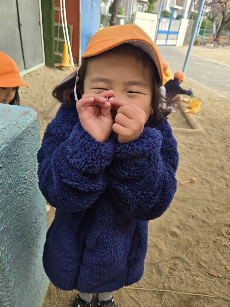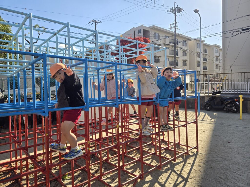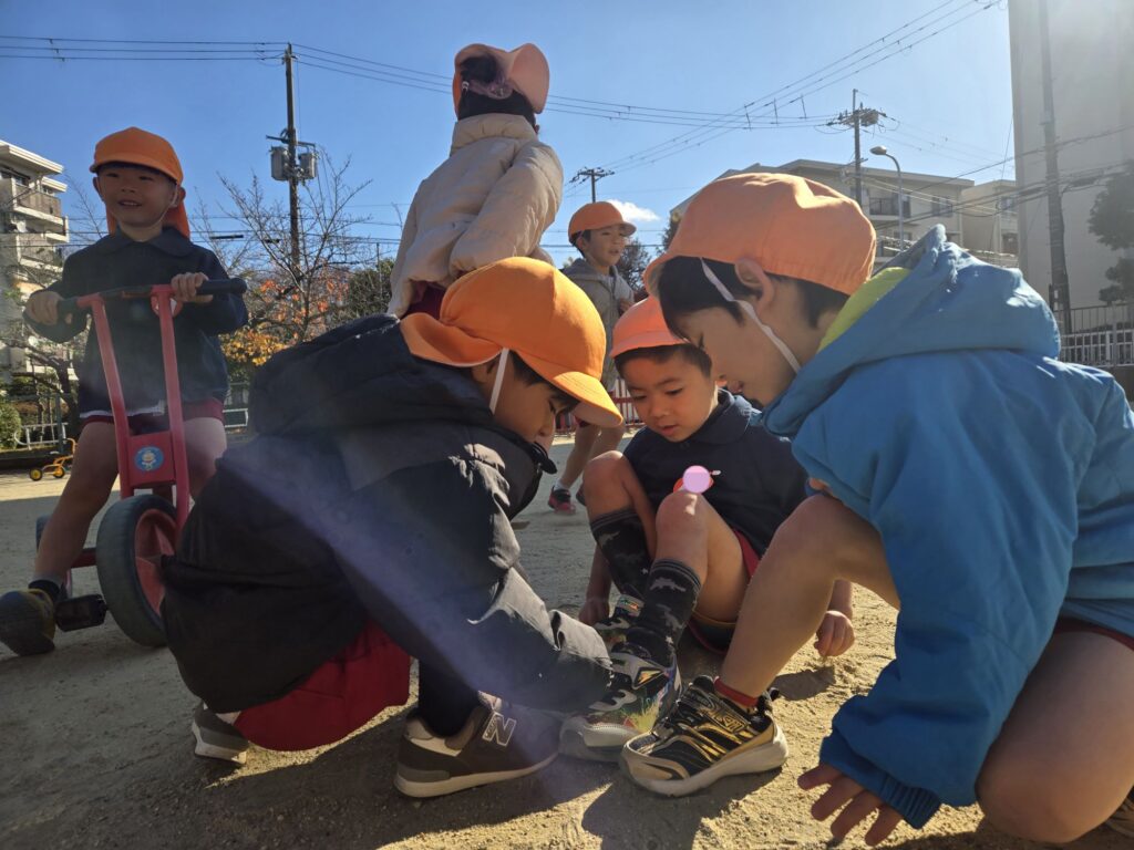 大東市 保育園 新町保育園 4歳もも組 寒くても、子ども達は元気いっぱいです! どんぐり見つけたよ☆ 石も集めたよ☆ ジャングルジムも楽しいよ~ 小さなお友だち大好き♡ なんと、もも組に新しいお友だちが仲間入りしましたよ! 優しく言葉を掛けてくれたり一緒に遊んだり優しい子どもたちでした♡