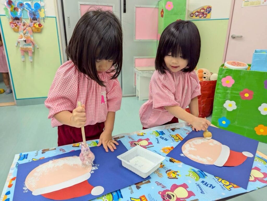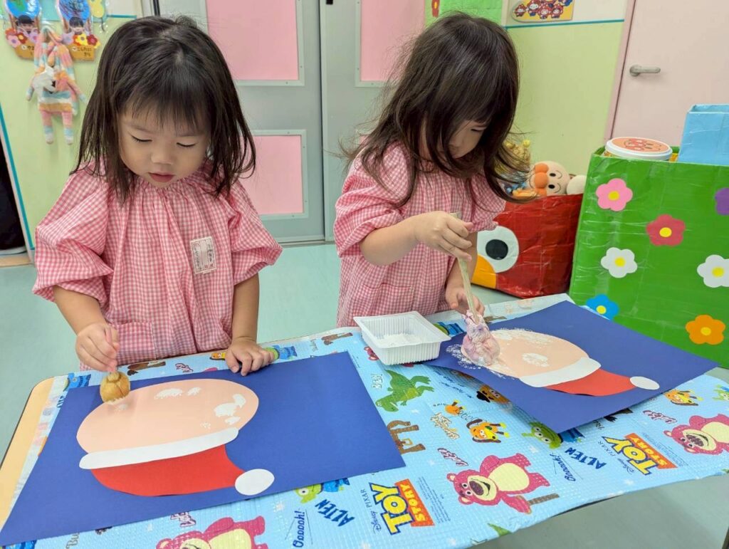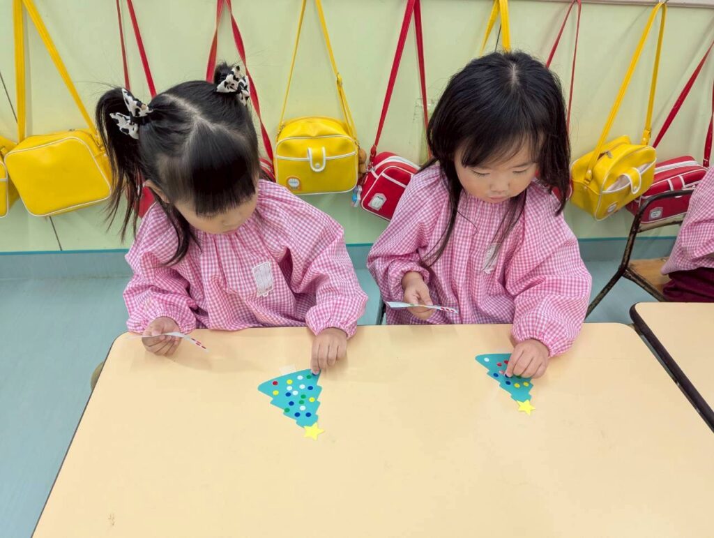 製作ではサンタさんやツリーを作ったり…