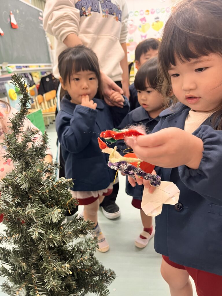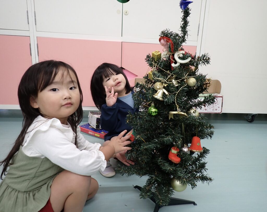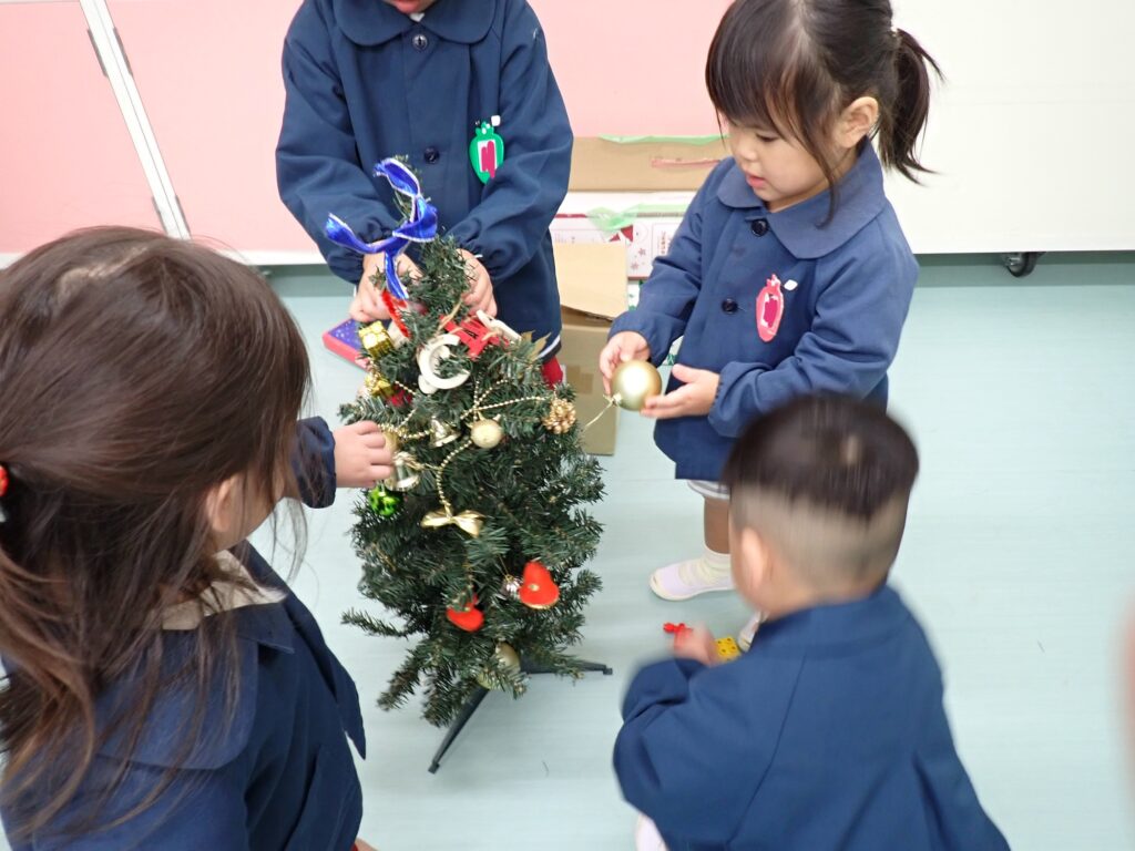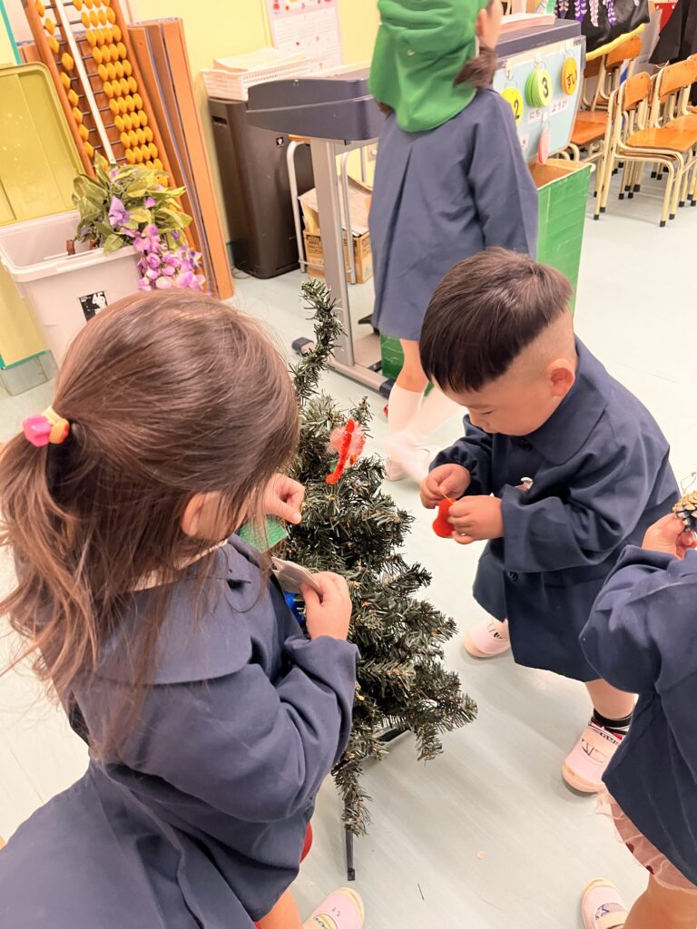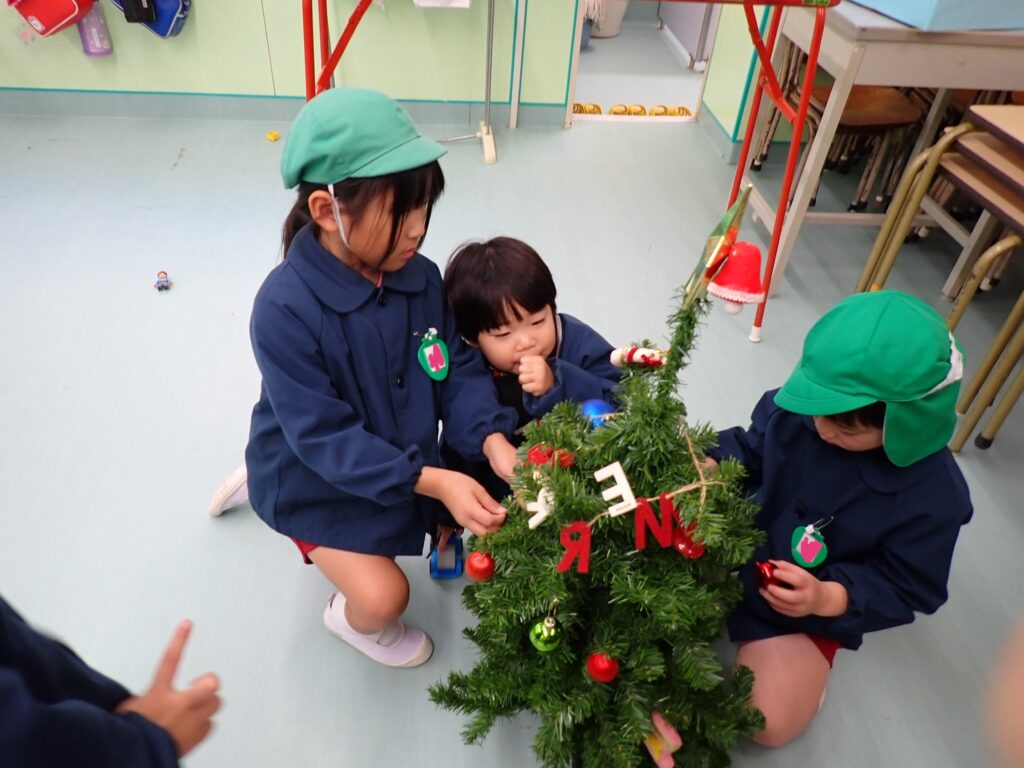 さくらんぼさんはりんごさんとクリスマスツリーの飾り付けをしました🎄