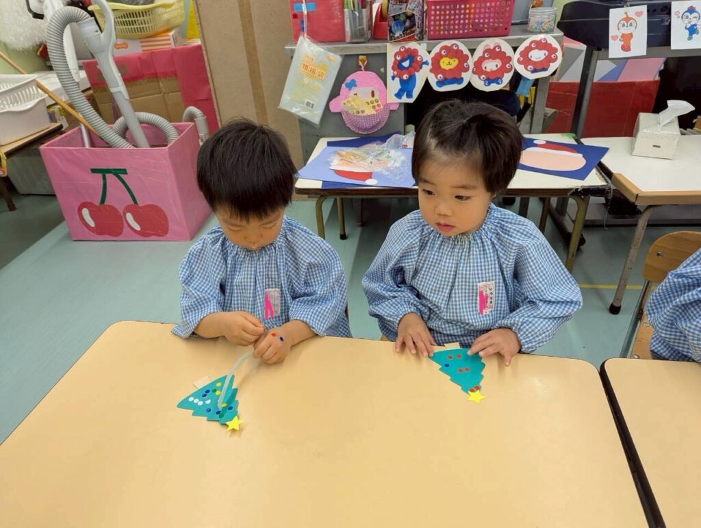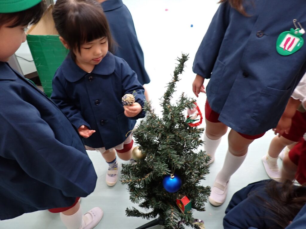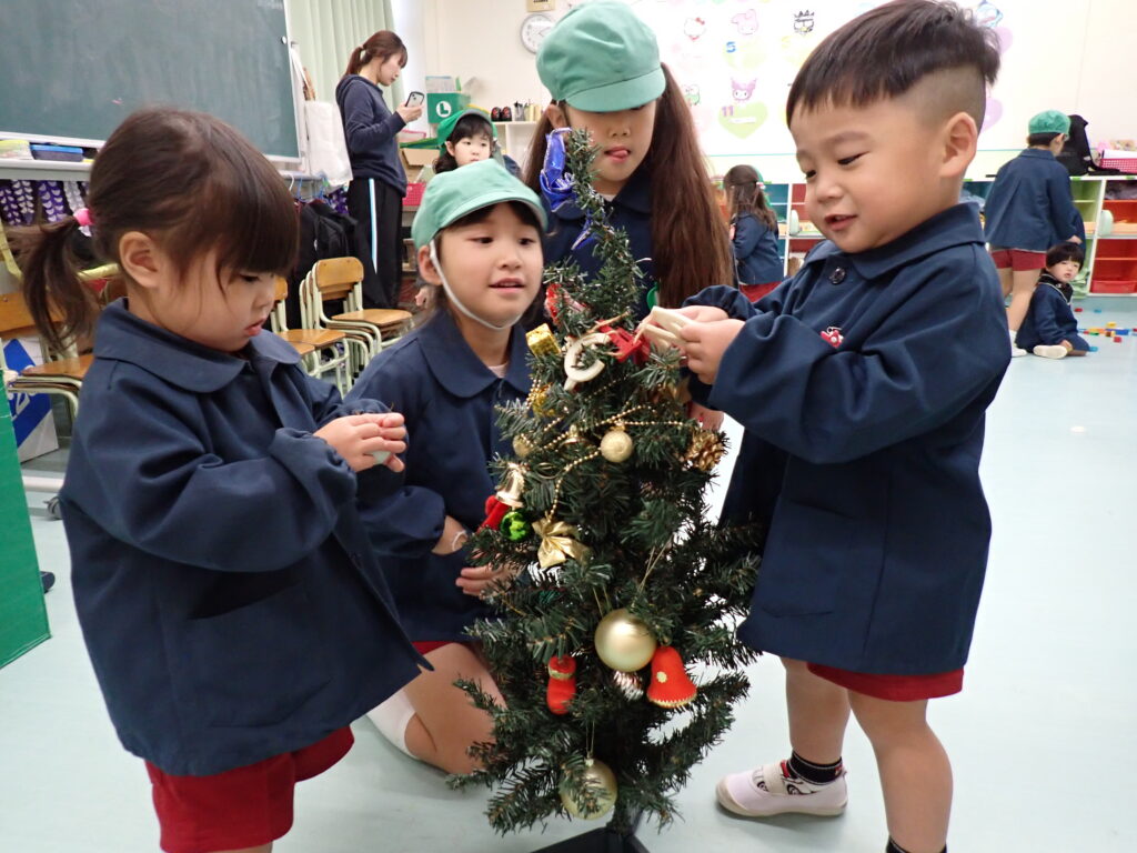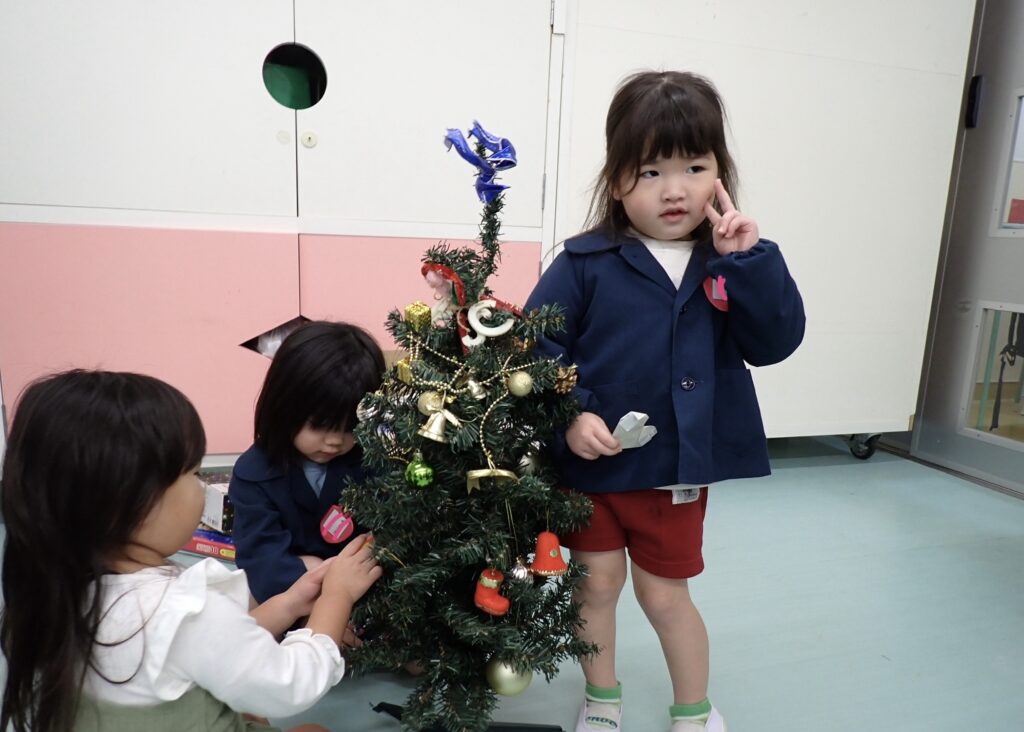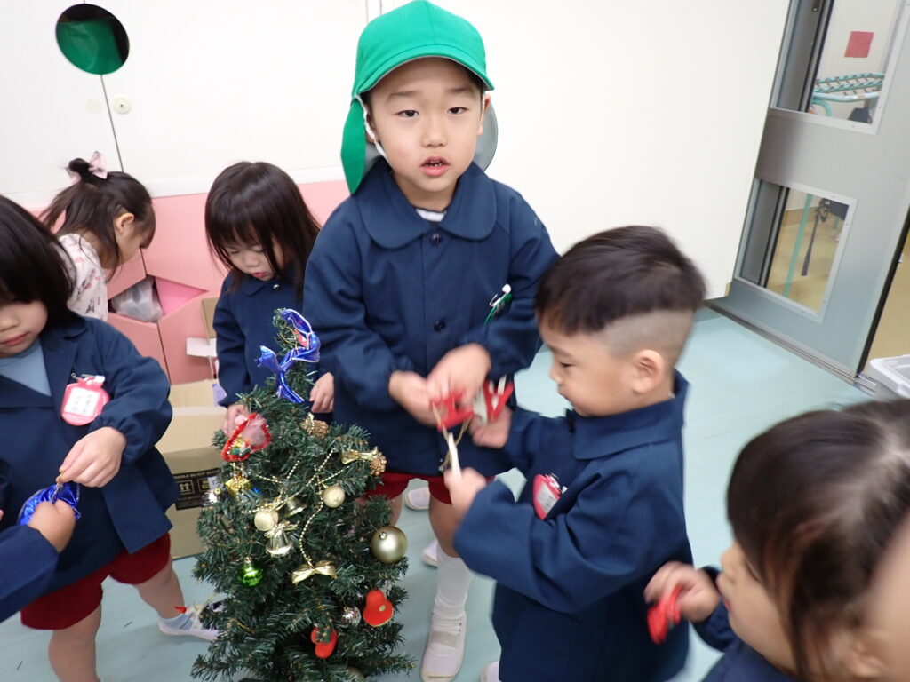 さくらんぼさんはりんごさんとクリスマスツリーの飾り付けをしました🎄