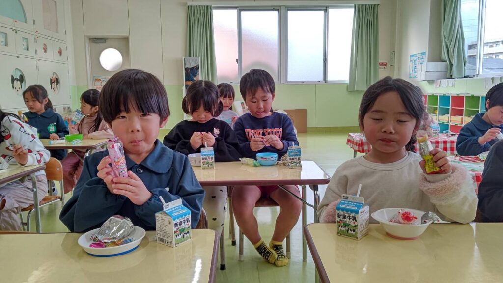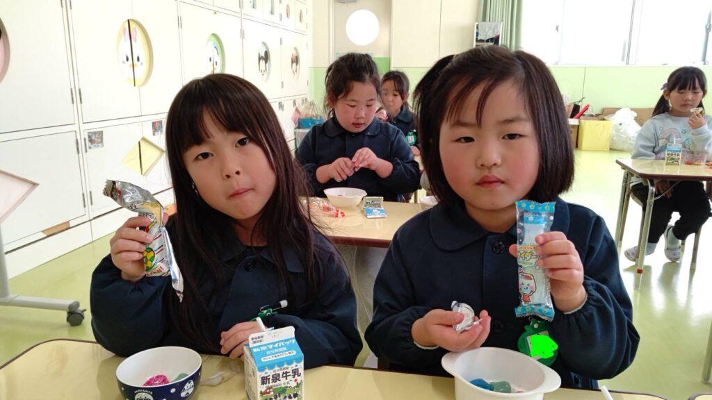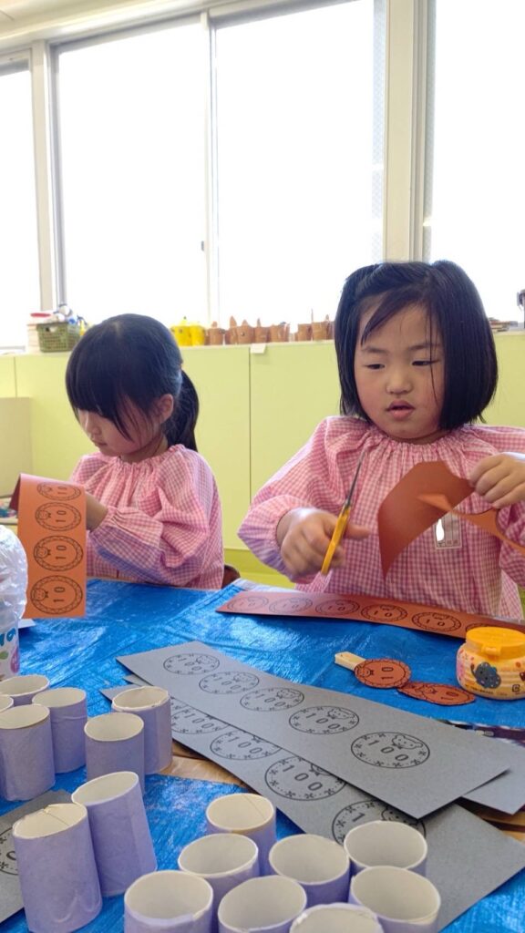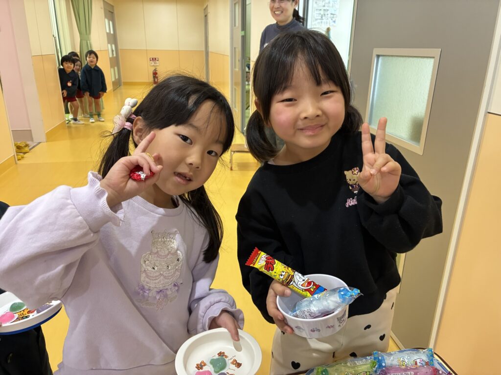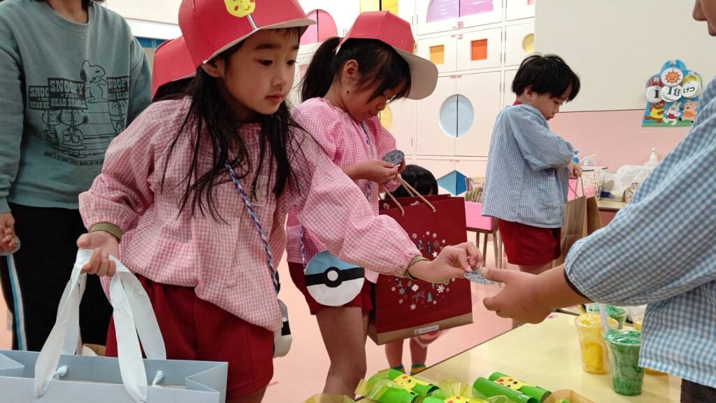 大東市 保育園 泉保育園 りんご組🍏お店屋さんごっこ🛍️ お店やさんごっこの準備をしています😊 お店屋さんごっこが始まりました ゲームコーナーでは、61人のお客様が来ました❗️ お店屋さんごっこの特別おやつに大喜びの子どもたちでした🎵
