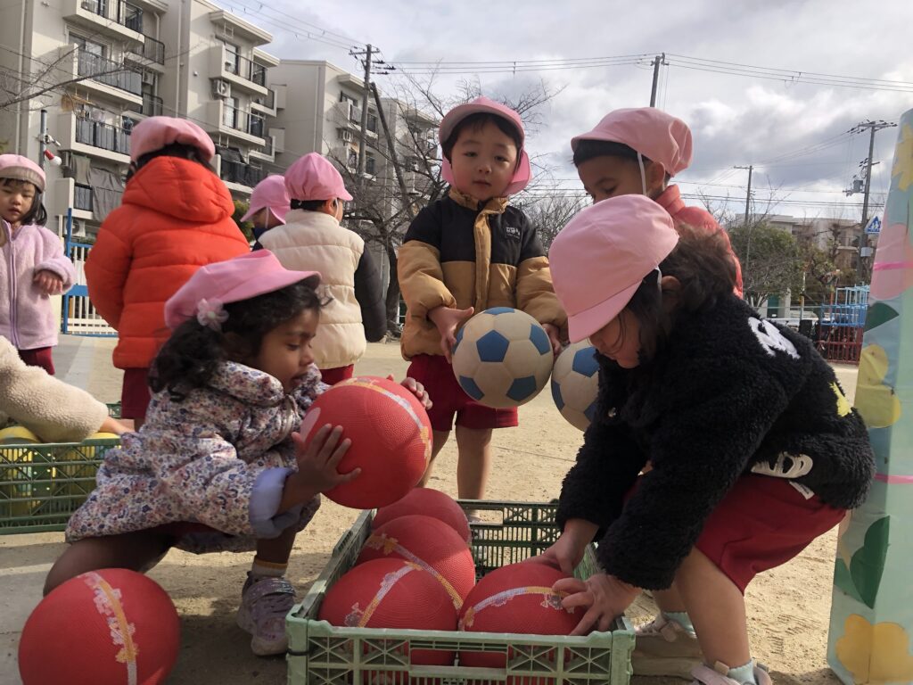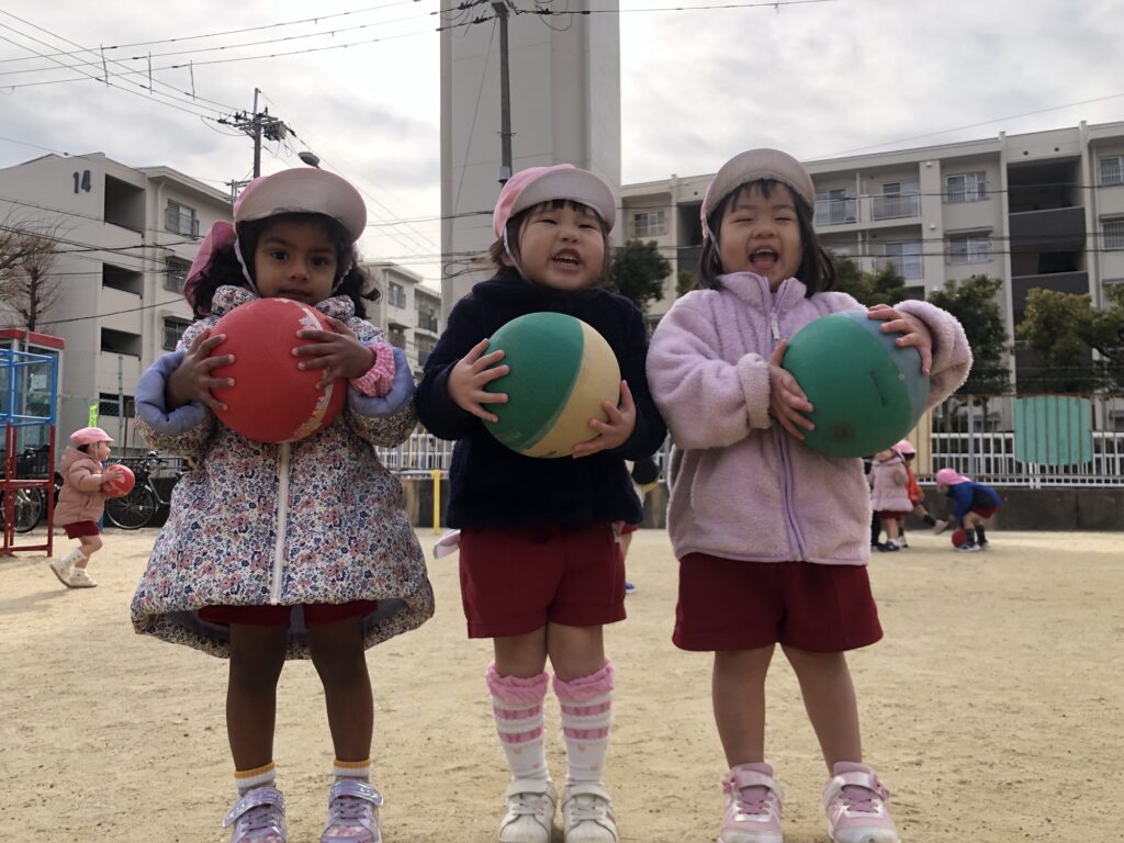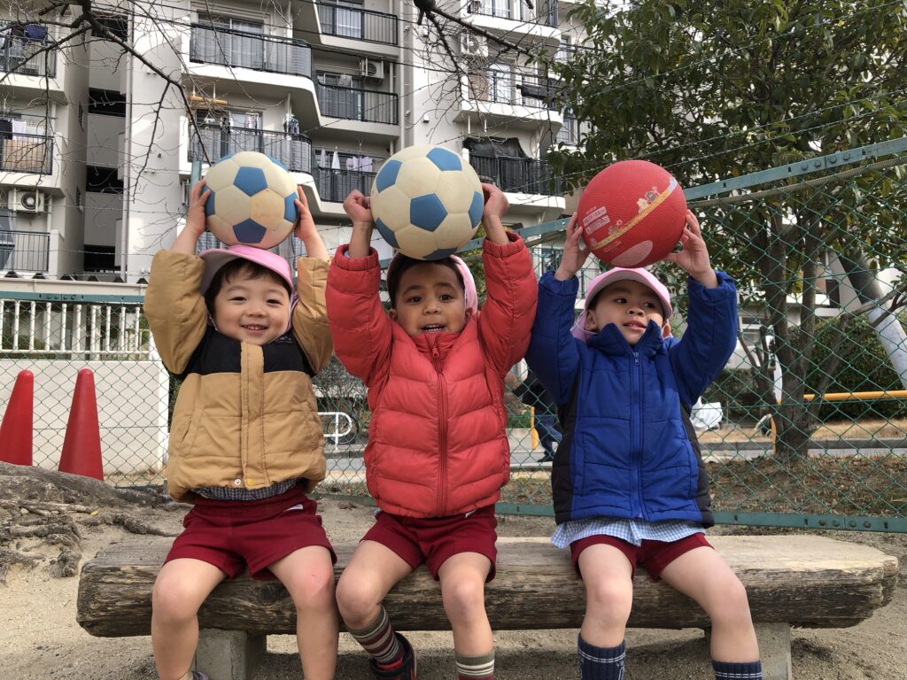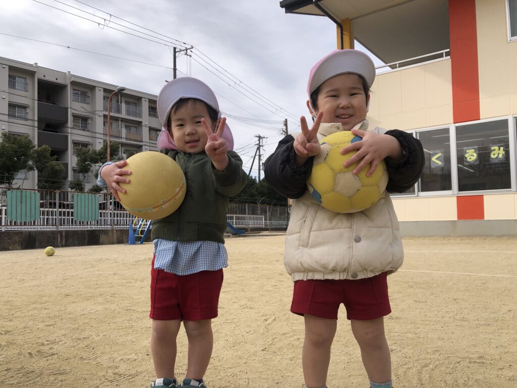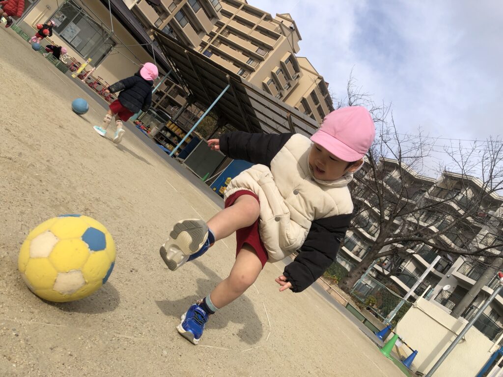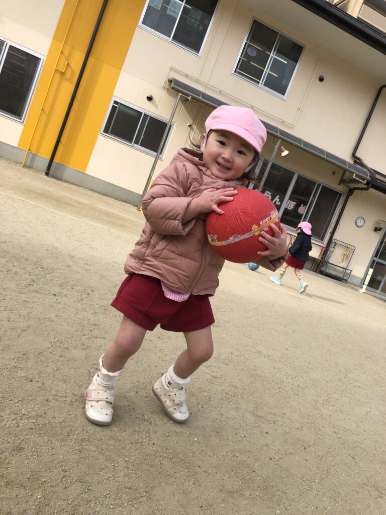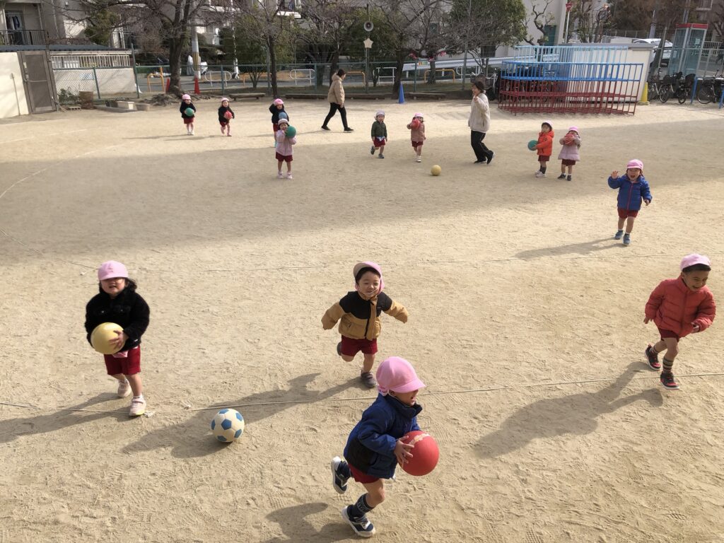 今回は、寒風吹く中でもボールを使って