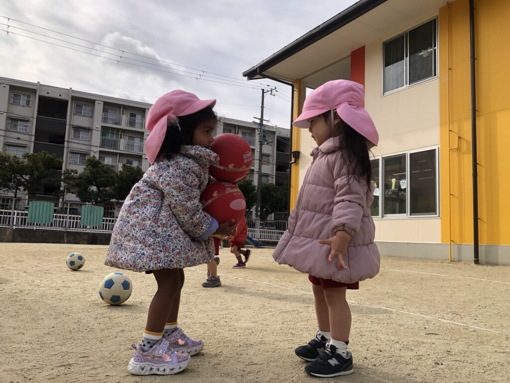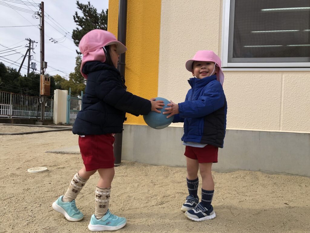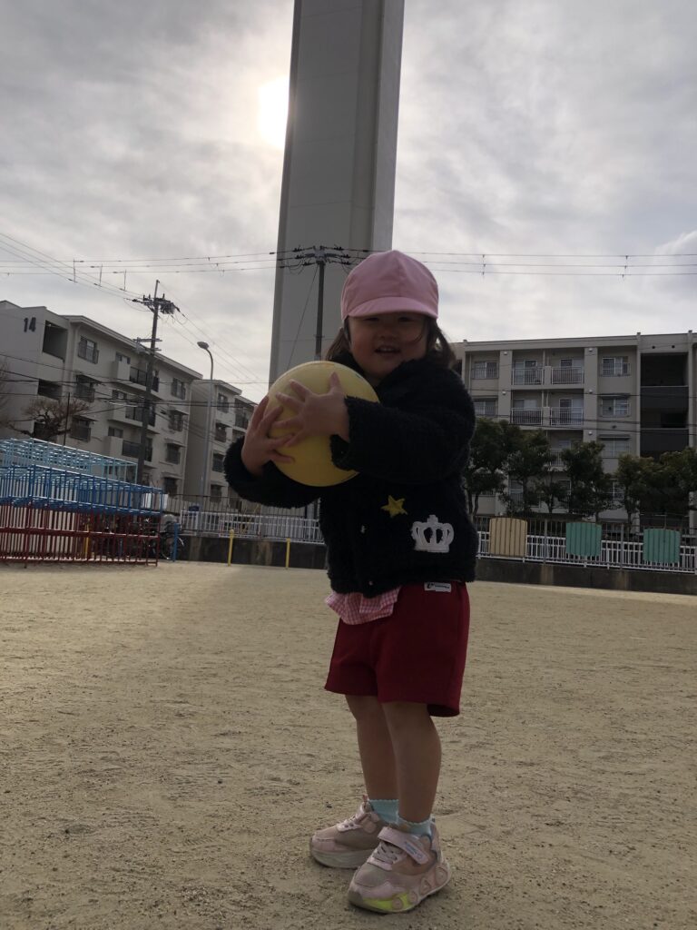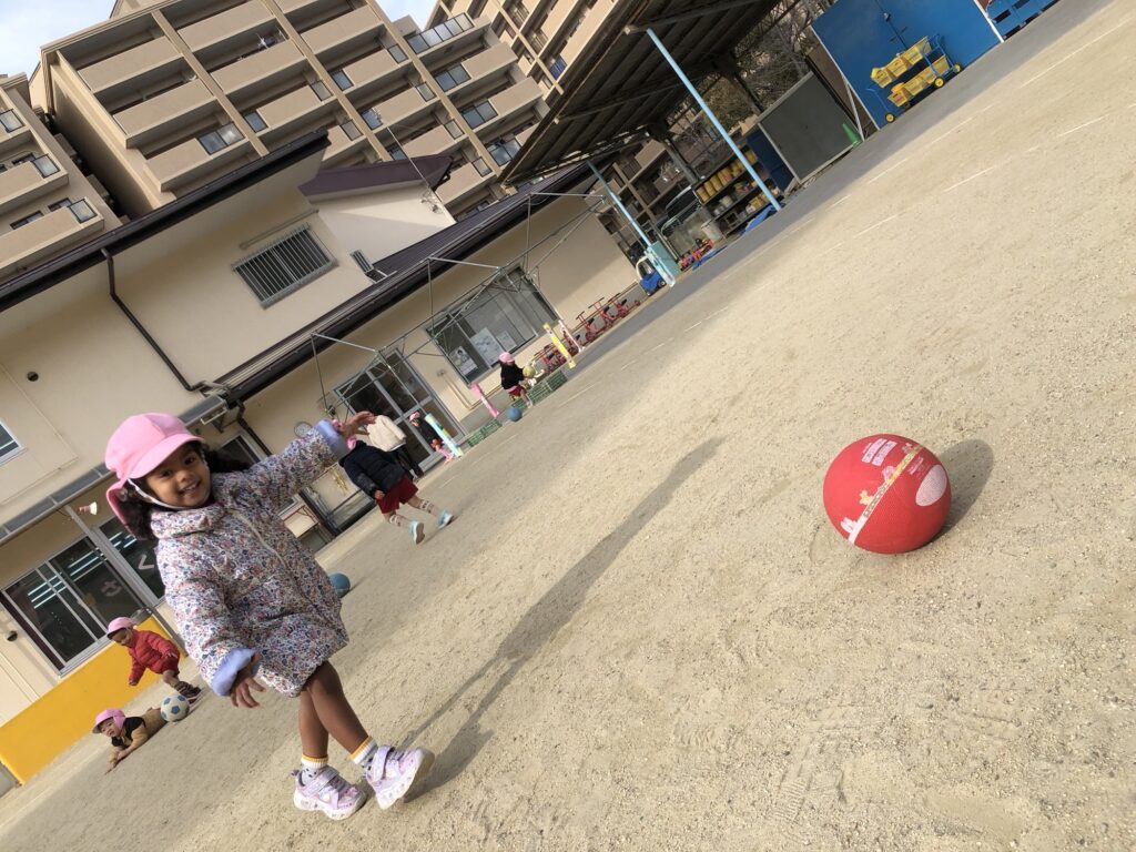 友だちとボールを投げ合ったり、