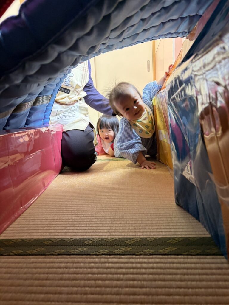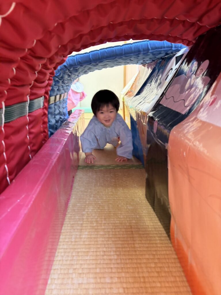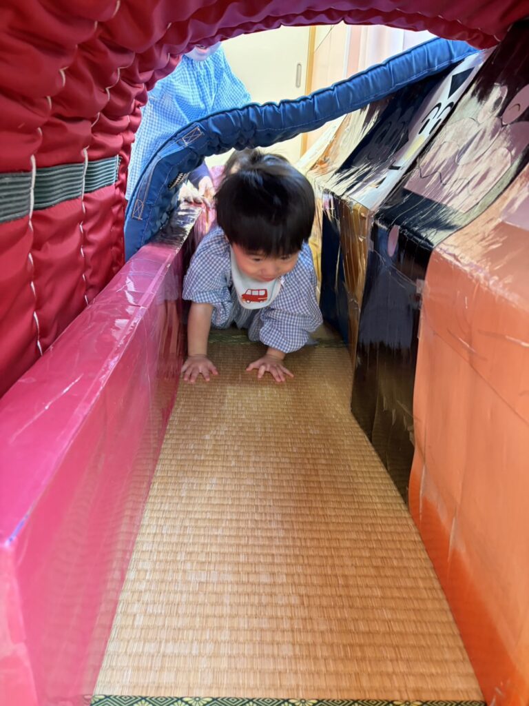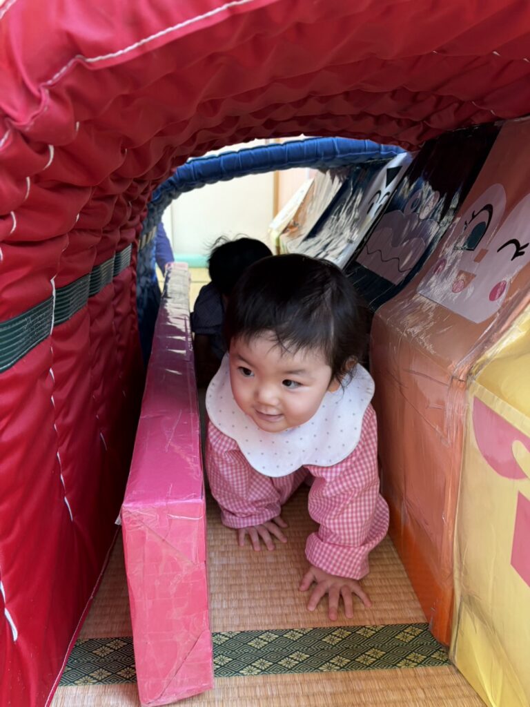 マットのお山も、1人で登ったり降りたりできるようになったり、トンネルもはじめは怖がっていたお友達も、先生や、お友達と一緒にできるようになったりと、とっても成長が感じられました✨