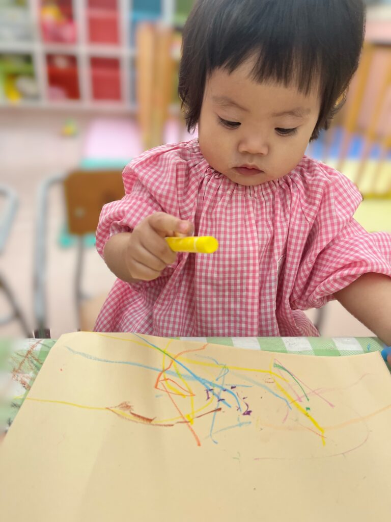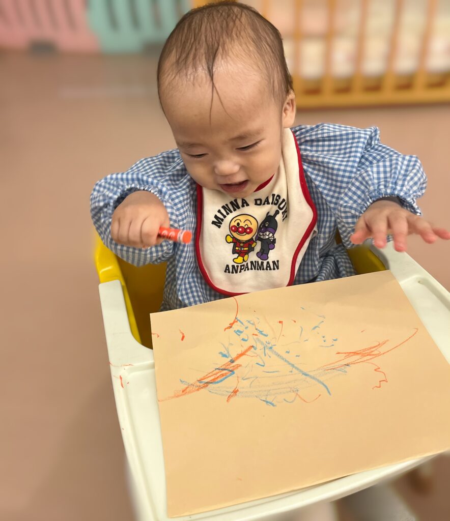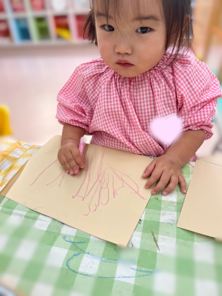 クレパスによるなぐり描きも楽しんでいます🎶