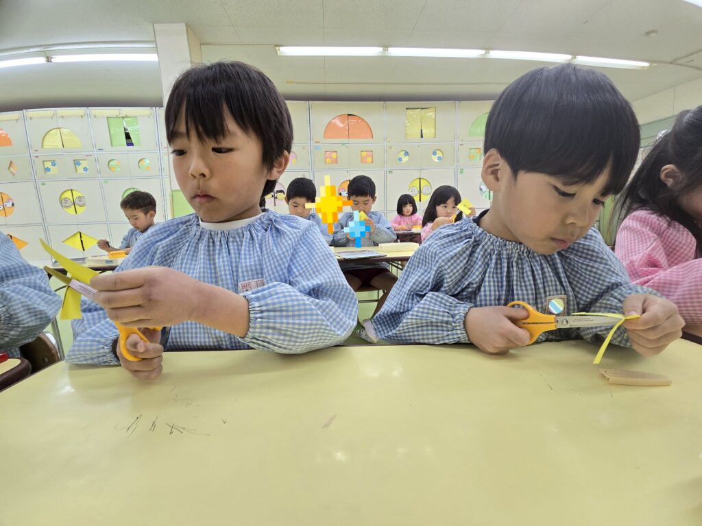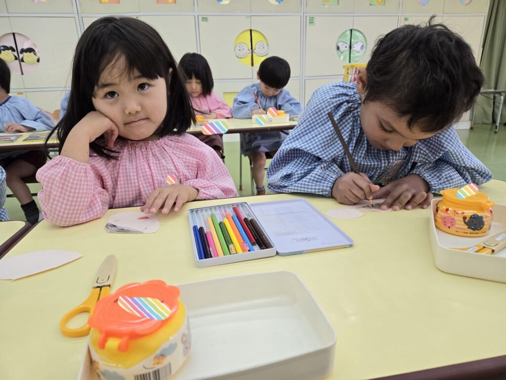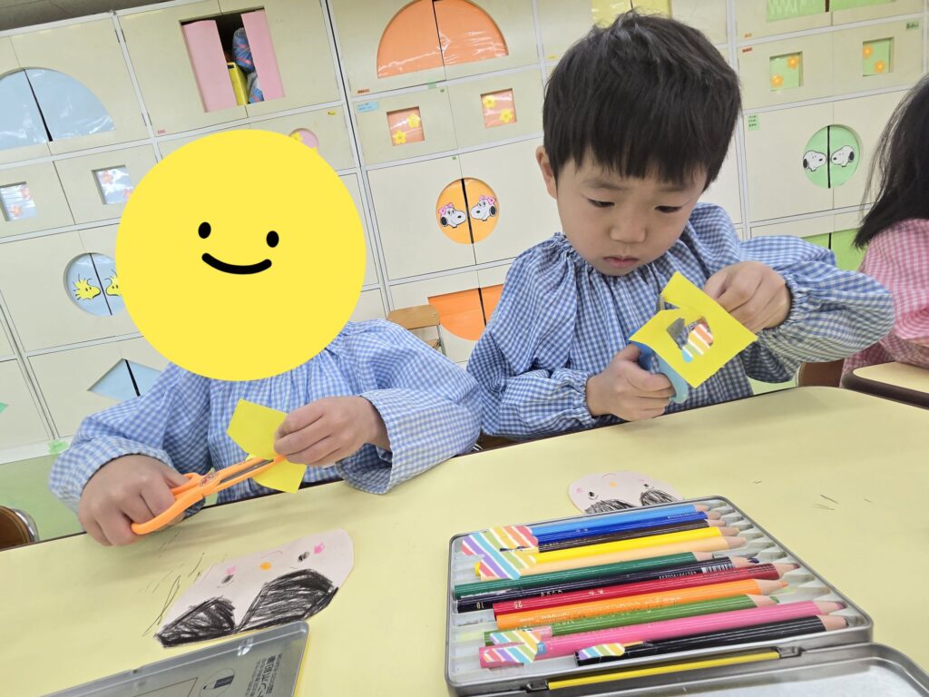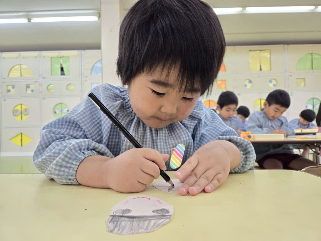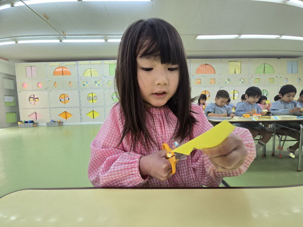 大東市 保育園 新町保育園 もも組 ひなまつり制作を行いました。 その時の様子をお届けします!! 型取りをせず、自分の力で丸を書いて、お内裏様とお雛様を作りました!! ハサミの使い方も上手になっていますね!! みんな、集中をして取り組んでいます!真剣です!! 素敵な作品になりました☆