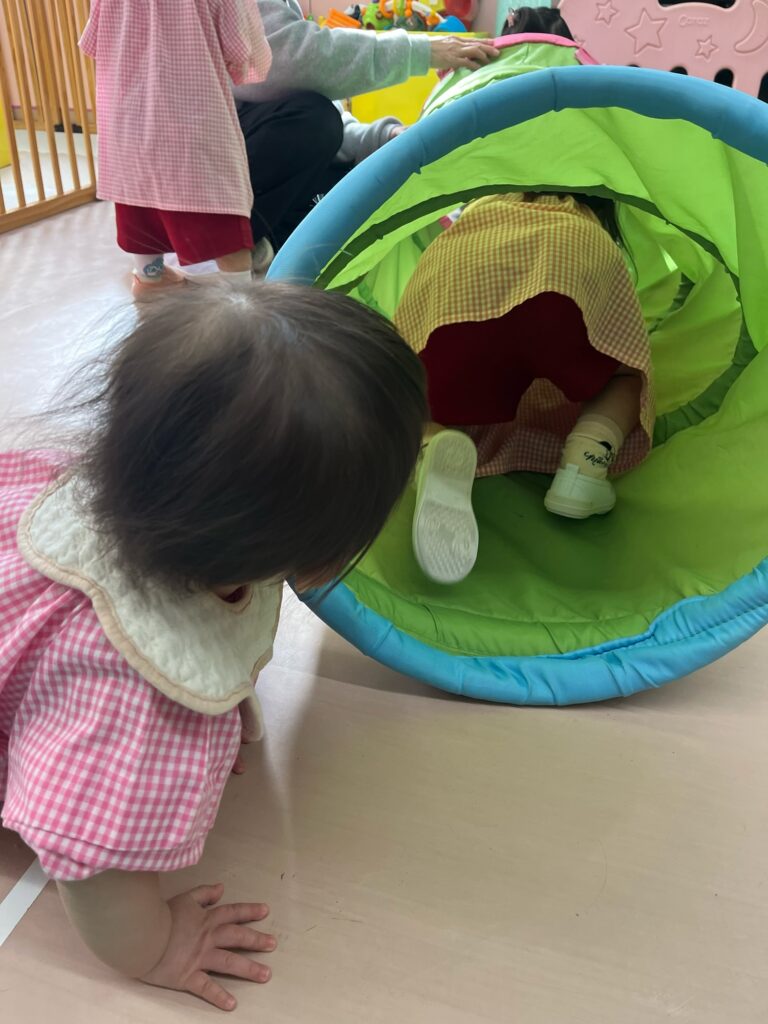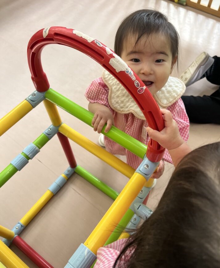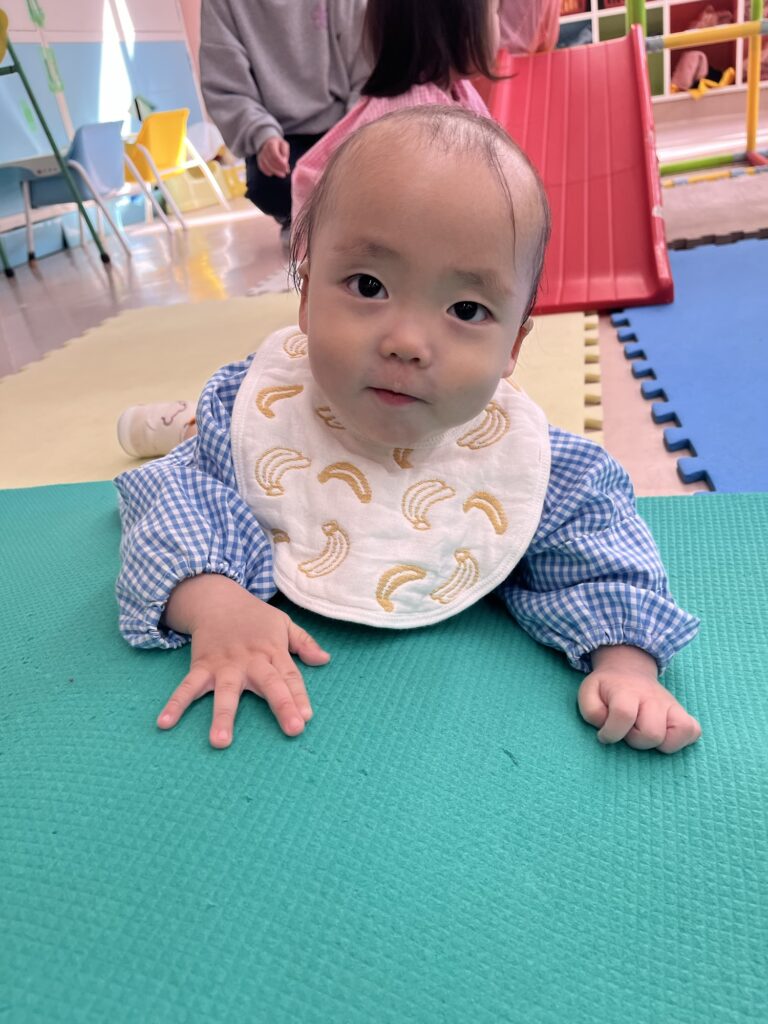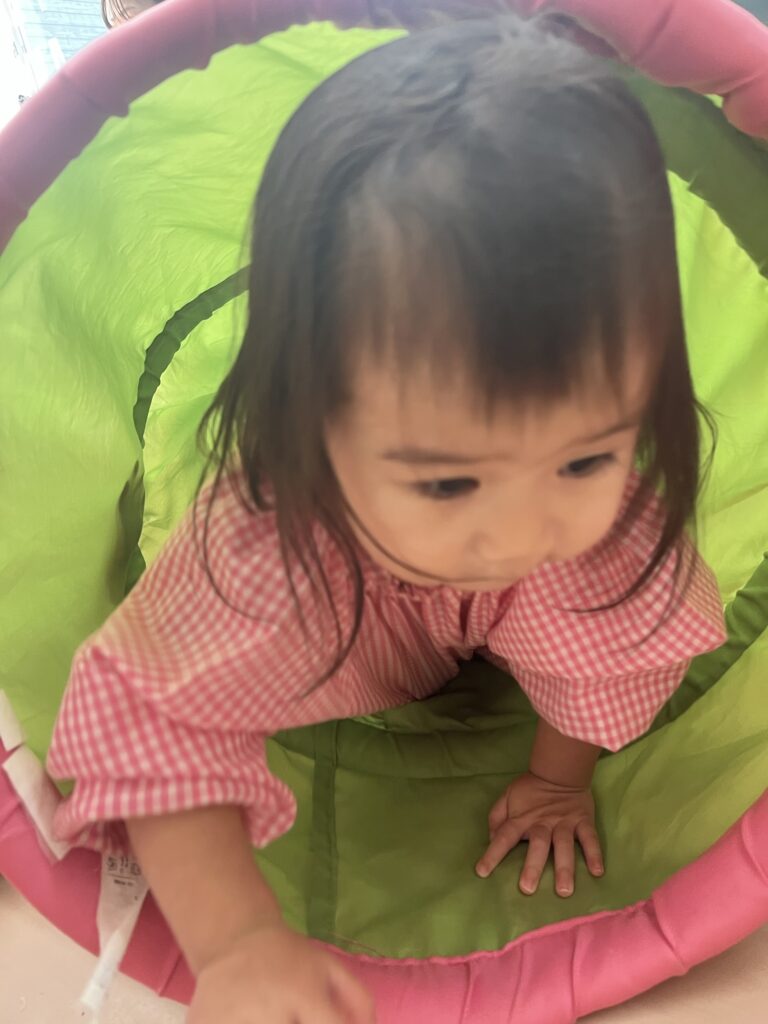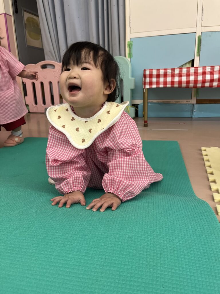 マットでお山を作ってあげるとハイハイして登ったり、上でジャンプしたりして楽しんでいました🎶