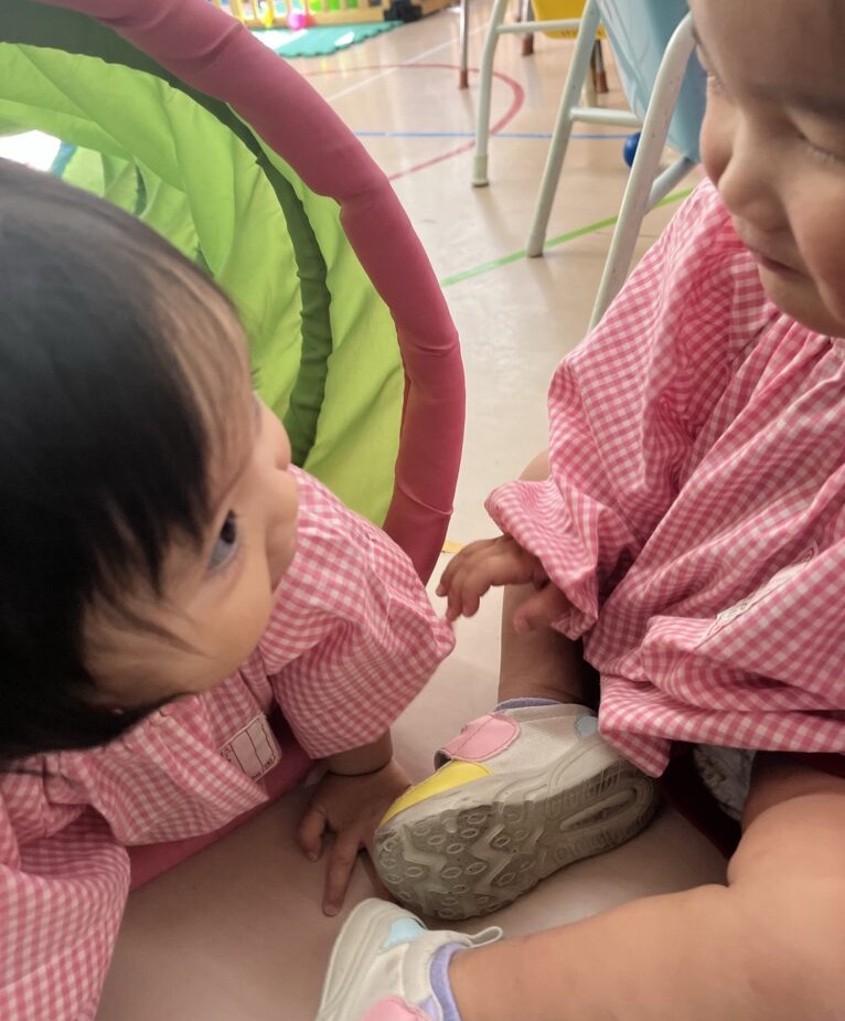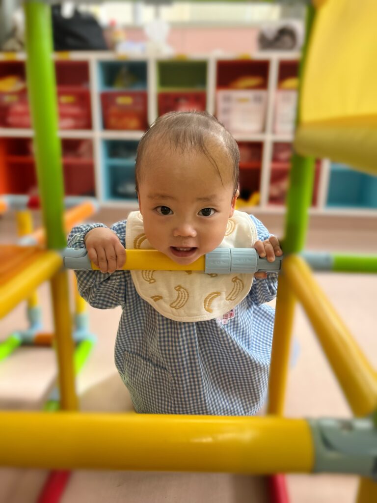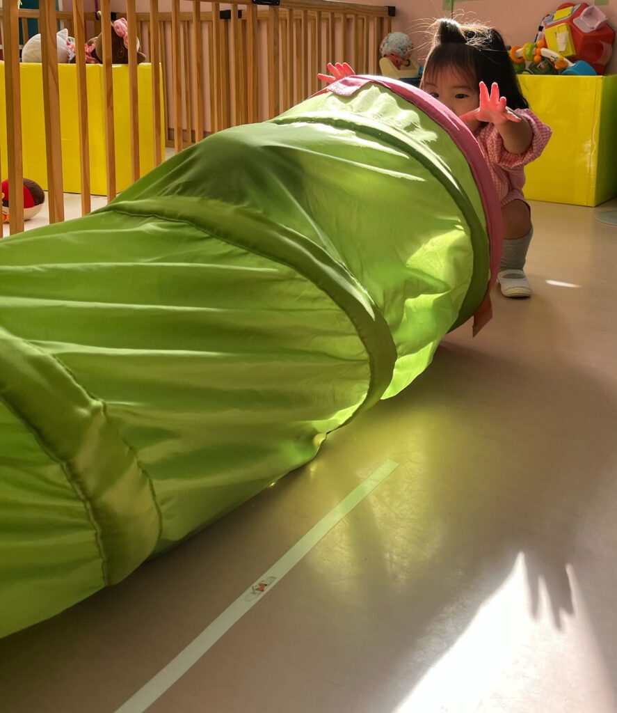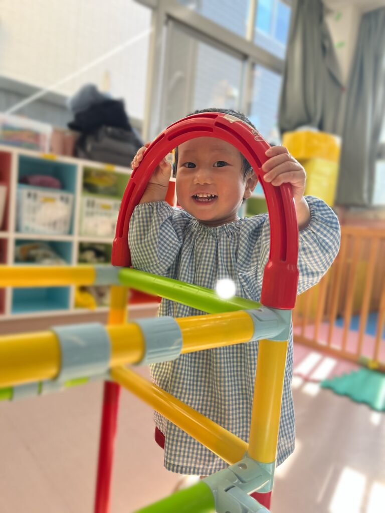 マットでお山を作ってあげるとハイハイして登ったり、上でジャンプしたりして楽しんでいました🎶