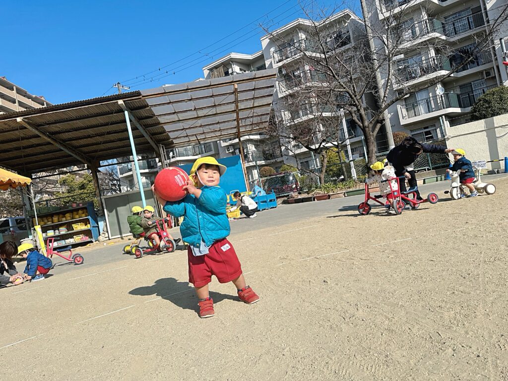 外遊びでは寒さを感じないくらい激しく元気に遊び