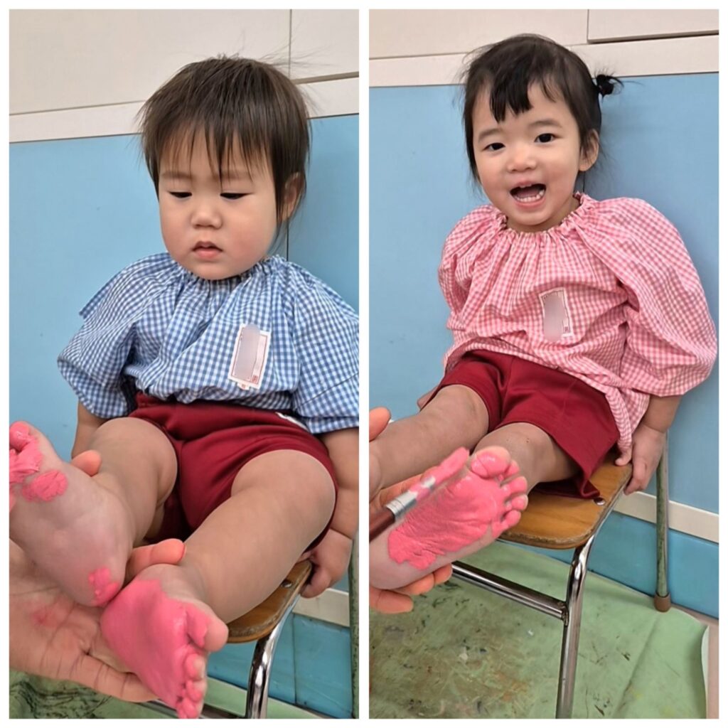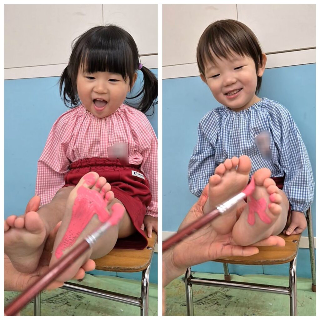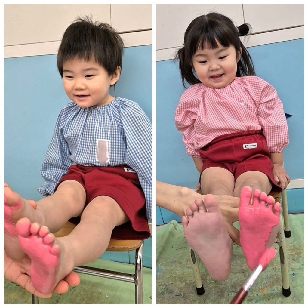 右側は、足型をとってシール貼りをしました♪