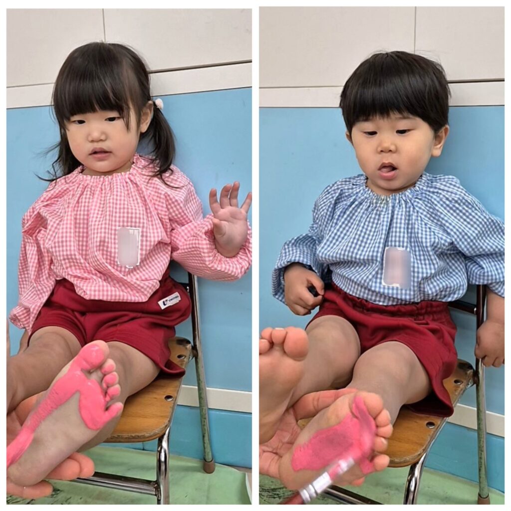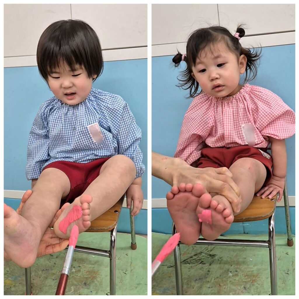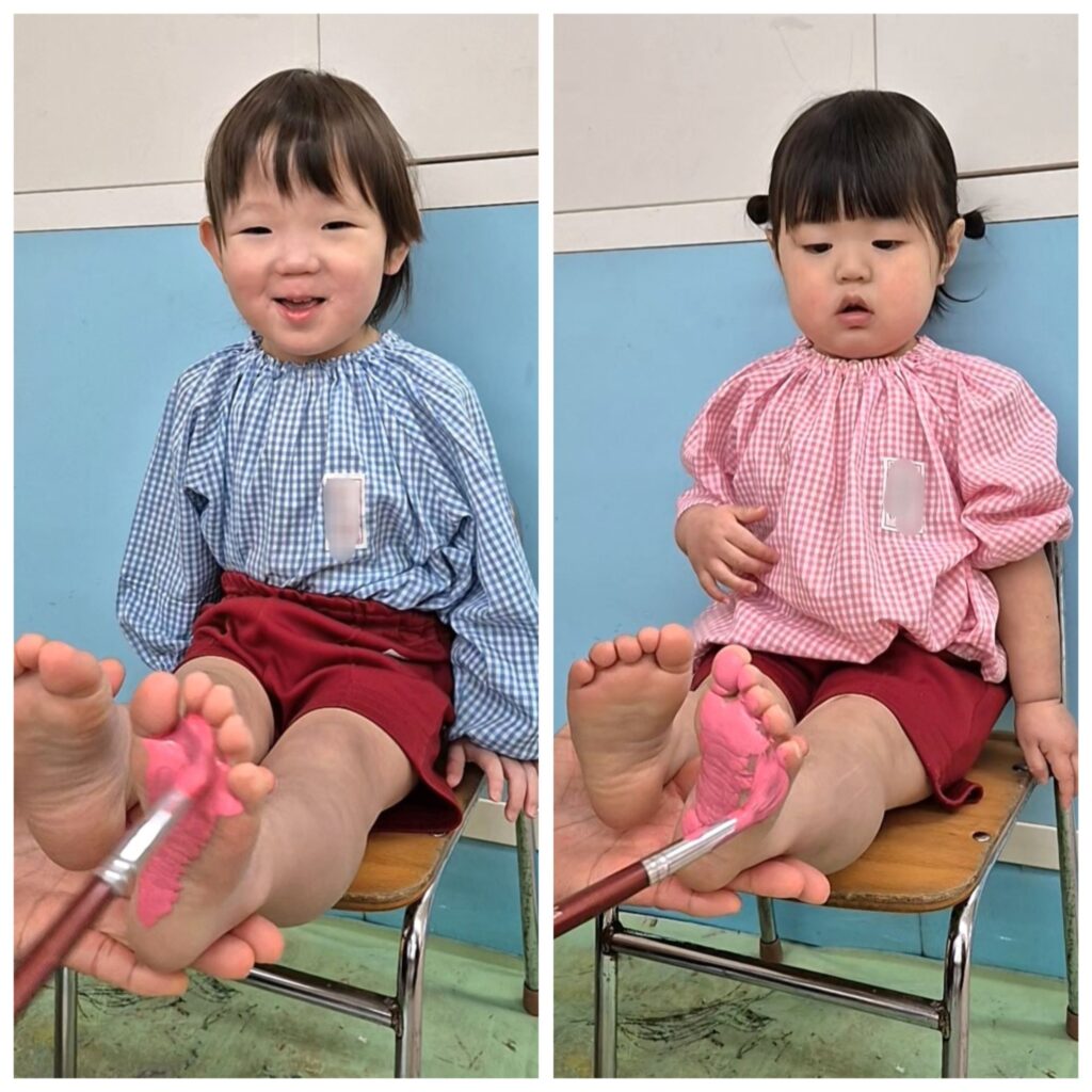 右側は、足型をとってシール貼りをしました♪