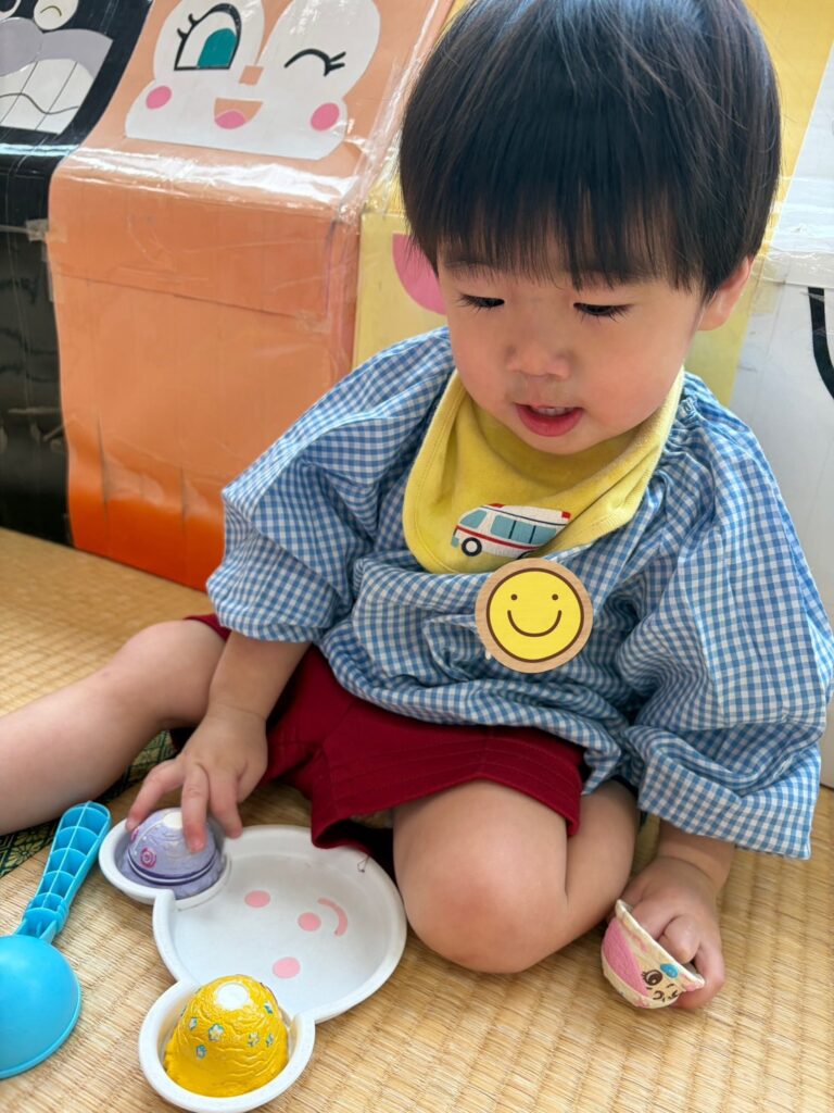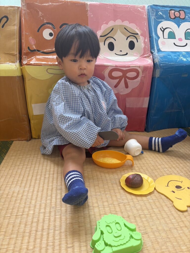 くるみ0歳のお友達、ままごと遊びと、ブロック遊びが大好き!