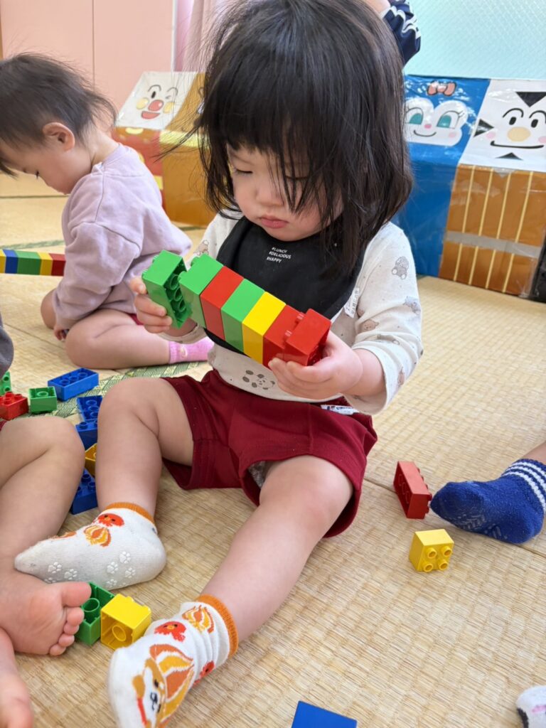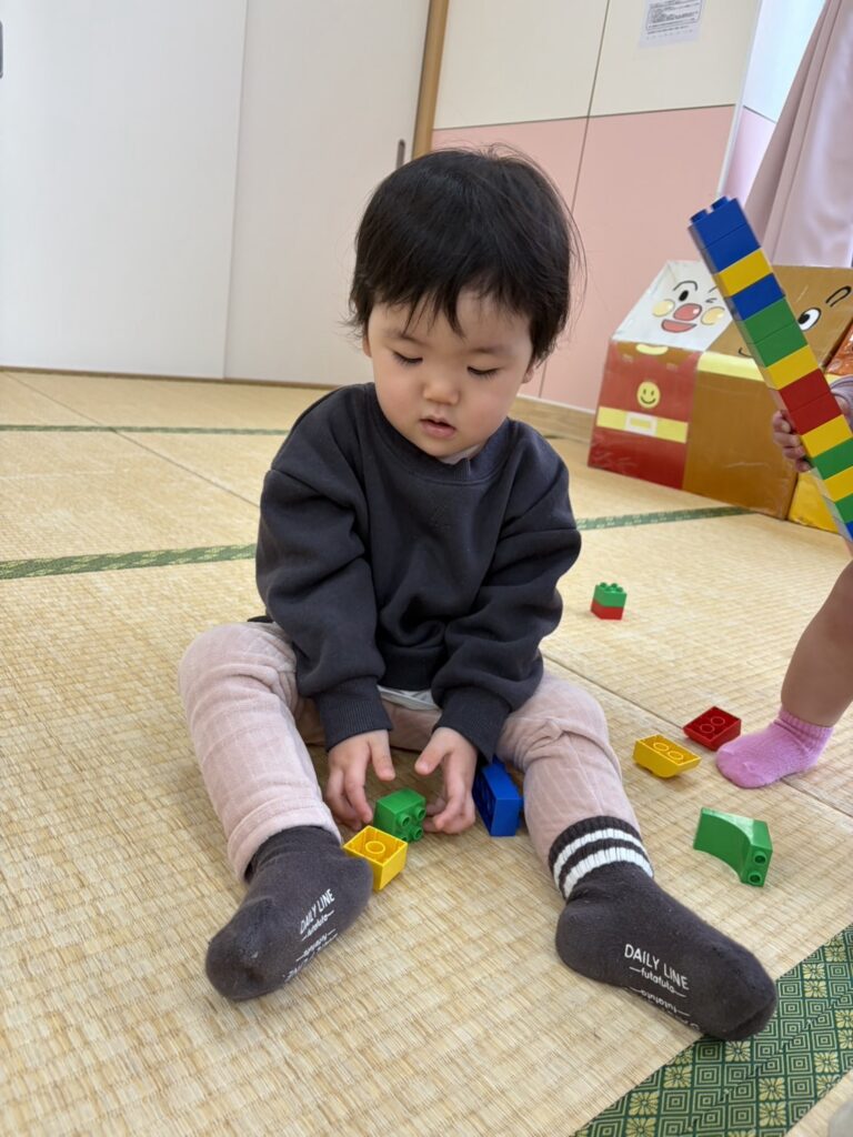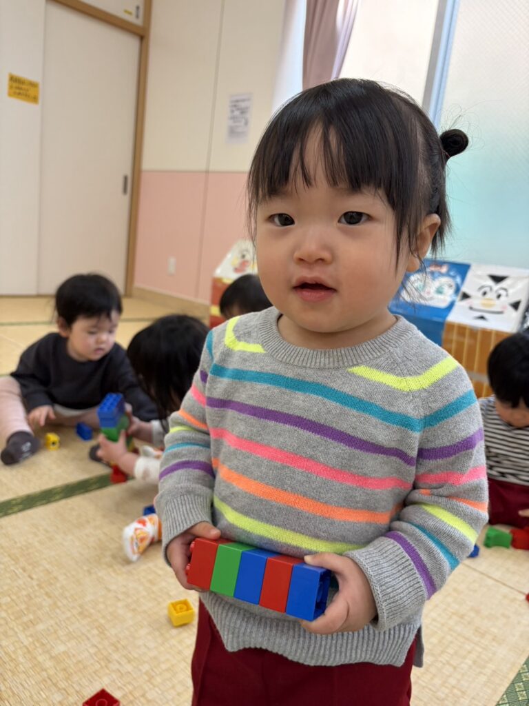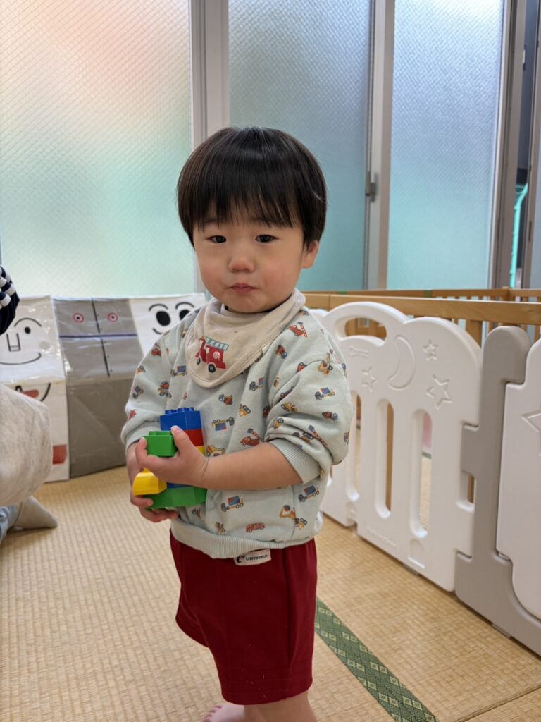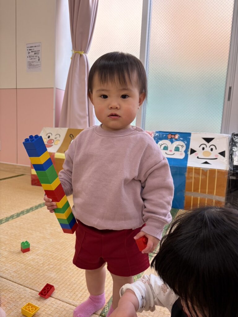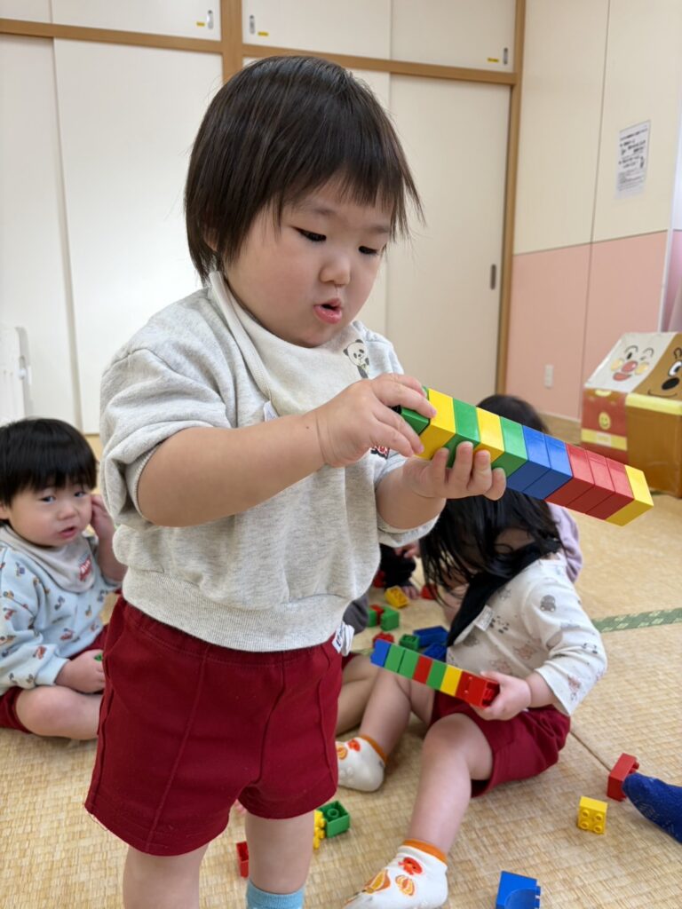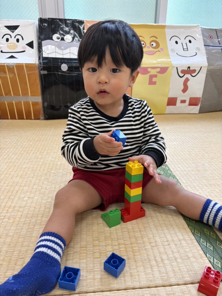 高く積み上げたり、作ったものをみせにきてくれたり、笑顔がいっぱい😆