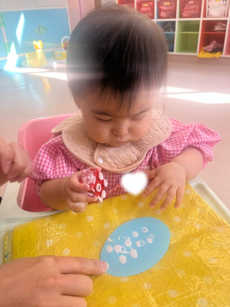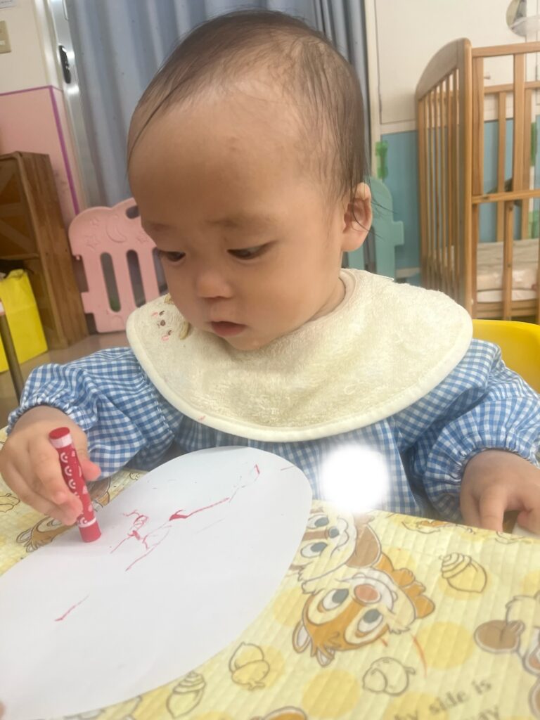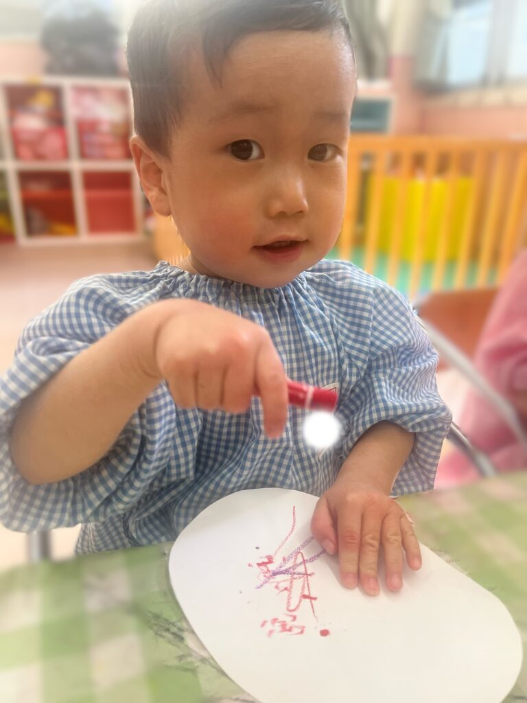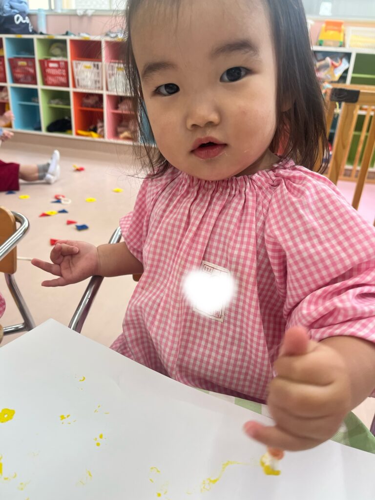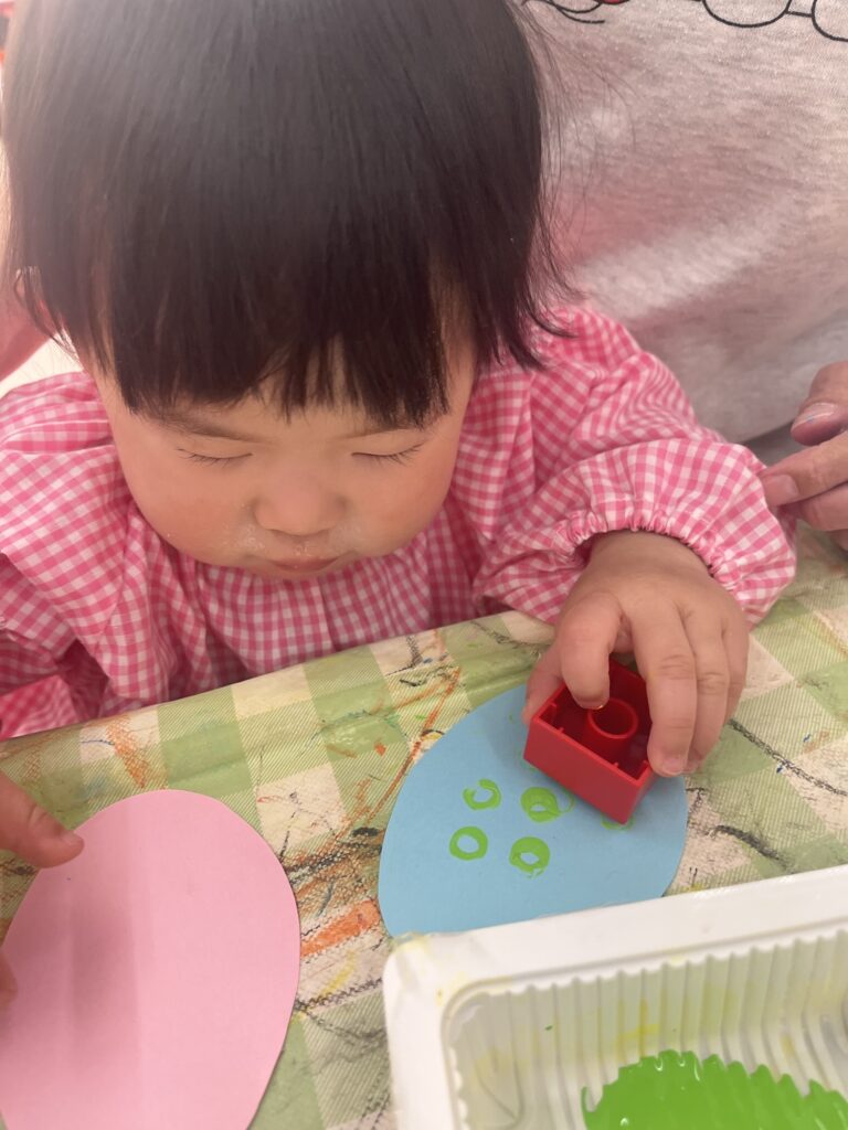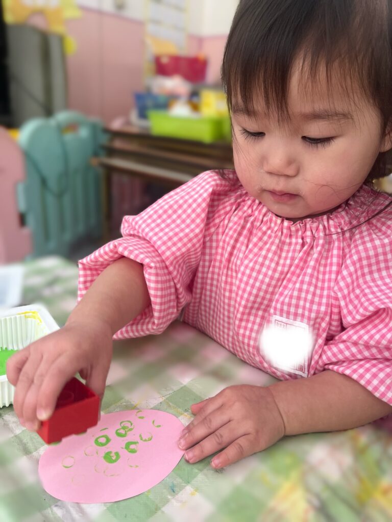 なぐり描き、スタンプ、シール貼り どれも楽しみながら取り組んでくれました!