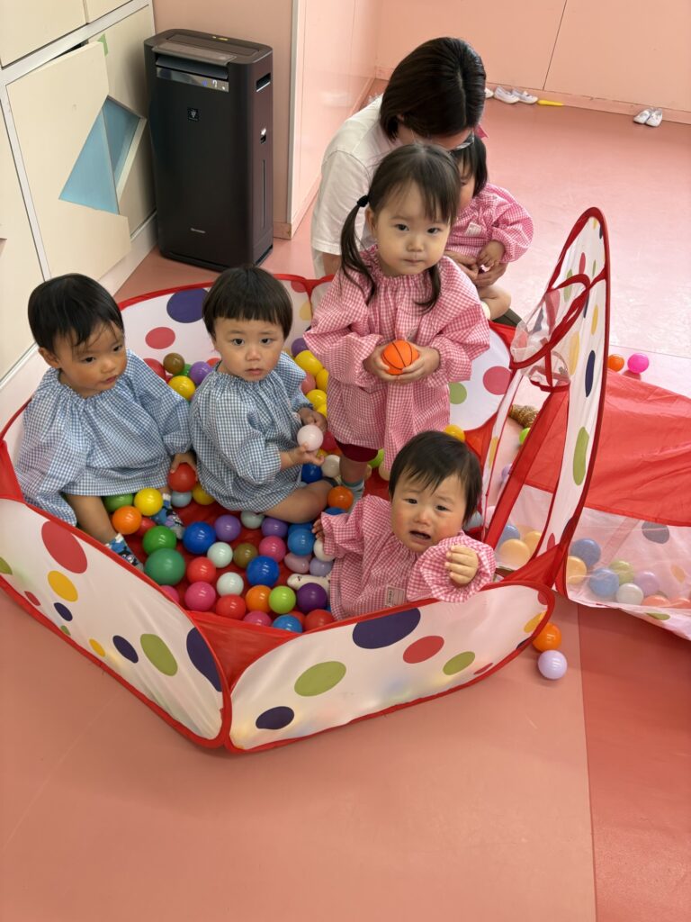 室内遊びでは保育園のおもちゃに興味津々の子どもたちです!
