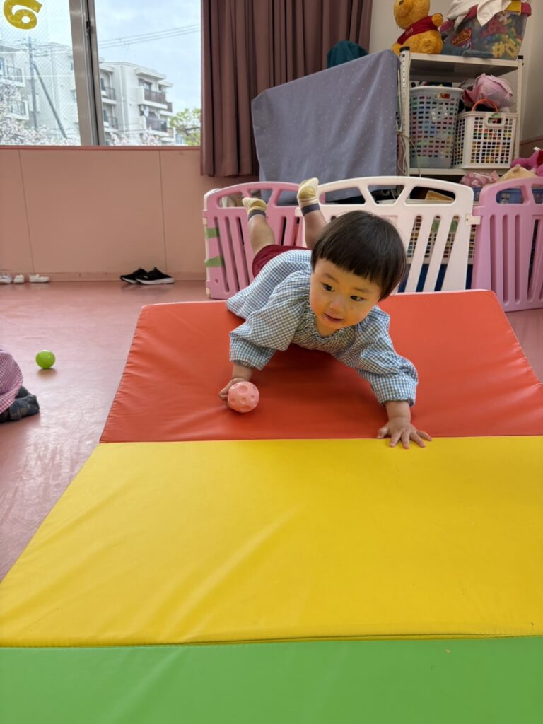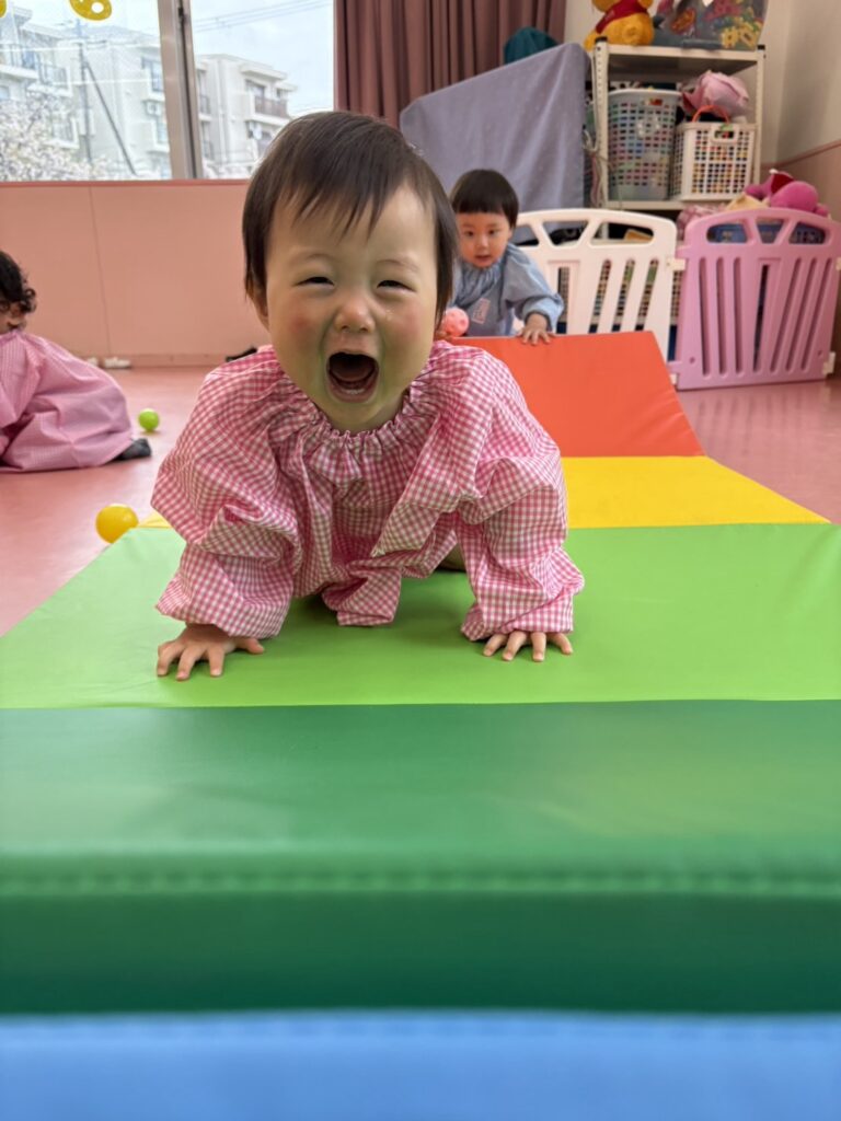 慣らし保育も終え、涙から、少しずつ笑顔み見せてくれるようになりました。