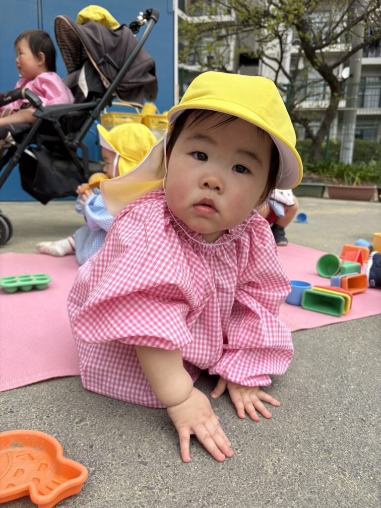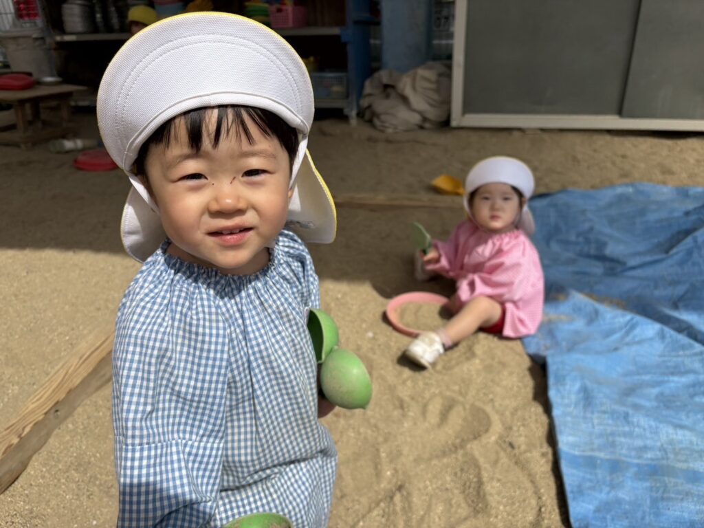 戸外では、お散歩をしたり、砂場で遊んだり、外気浴をして気持ちよさそうにしていました!!