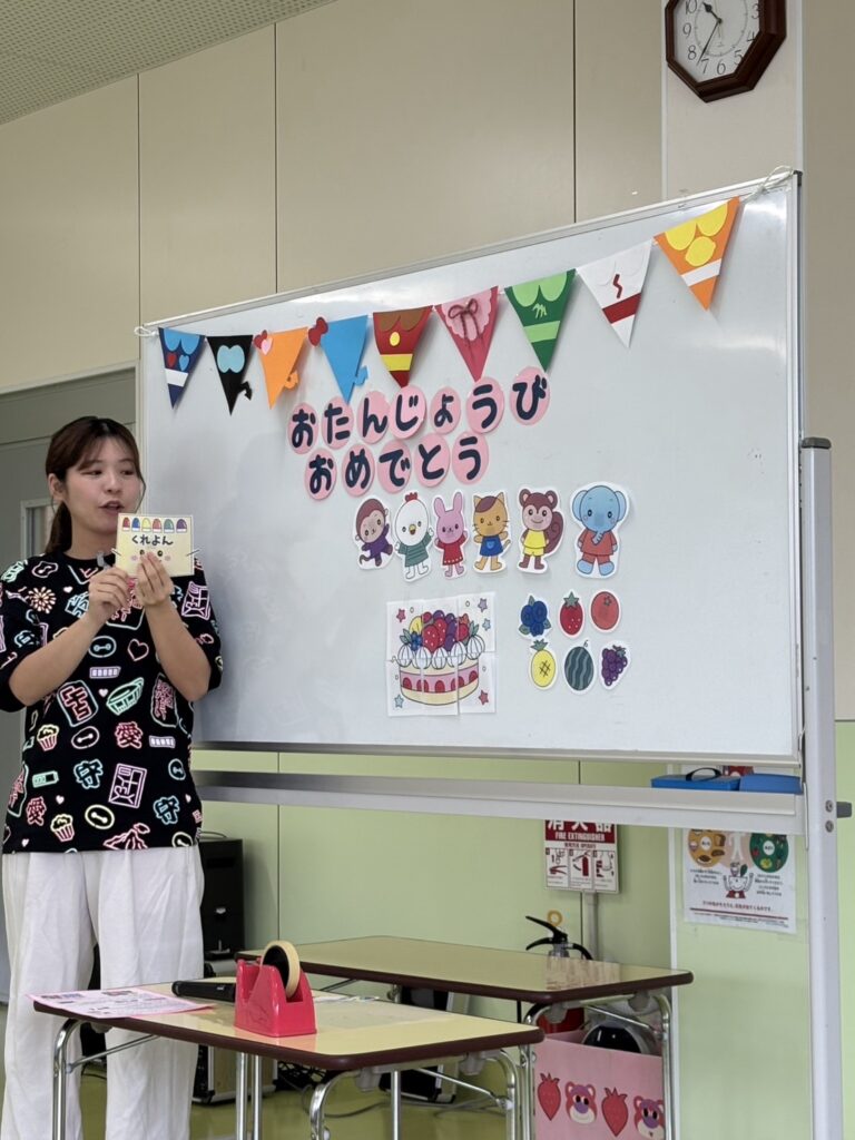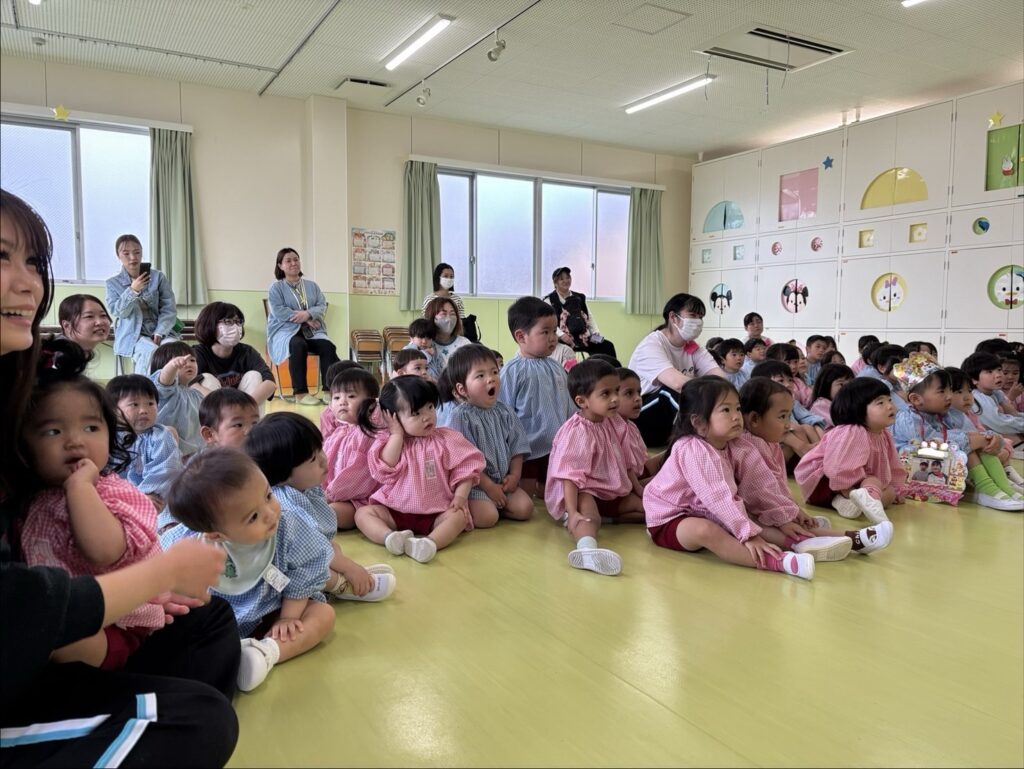 お歌を歌ったり、先生からの出し物のプレゼントを楽しみました😀