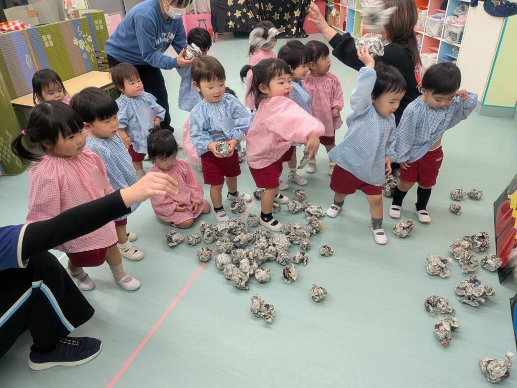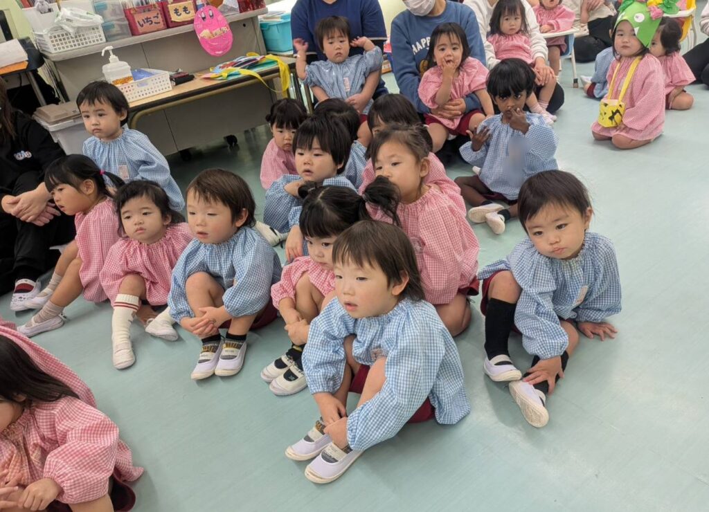 豆まき会では、節分の話をしっかり聞いていた、くるみ組さん。