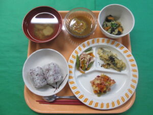かわきた園/バイキング/寝屋川市特養 サクラも早くも散ってしまい、寒暖差が激しい季節となりました。体調管理に気を付けたいですね🔅 今月はバイキングを行いました😊 メニューはゆかりおにぎり、澄まし汁(花麩)、なすの柳川風煮、カレイのマヨポン酢焼き、鶏肉のトマト焼き、マカロニサラダ、黒砂糖寒天でした❗ 鶏肉やカレイなど、たんぱく質を補えるメニューにし、彩り豊かな献立にしました。利用者様からは「おいしい」とのお声をいただきました。