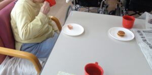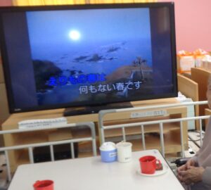 生駒園/ホーム喫茶・カラオケ/特別養護老人ホーム(多床室)/大東市竜間 今月2回目のホーム喫茶が行われました☕ 本日、マイクの調子が悪かったのですが、そんなことは気にされず😁 音楽に合わせて口ずさまれたり、手拍子をされ、楽しんで頂けました😊