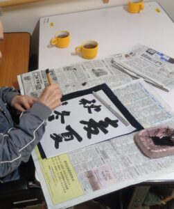 生駒園/書道クラブ/特別養護老人ホーム(多床室)/大東市竜間 今年最初のクラブでは、書き初めをしました。 お正月らしい言葉を選んで頂き、普段参加されない方も 参加して下さっていました😊 納得されず、再度書かれる方もいらっしゃり、とても綺麗に 書かれていました。