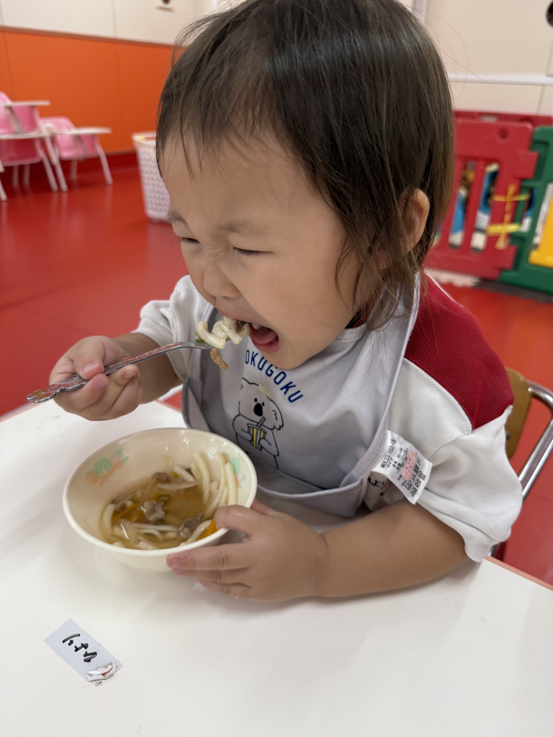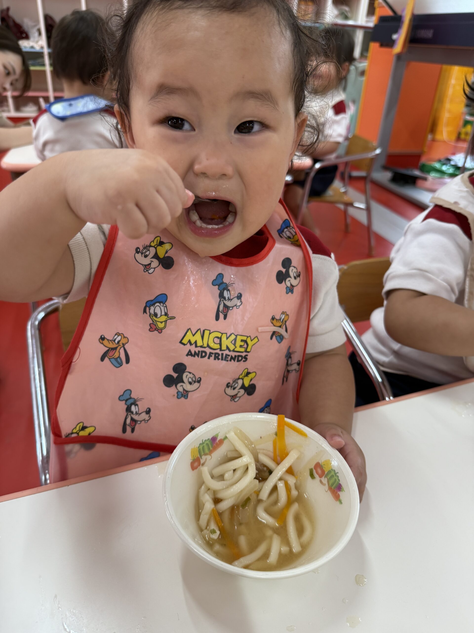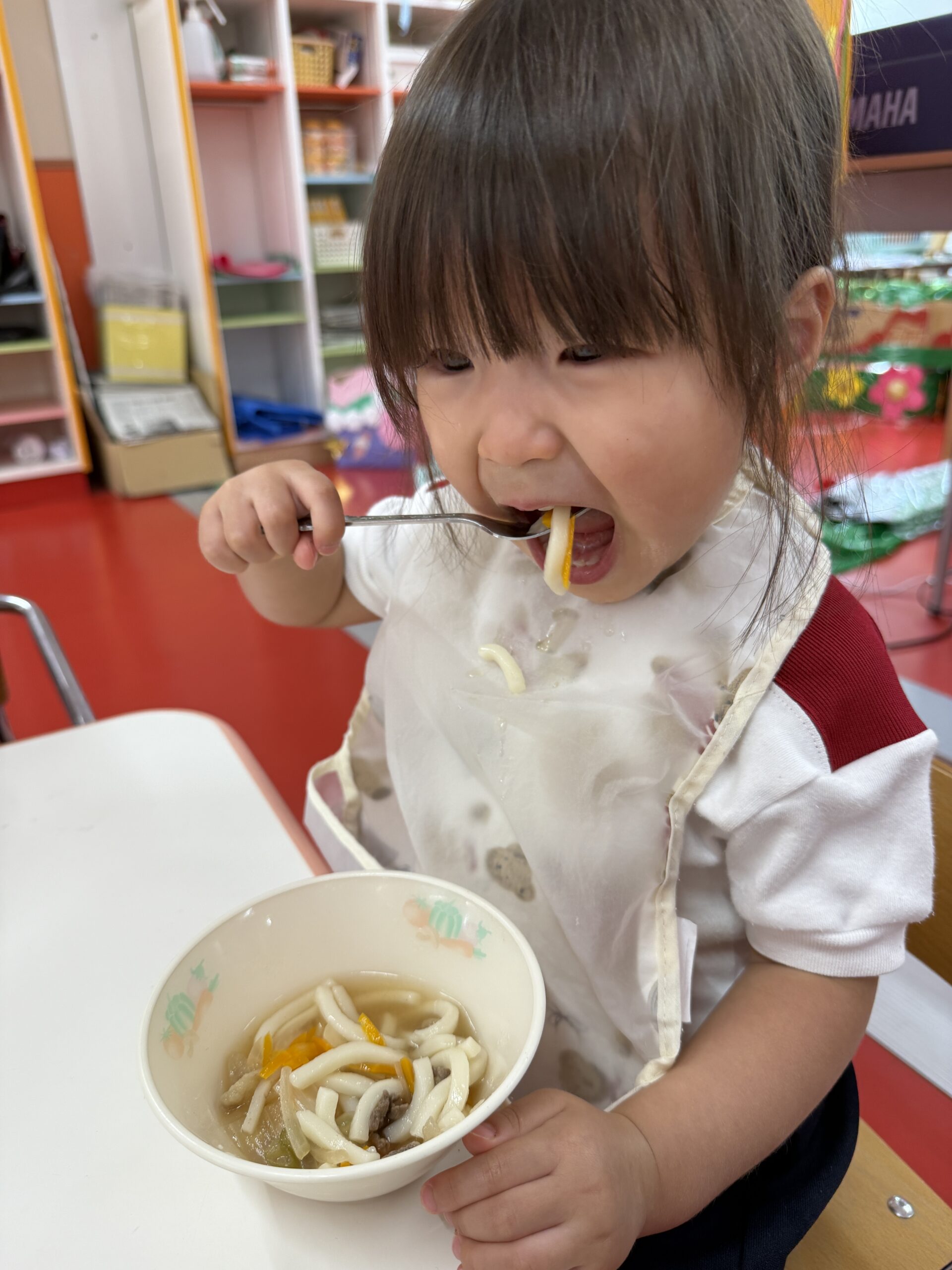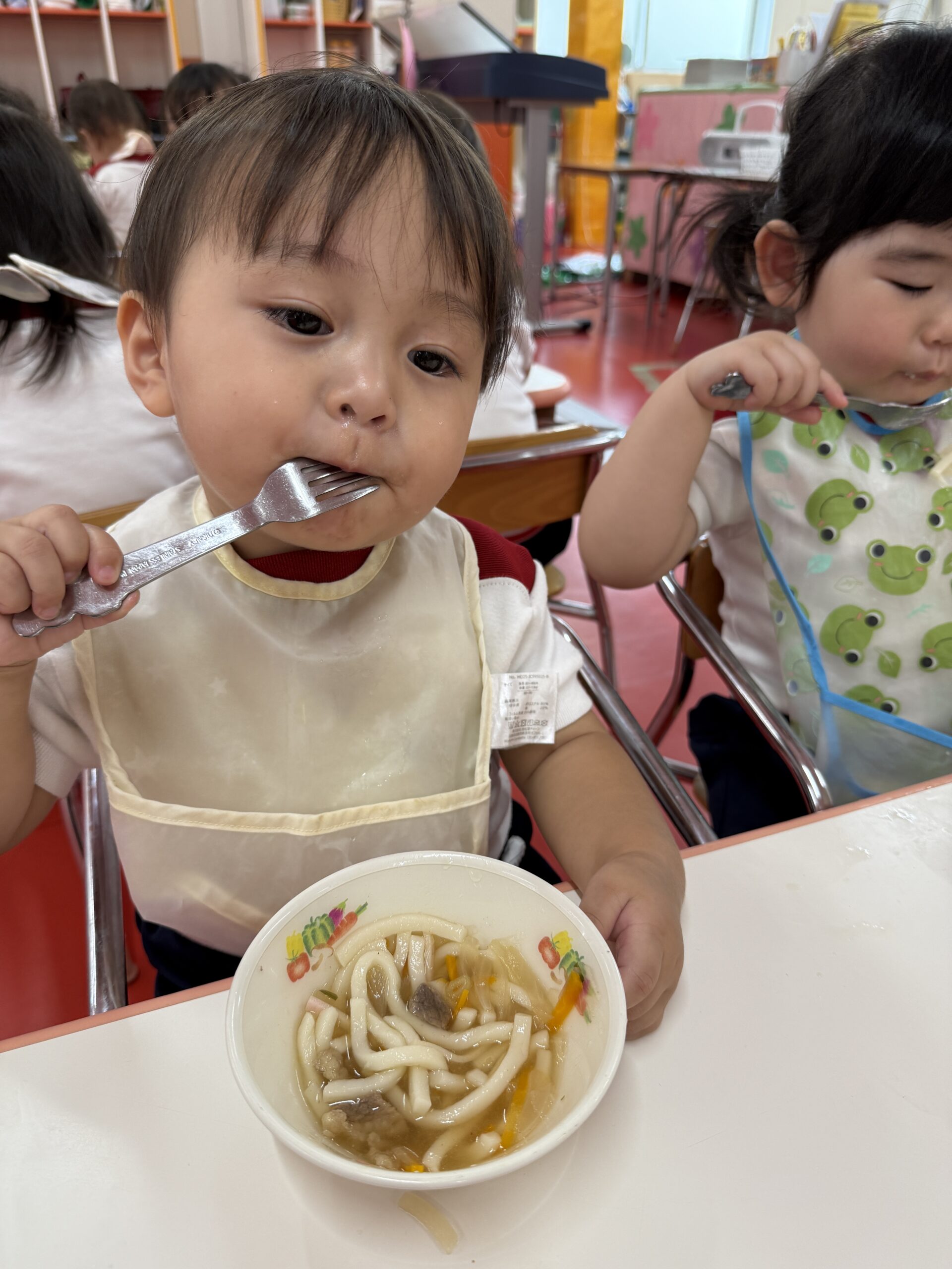 うどんに大喜びの子どもたちでした🤭❤️上手にフォークやスプーンを使ってくれています✨美味しかったのかみんなたっくさん食べてくれました〜⭐️
