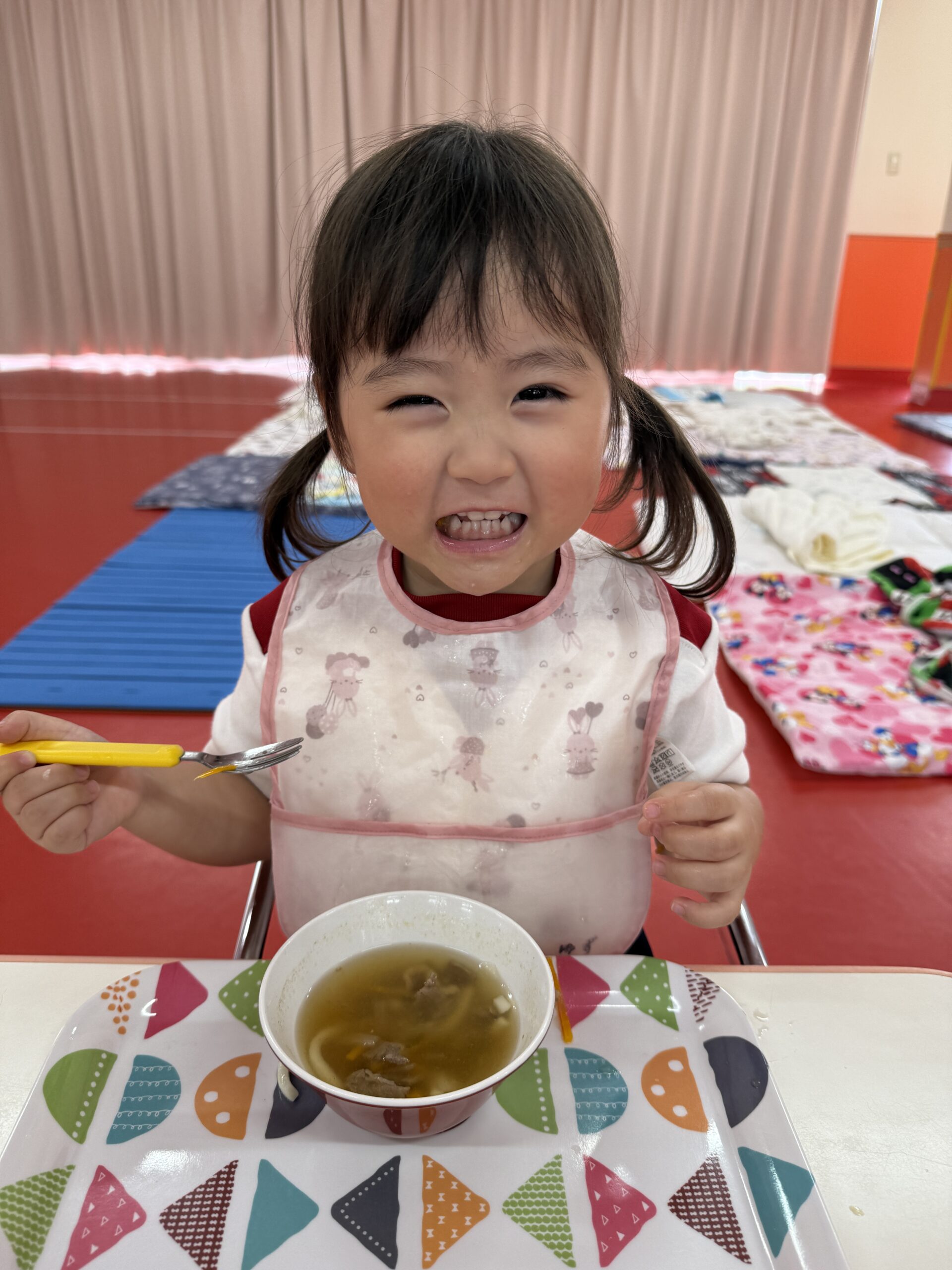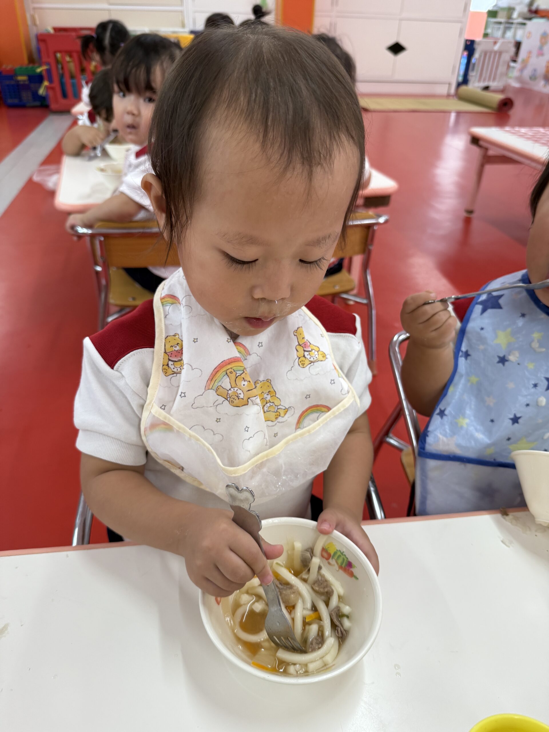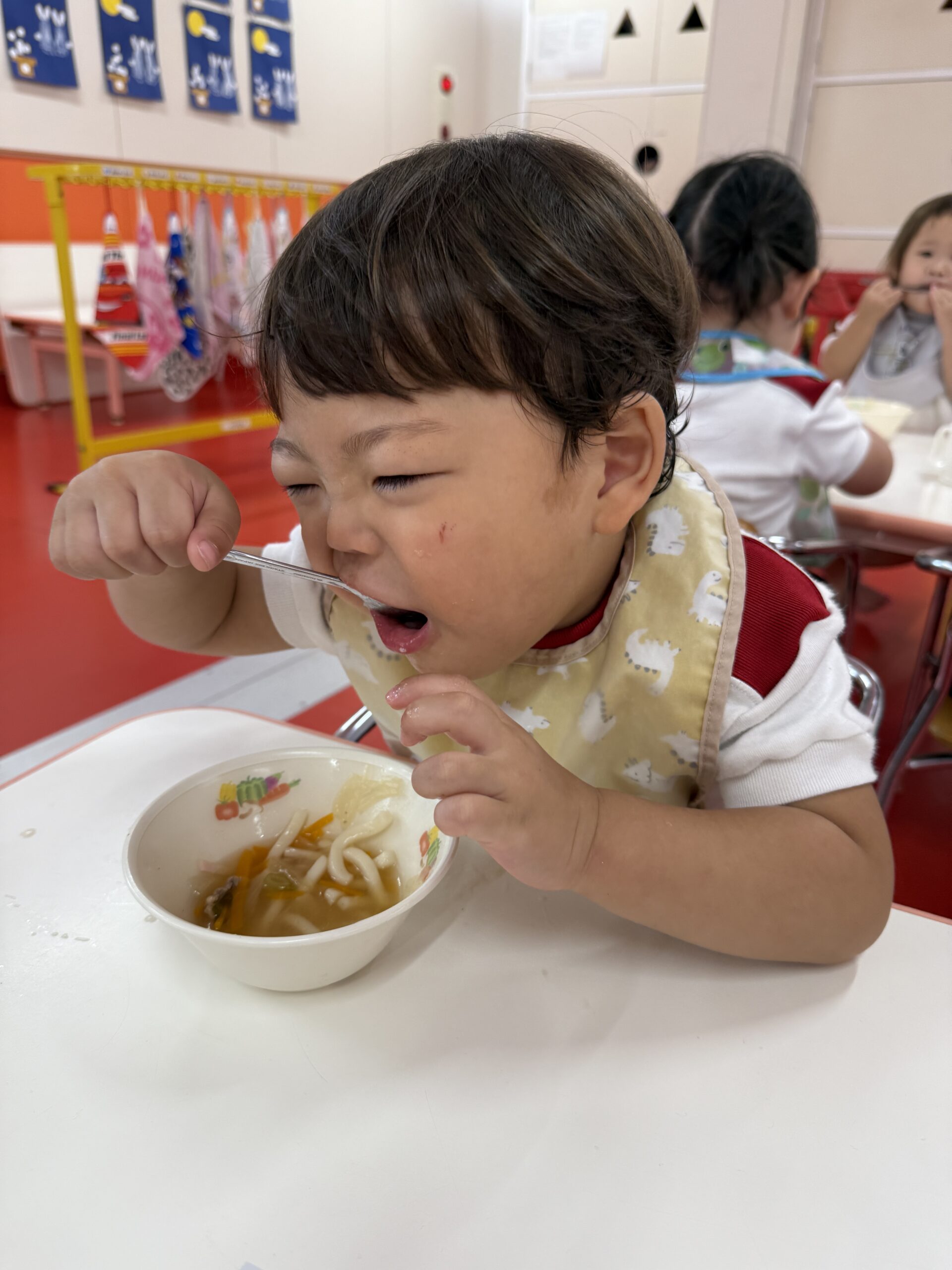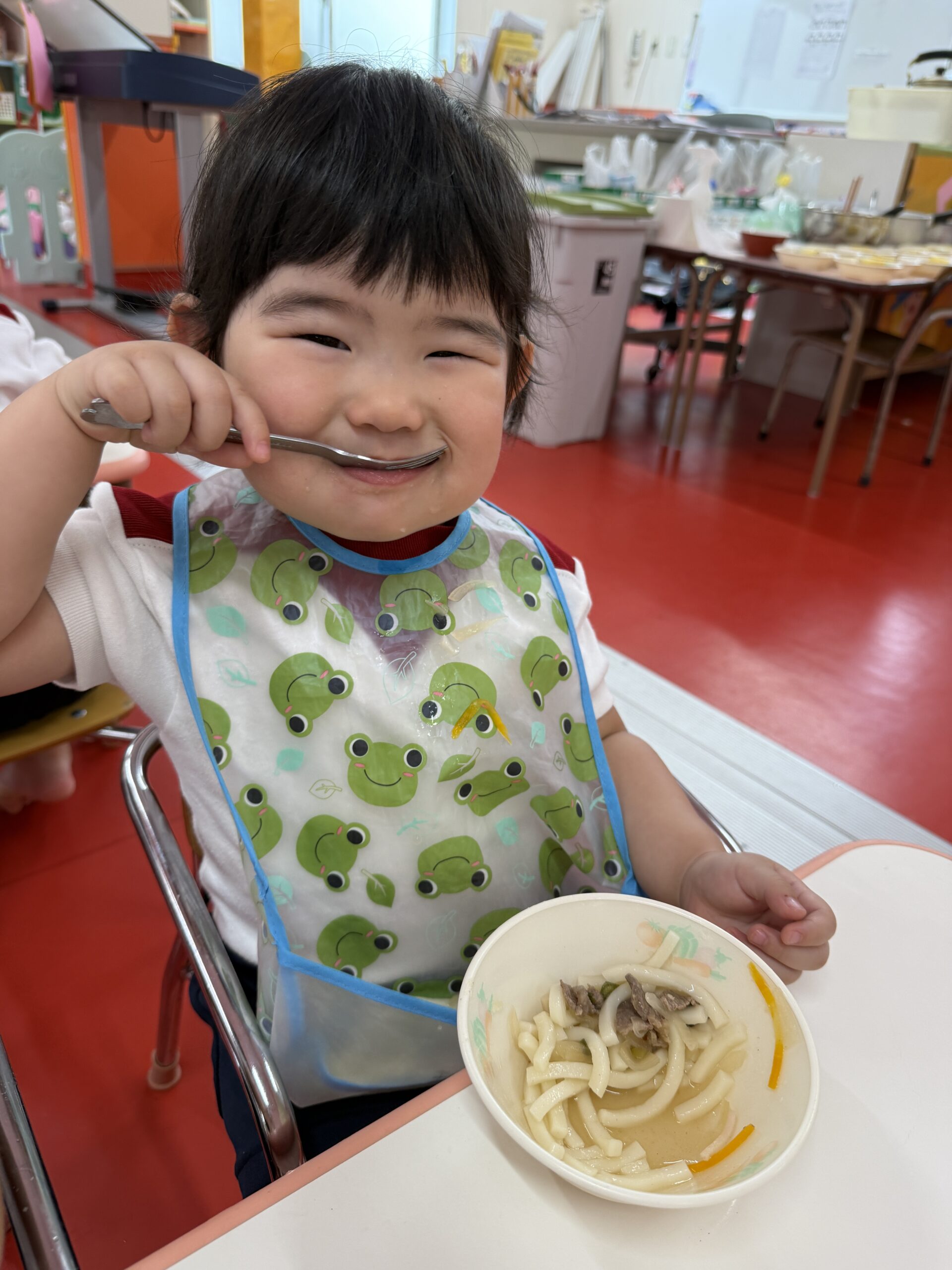 うどんに大喜びの子どもたちでした🤭❤️上手にフォークやスプーンを使ってくれています✨美味しかったのかみんなたっくさん食べてくれました〜⭐️