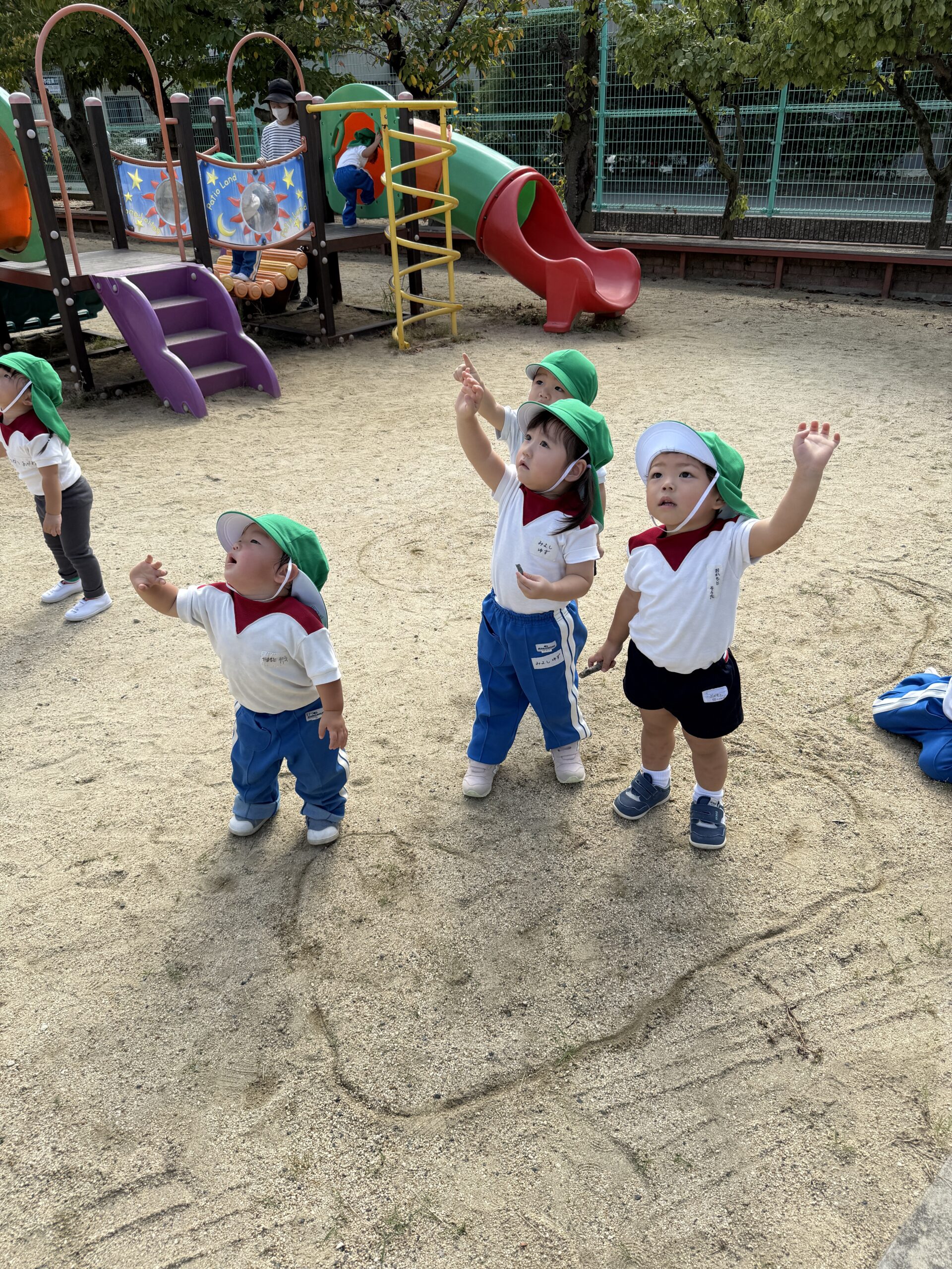 空に飛行機やヘリコプターが通ると大興奮の子どもたち✨