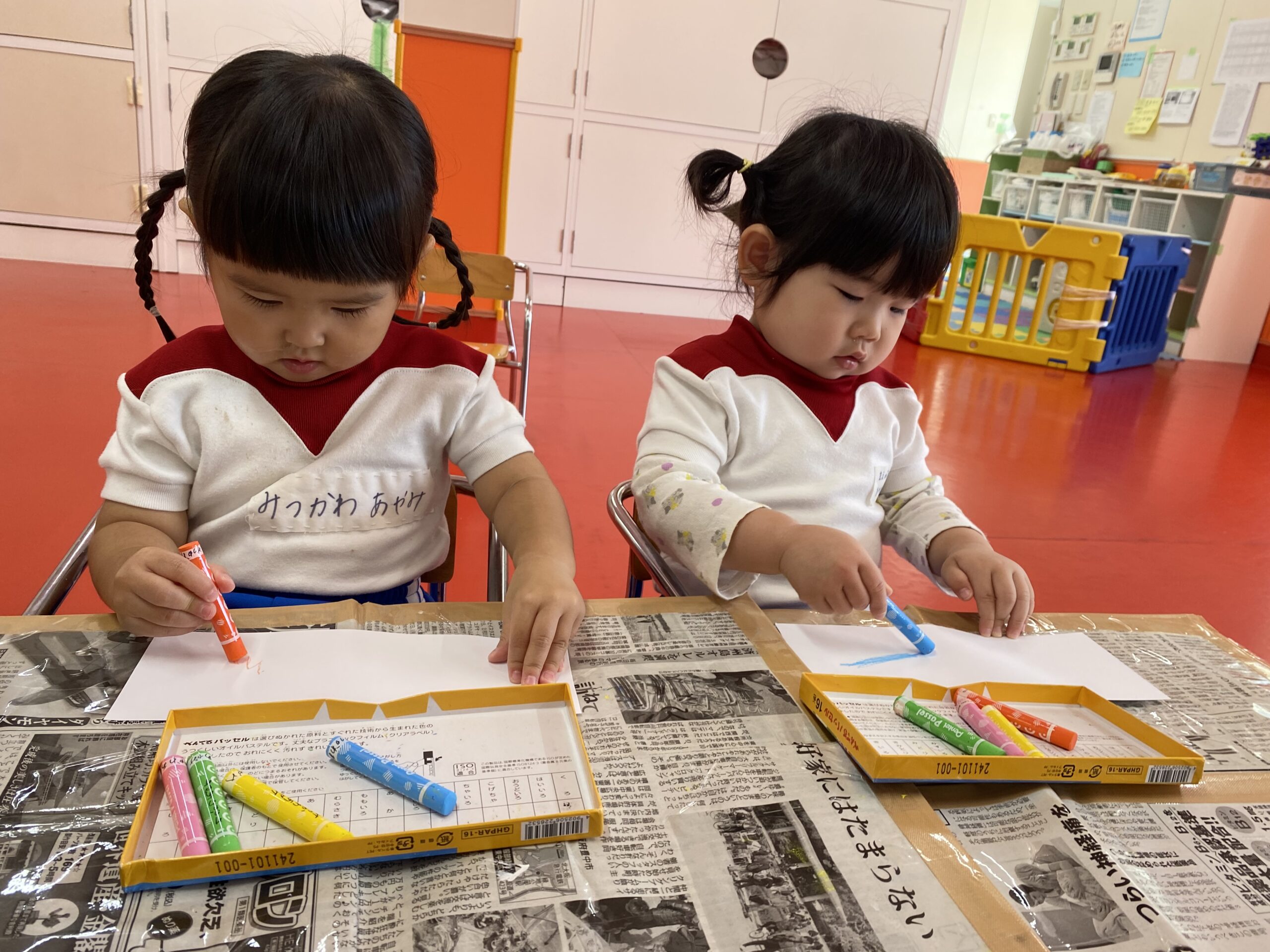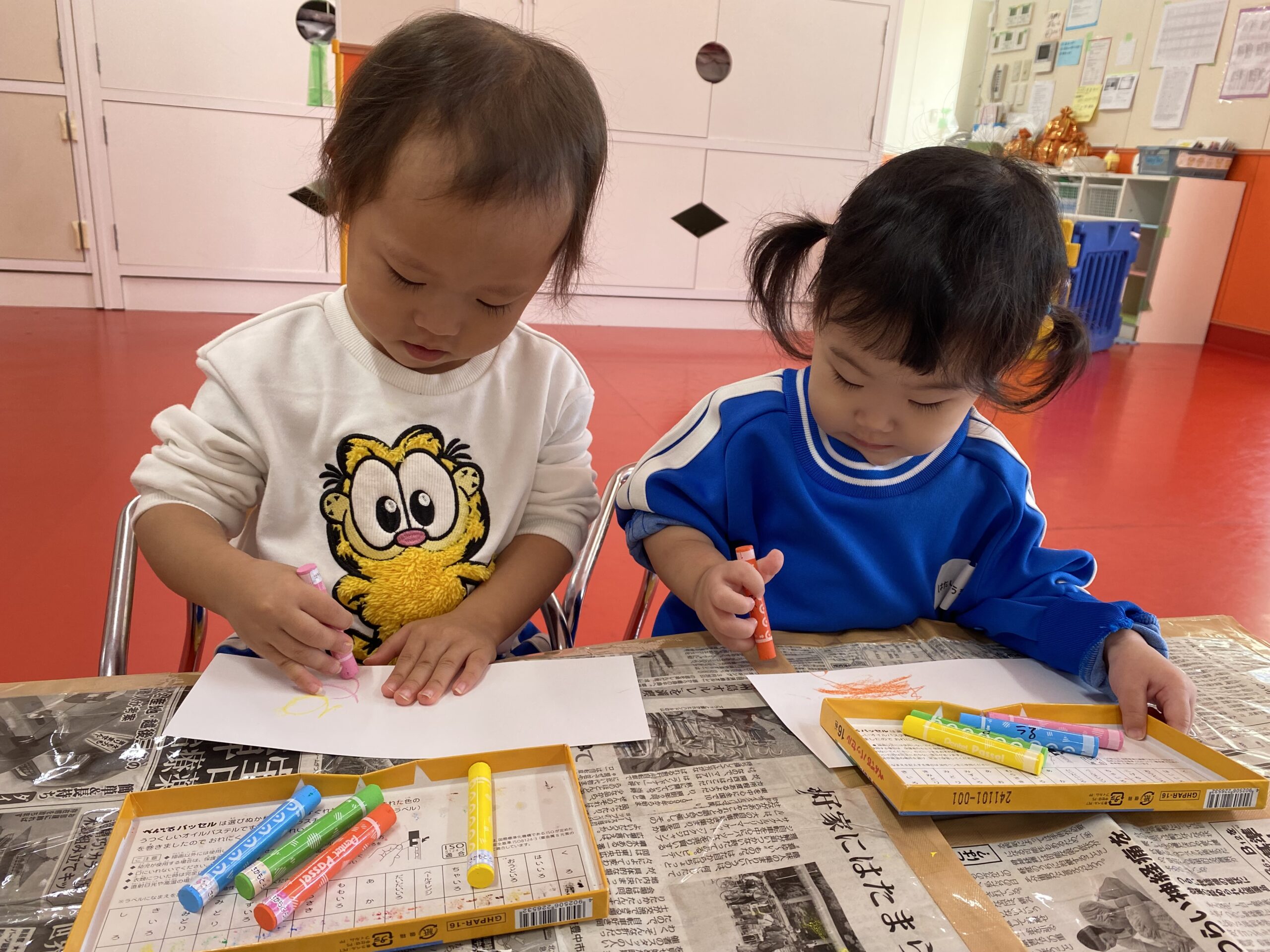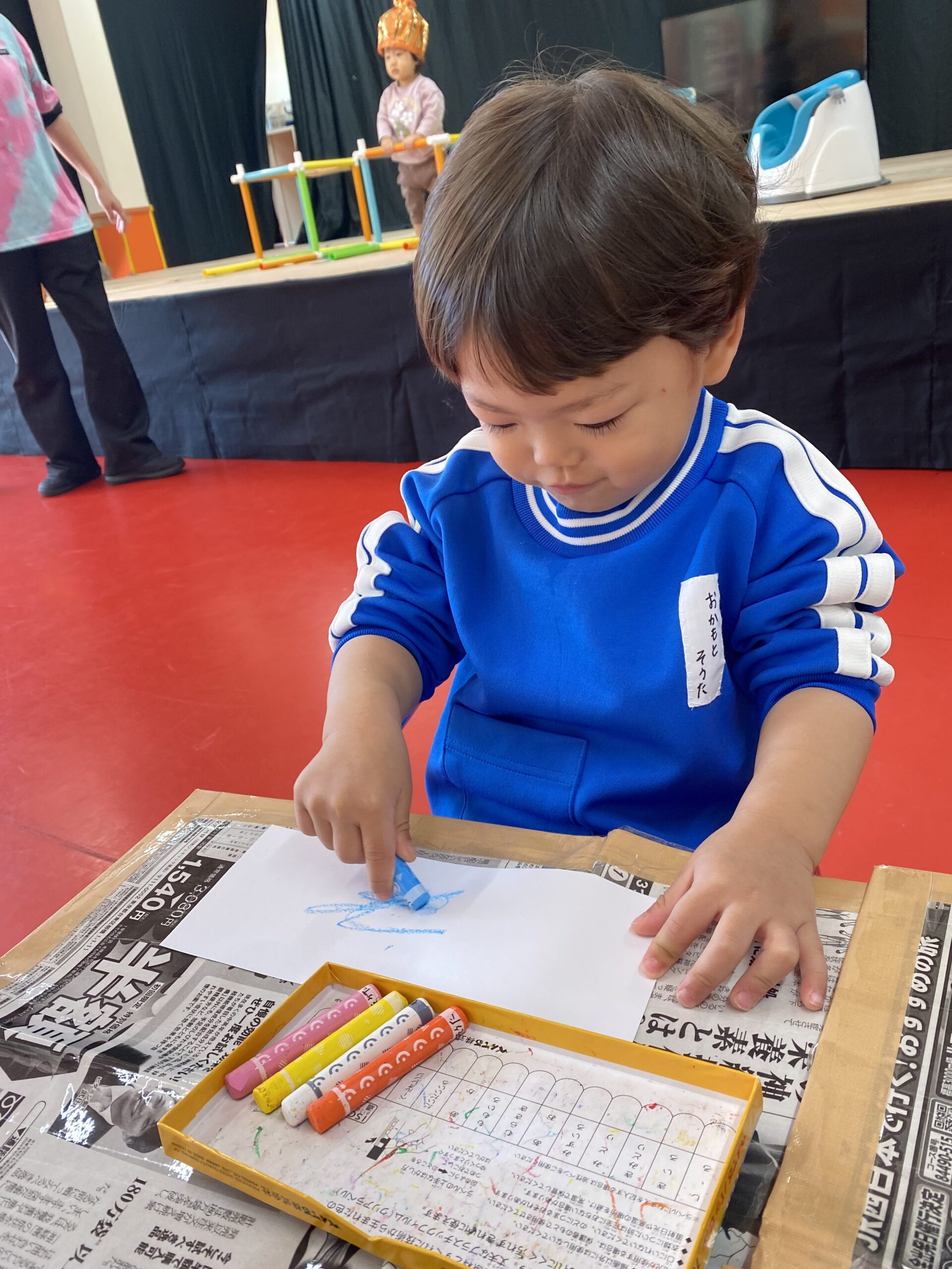 あめ袋制作では、クレパスを上手に持って自由に描いていましたよ🎨💗