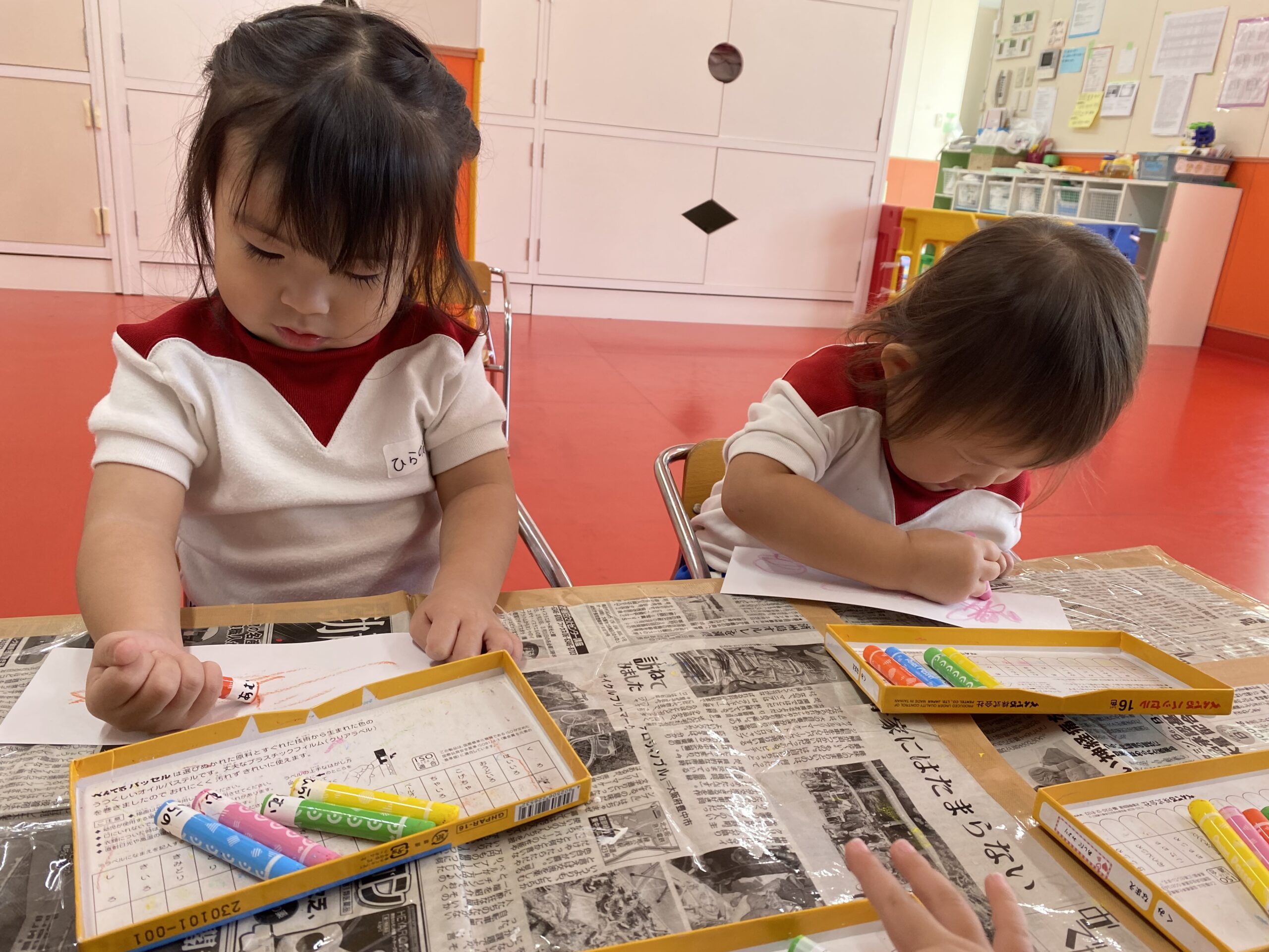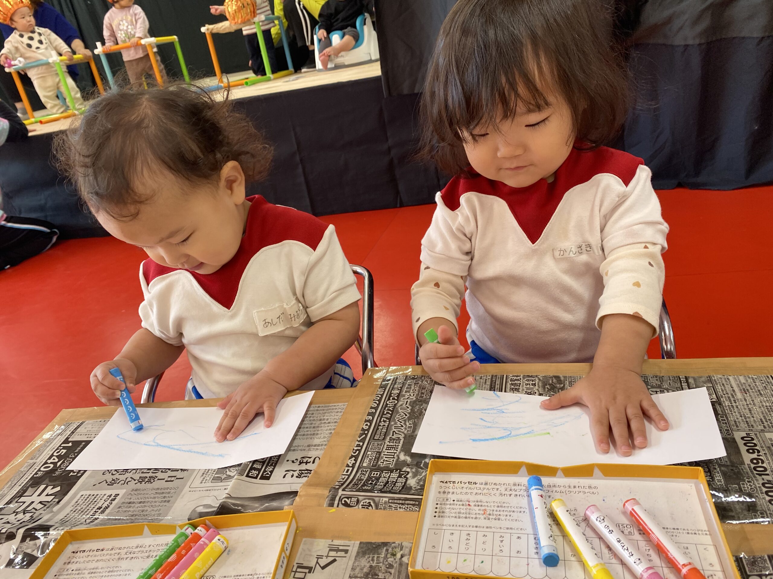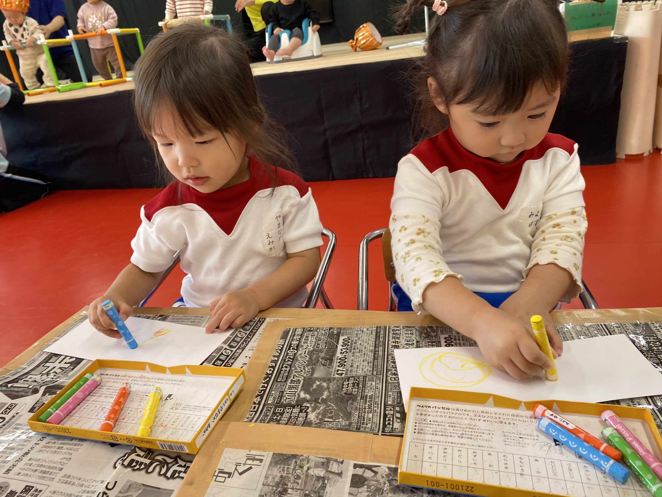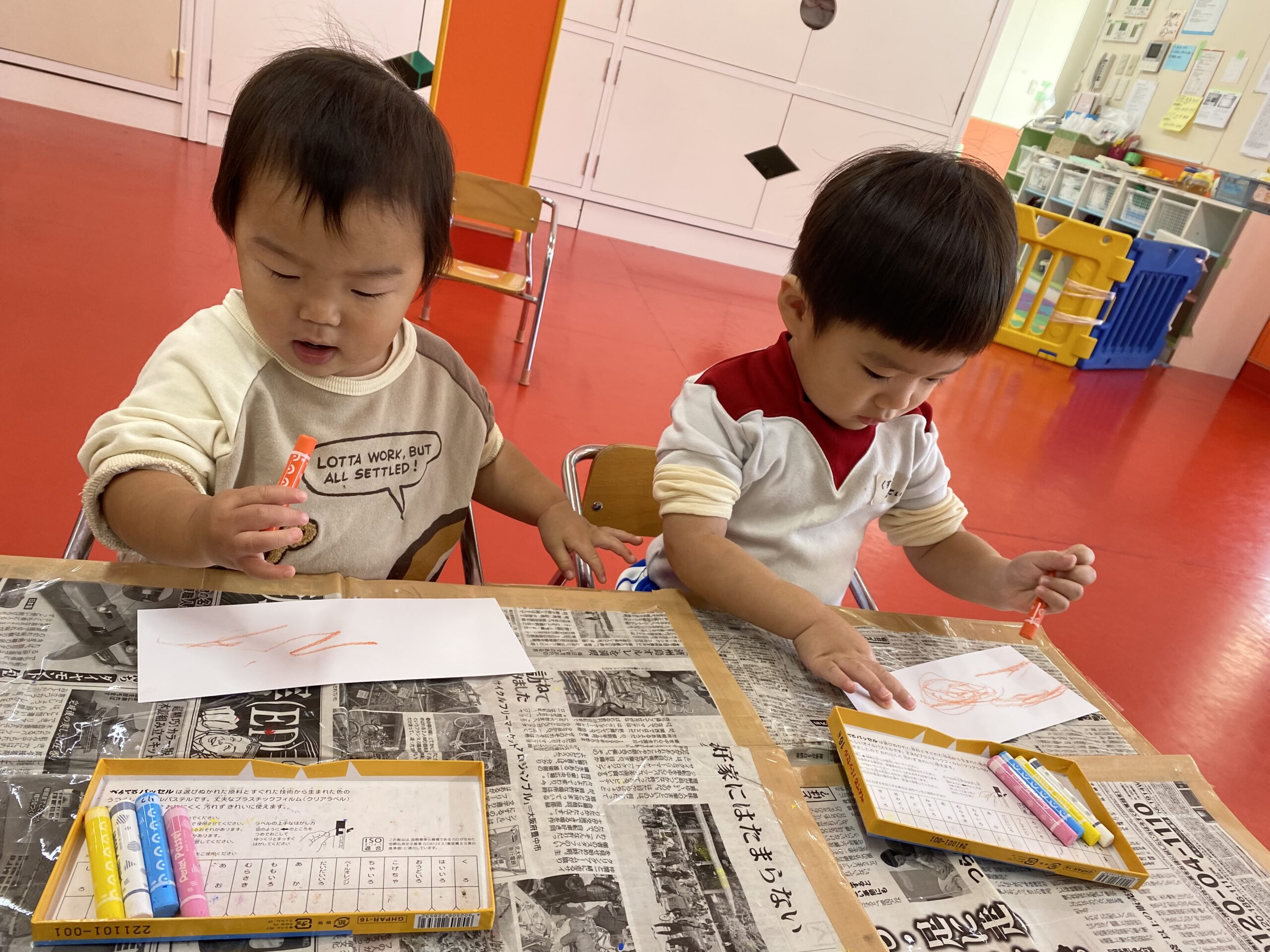 あめ袋制作では、クレパスを上手に持って自由に描いていましたよ🎨💗