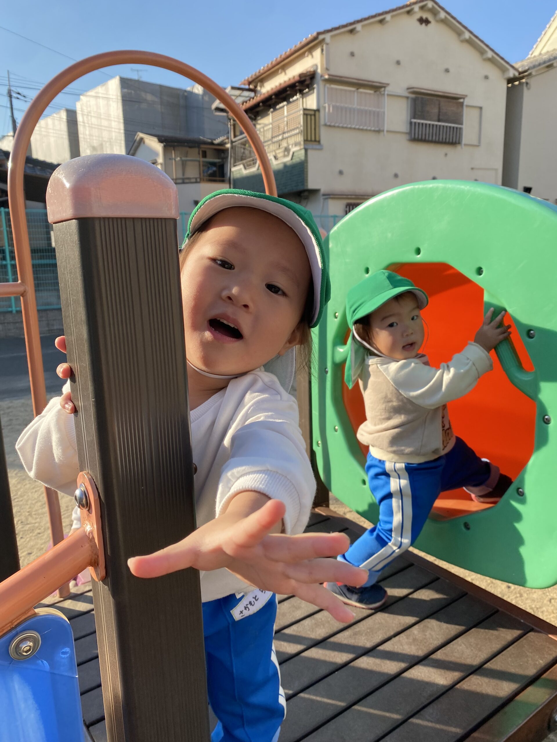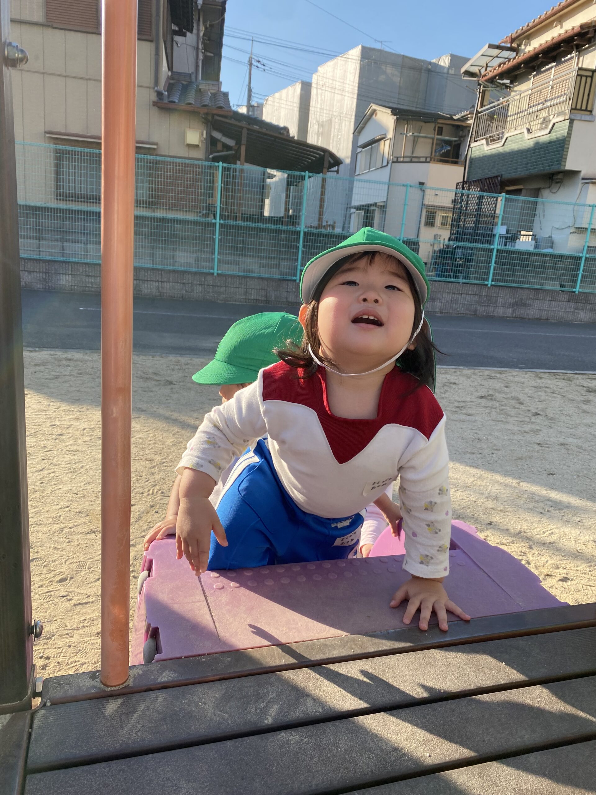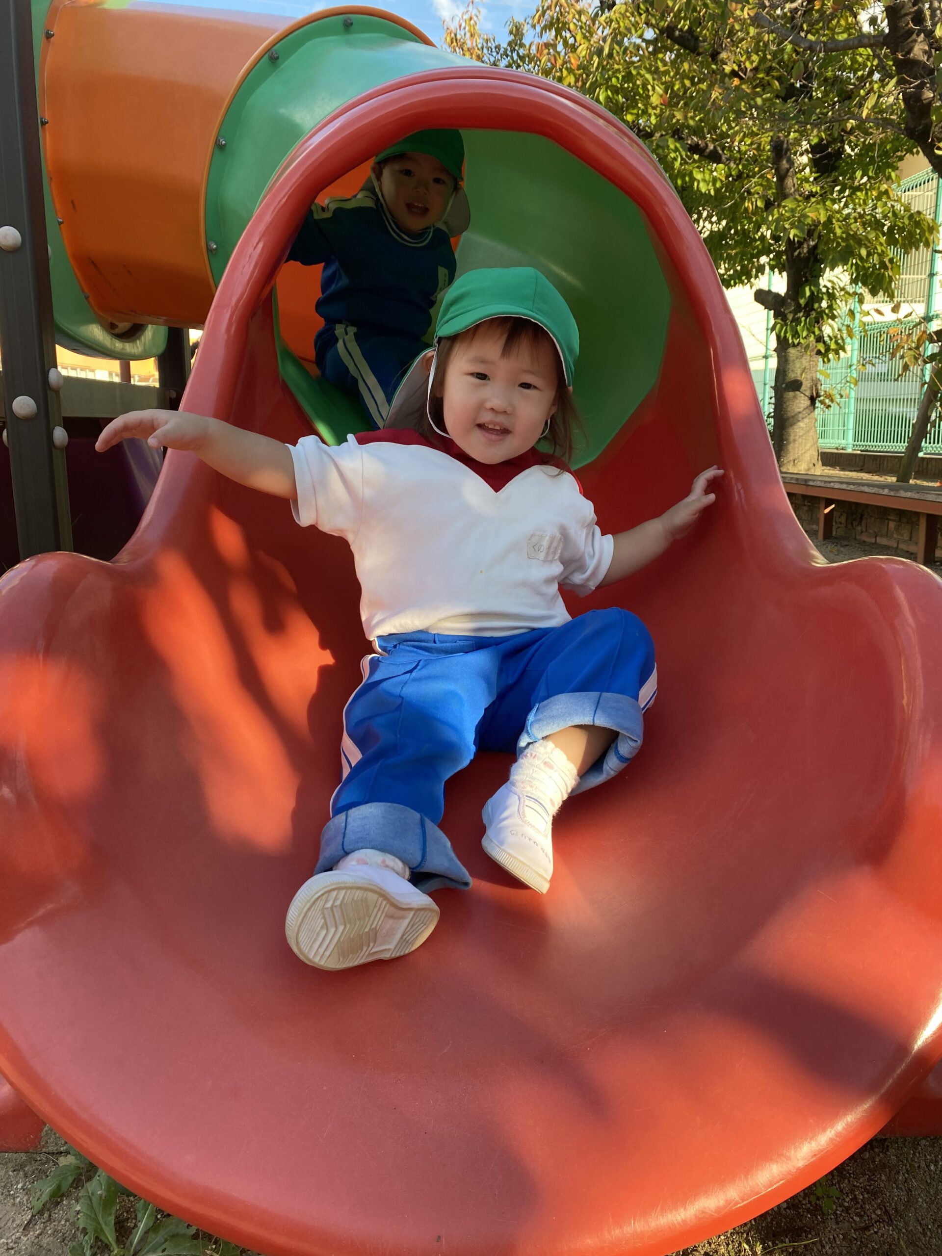 広い園庭を走ったり、滑り台やゆらゆら橋を繰り返し楽しんでいた子ども達です🎶