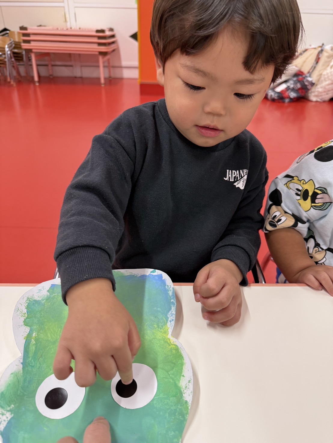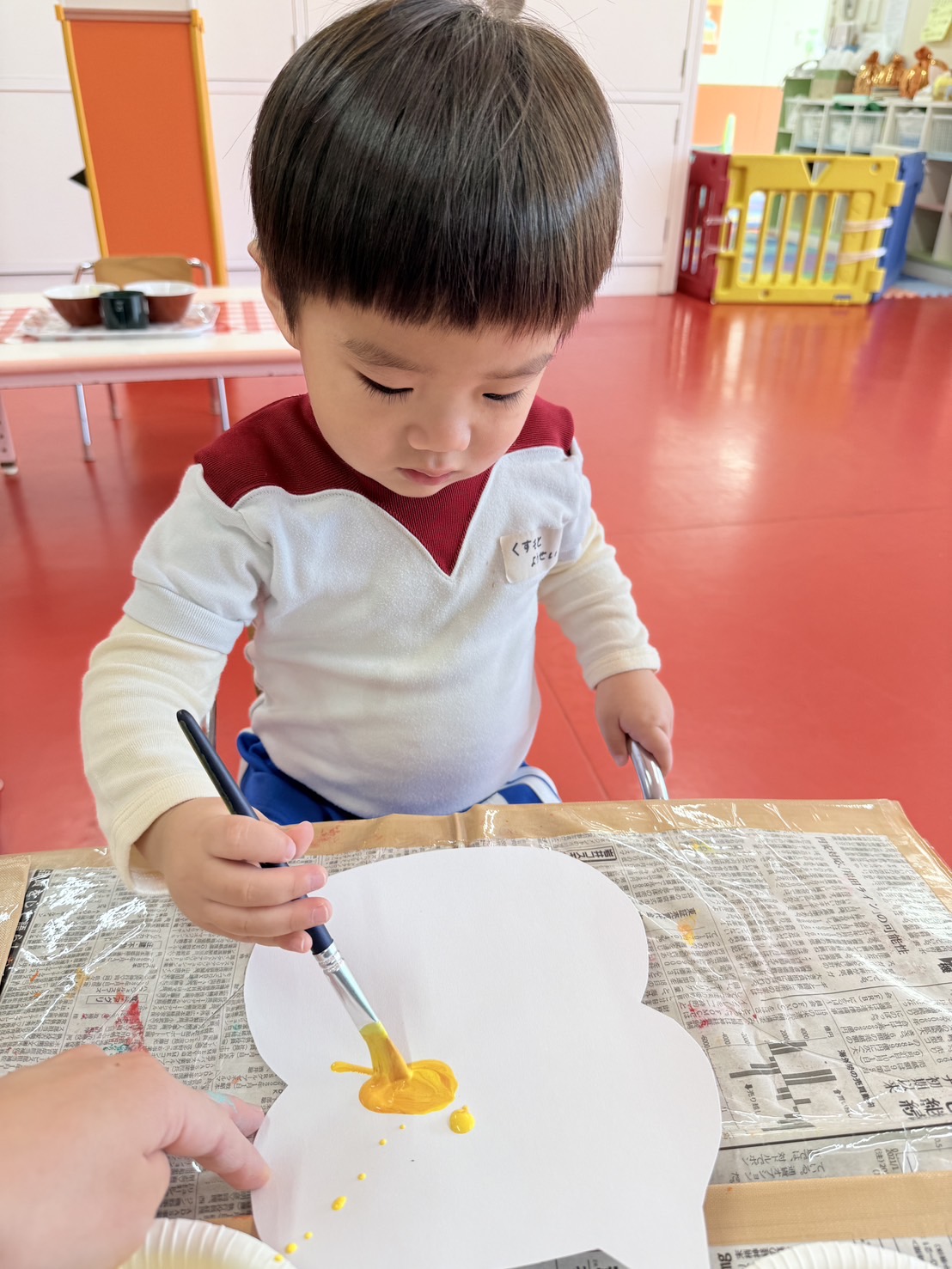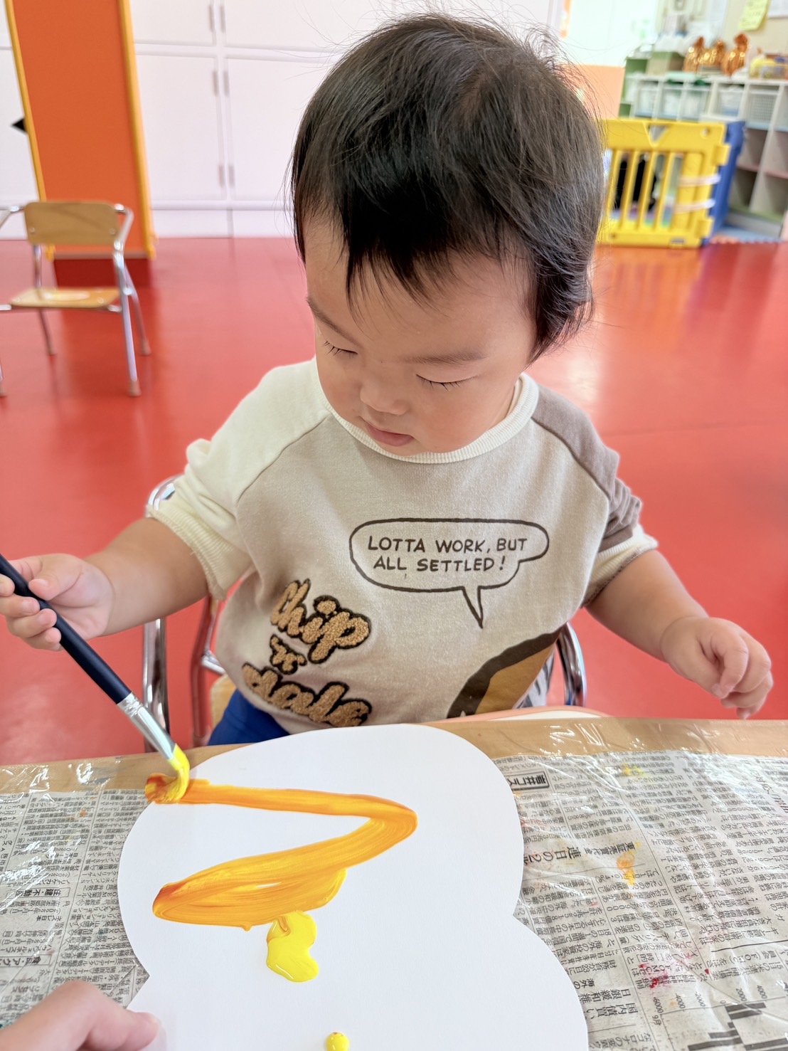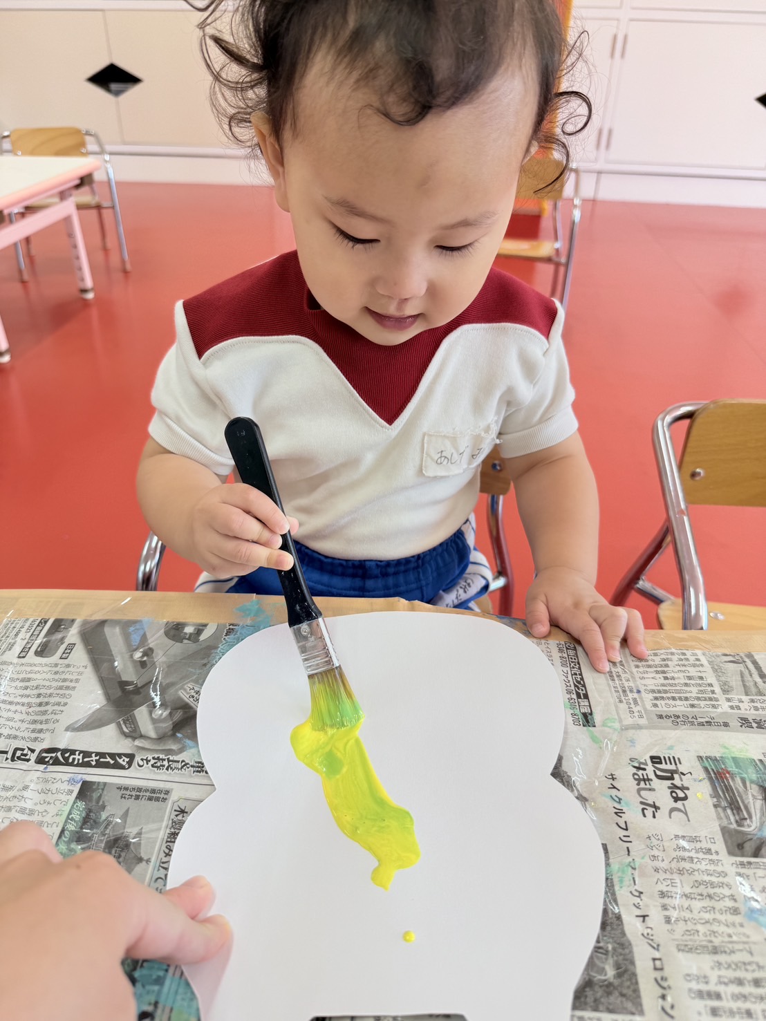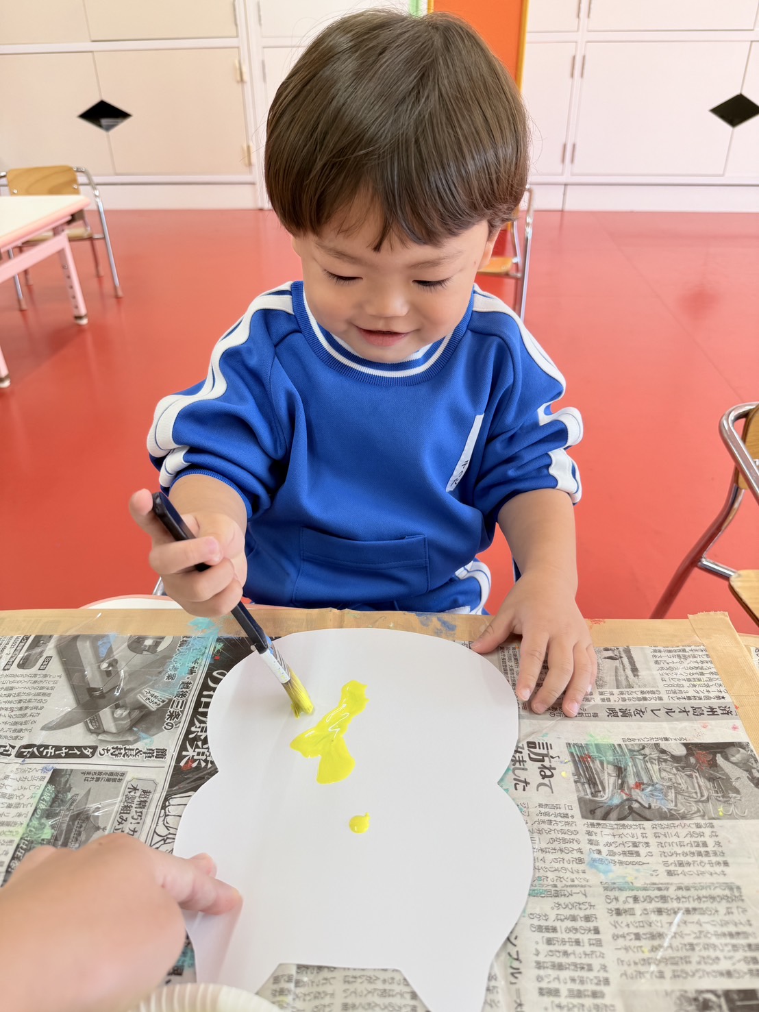 壁面では好きな色の絵の具を塗った後、上から絵の具を押さえて感触を楽しみました😊