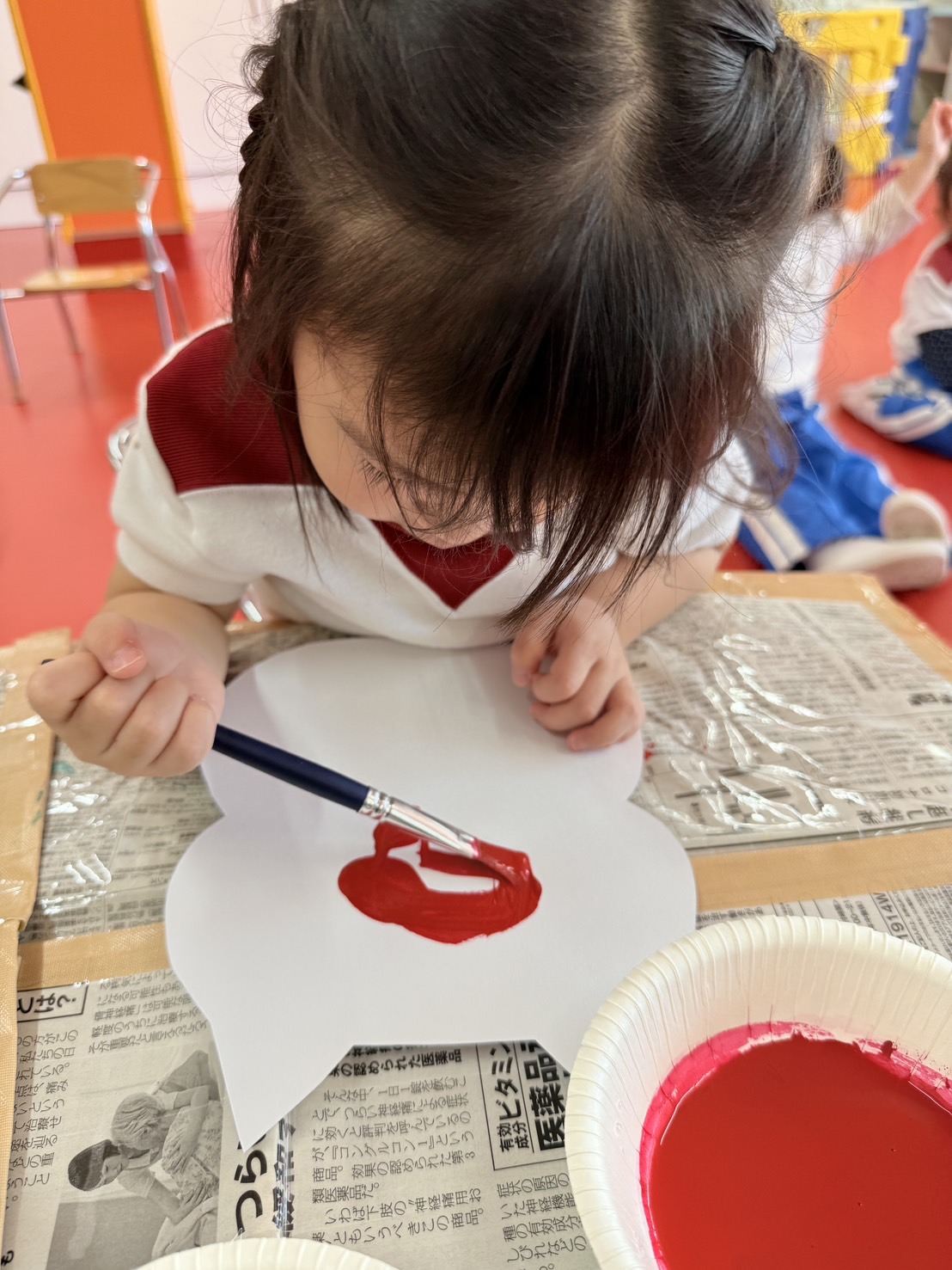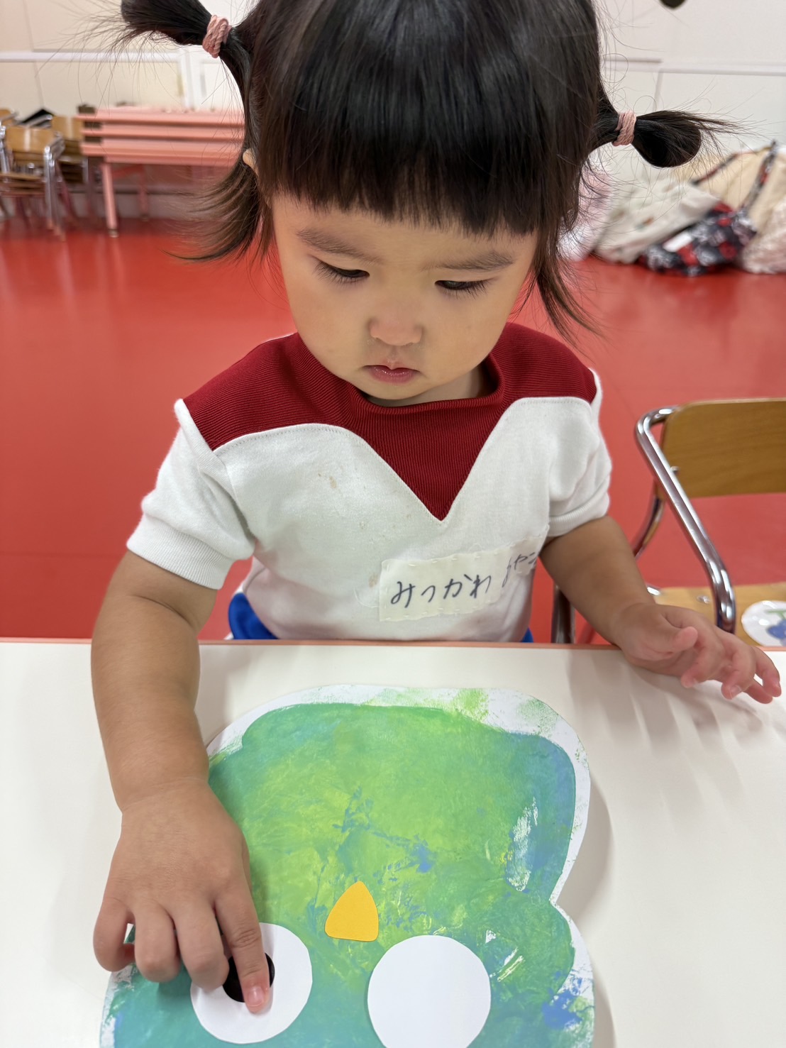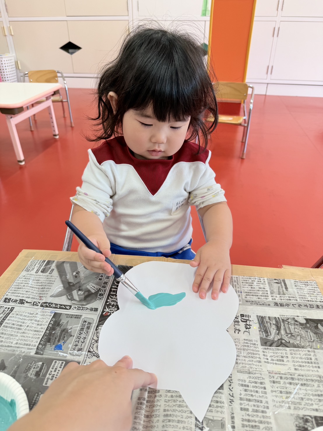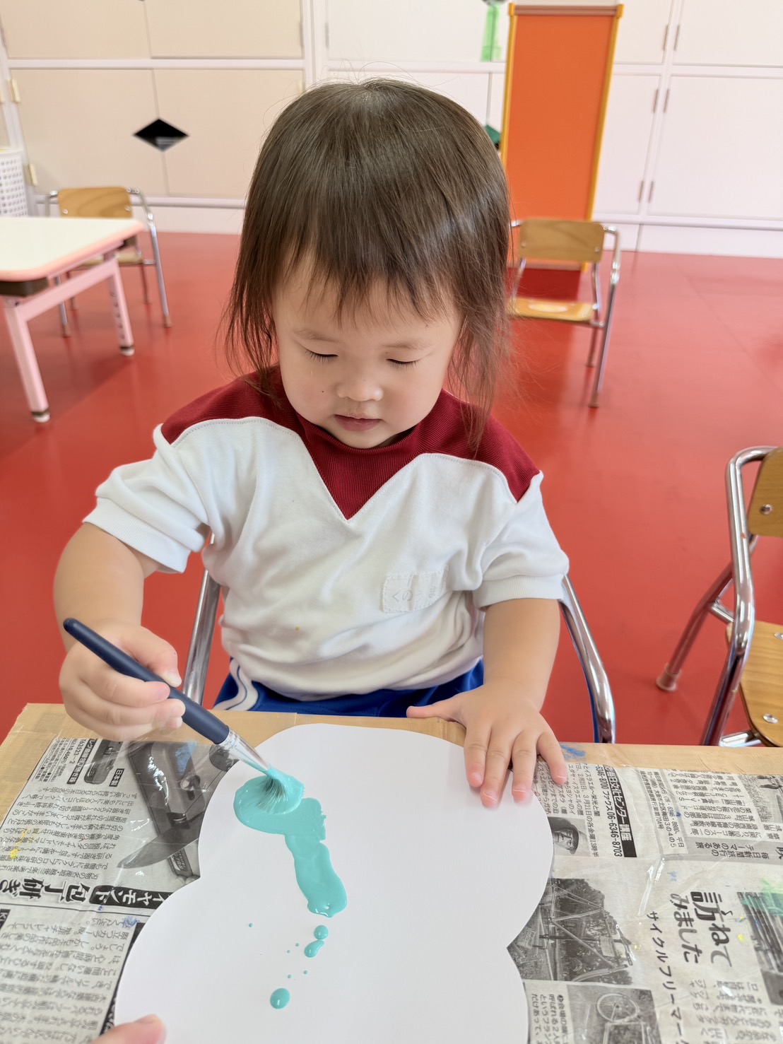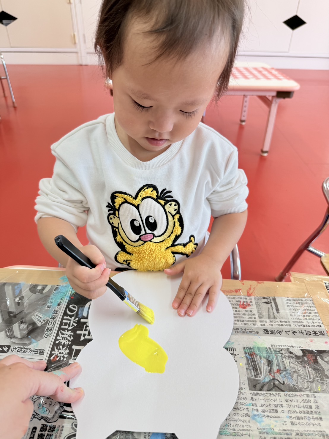 壁面では好きな色の絵の具を塗った後、上から絵の具を押さえて感触を楽しみました😊