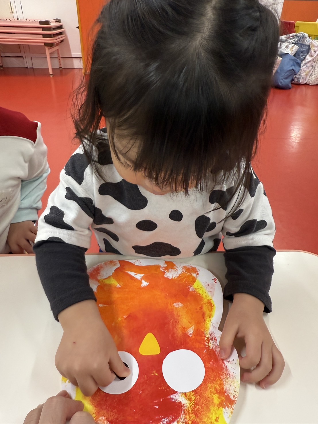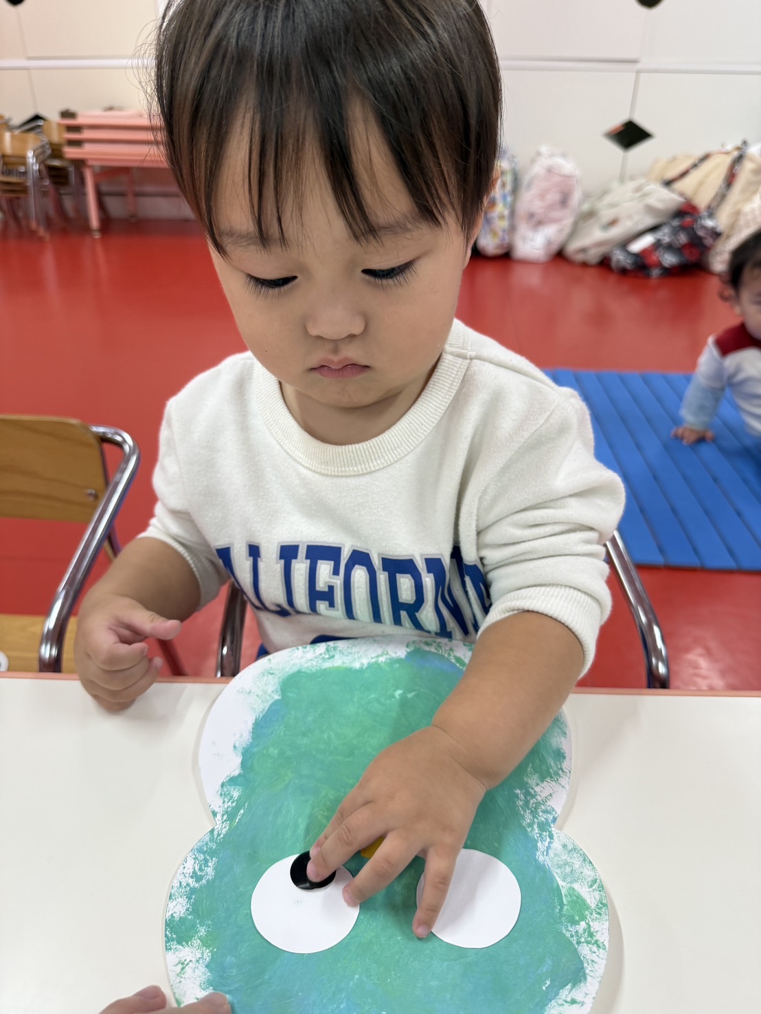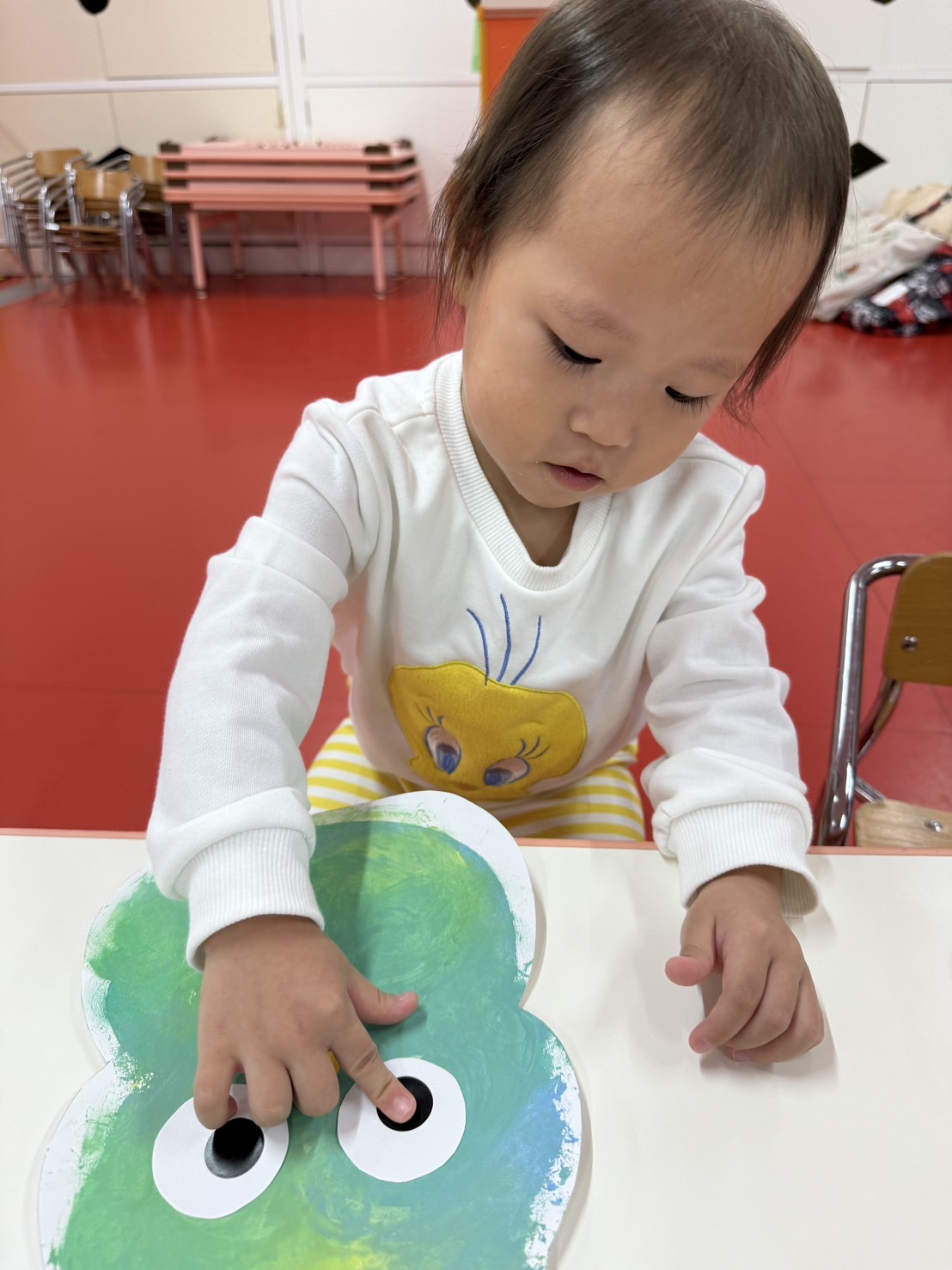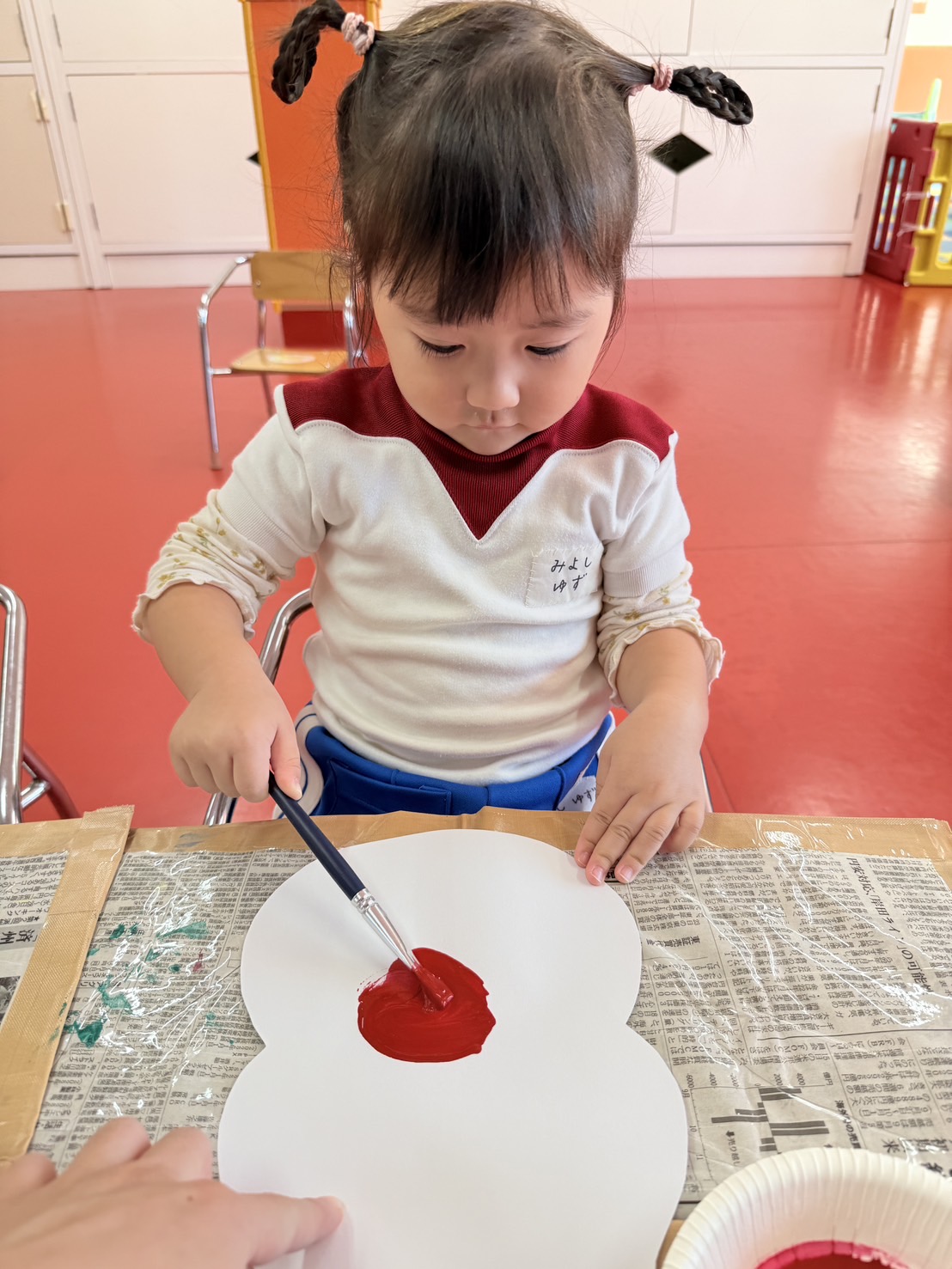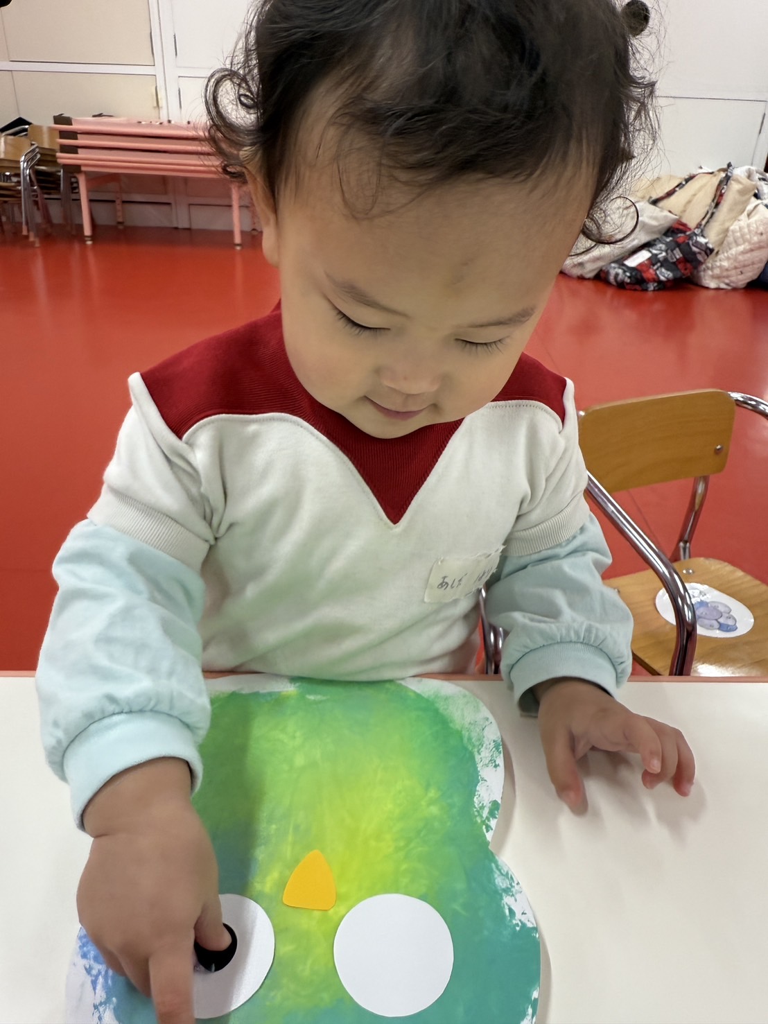 壁面では好きな色の絵の具を塗った後、上から絵の具を押さえて感触を楽しみました😊
