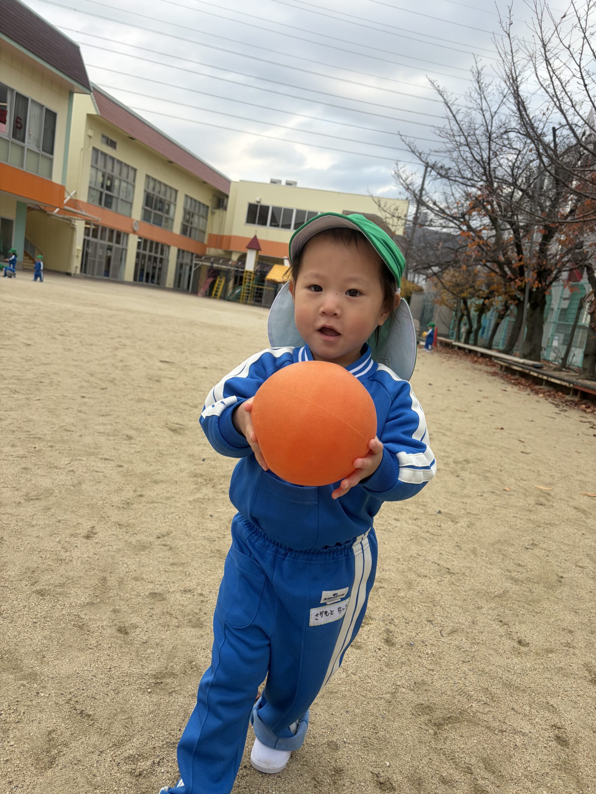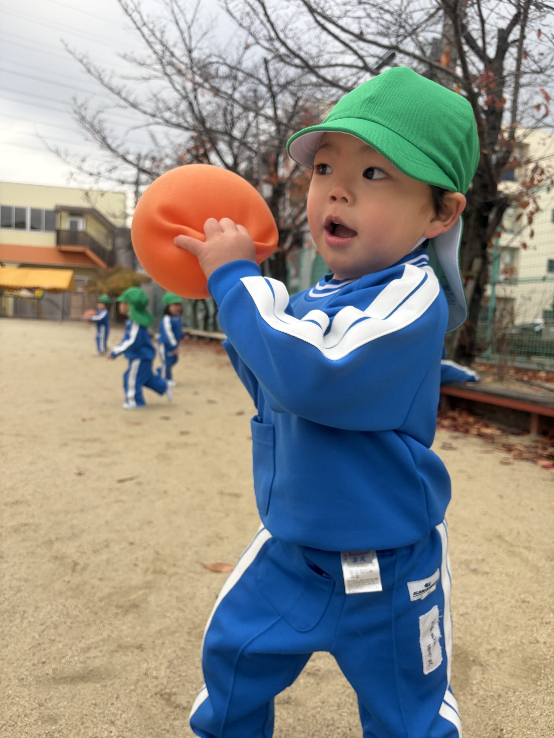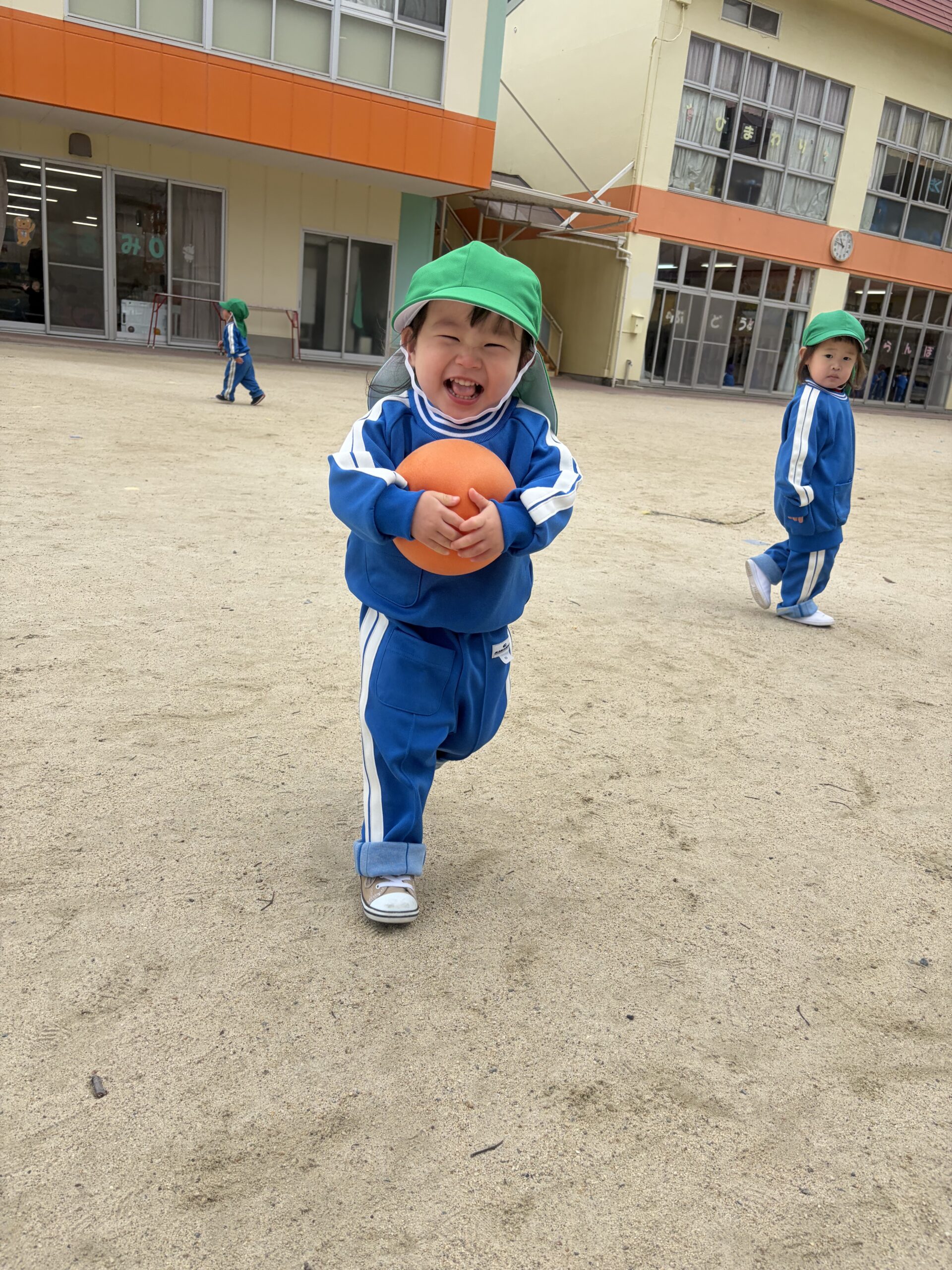 ボールを蹴ったり投げては走って、たくさん体を動かし寒さに負けず楽しんでいます😊