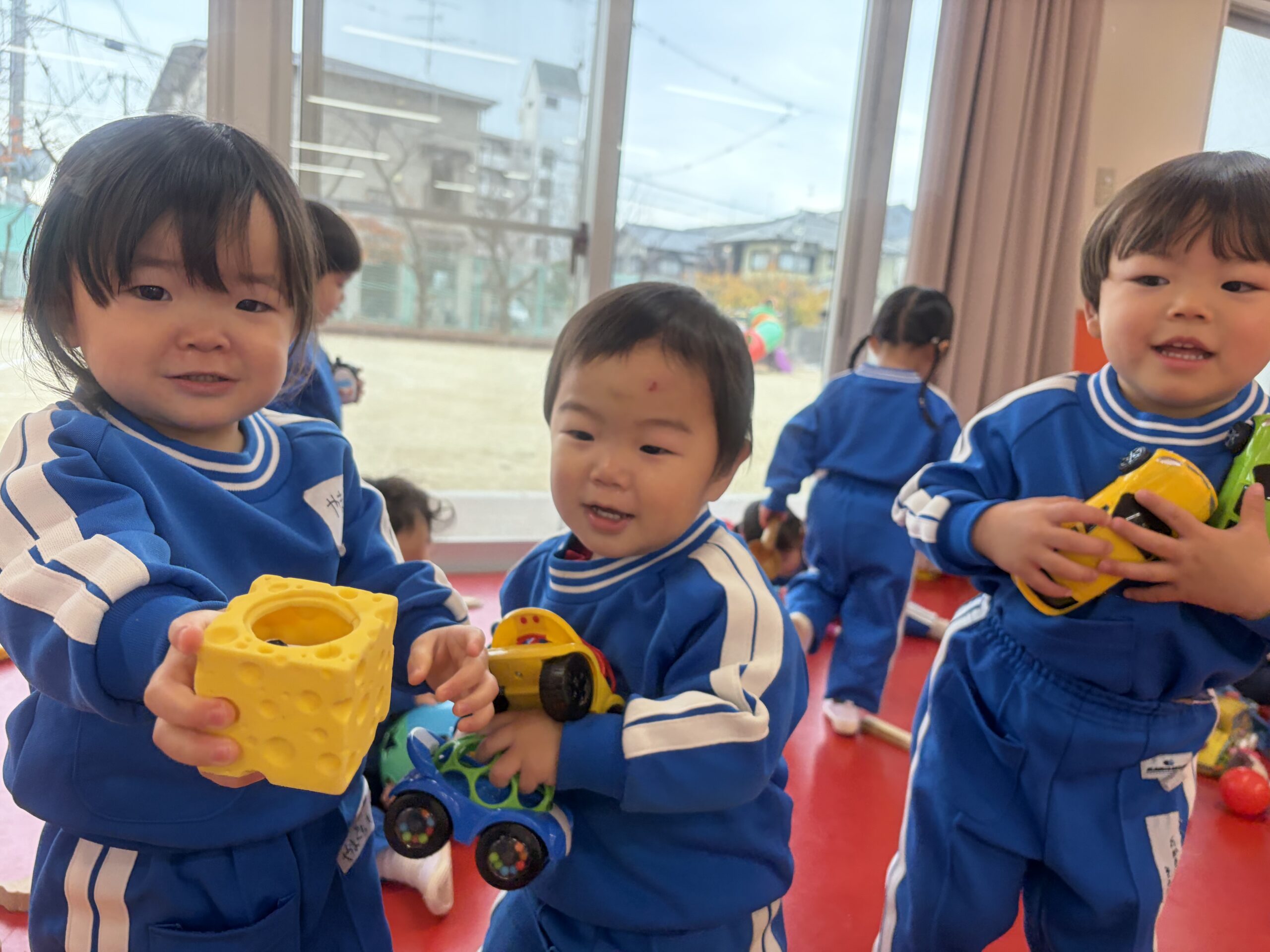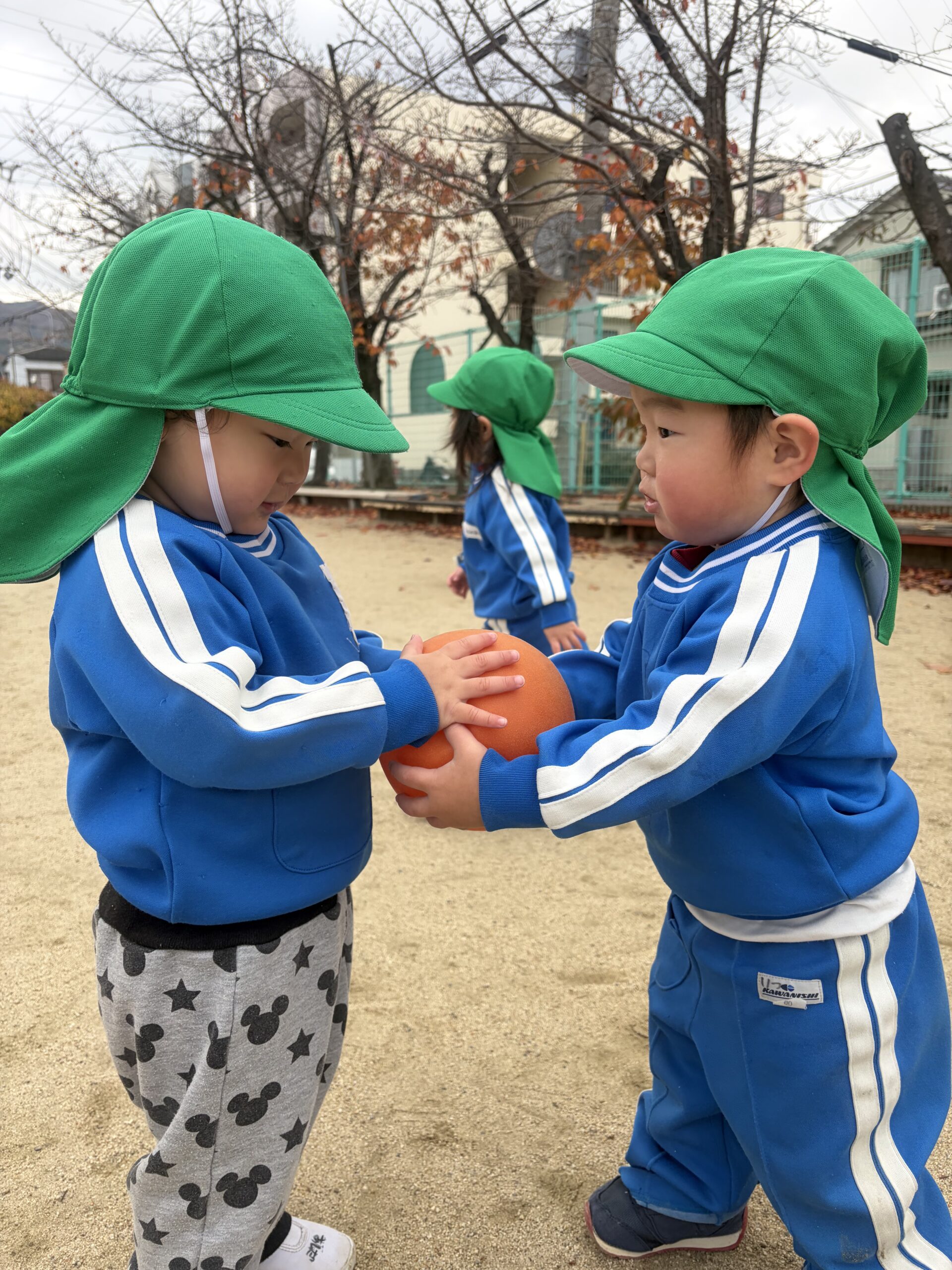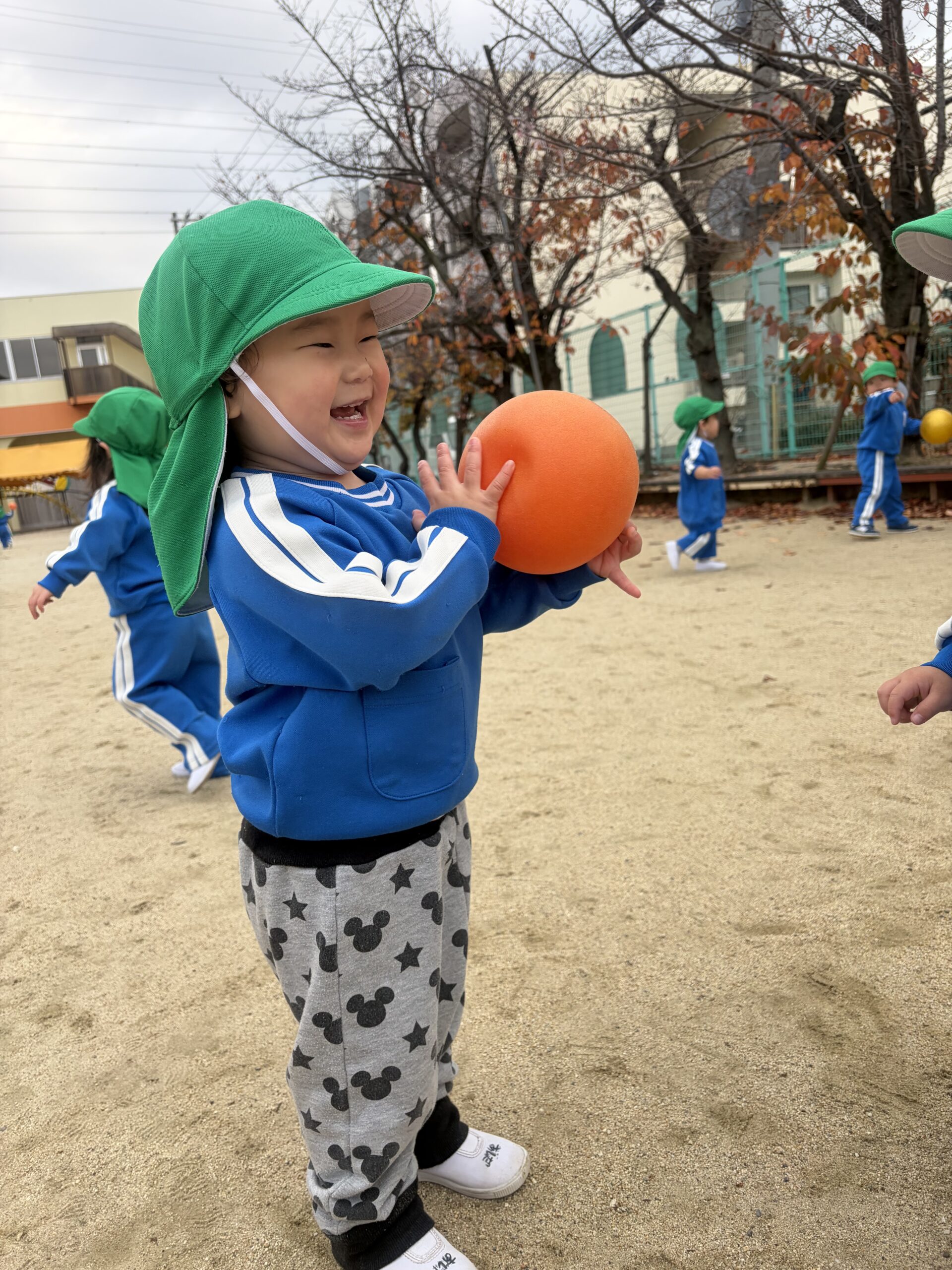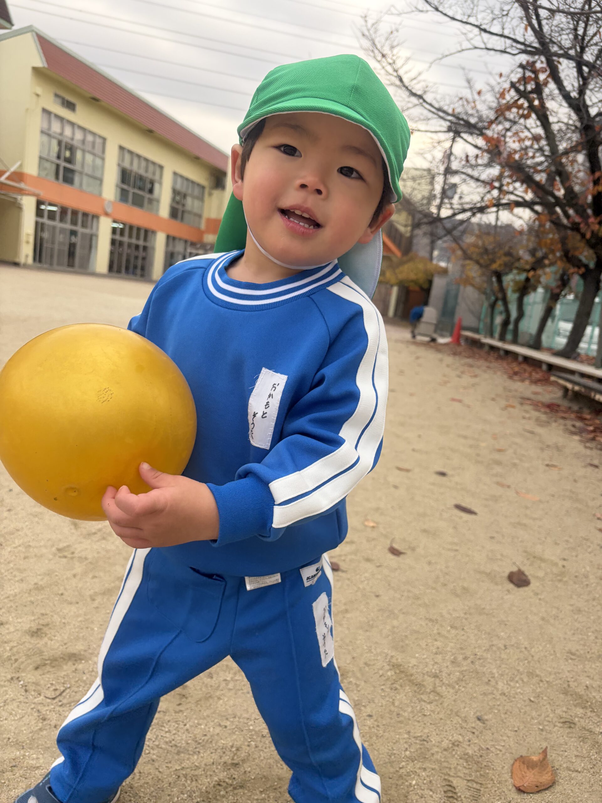 ボールを蹴ったり投げては走って、たくさん体を動かし寒さに負けず楽しんでいます😊
