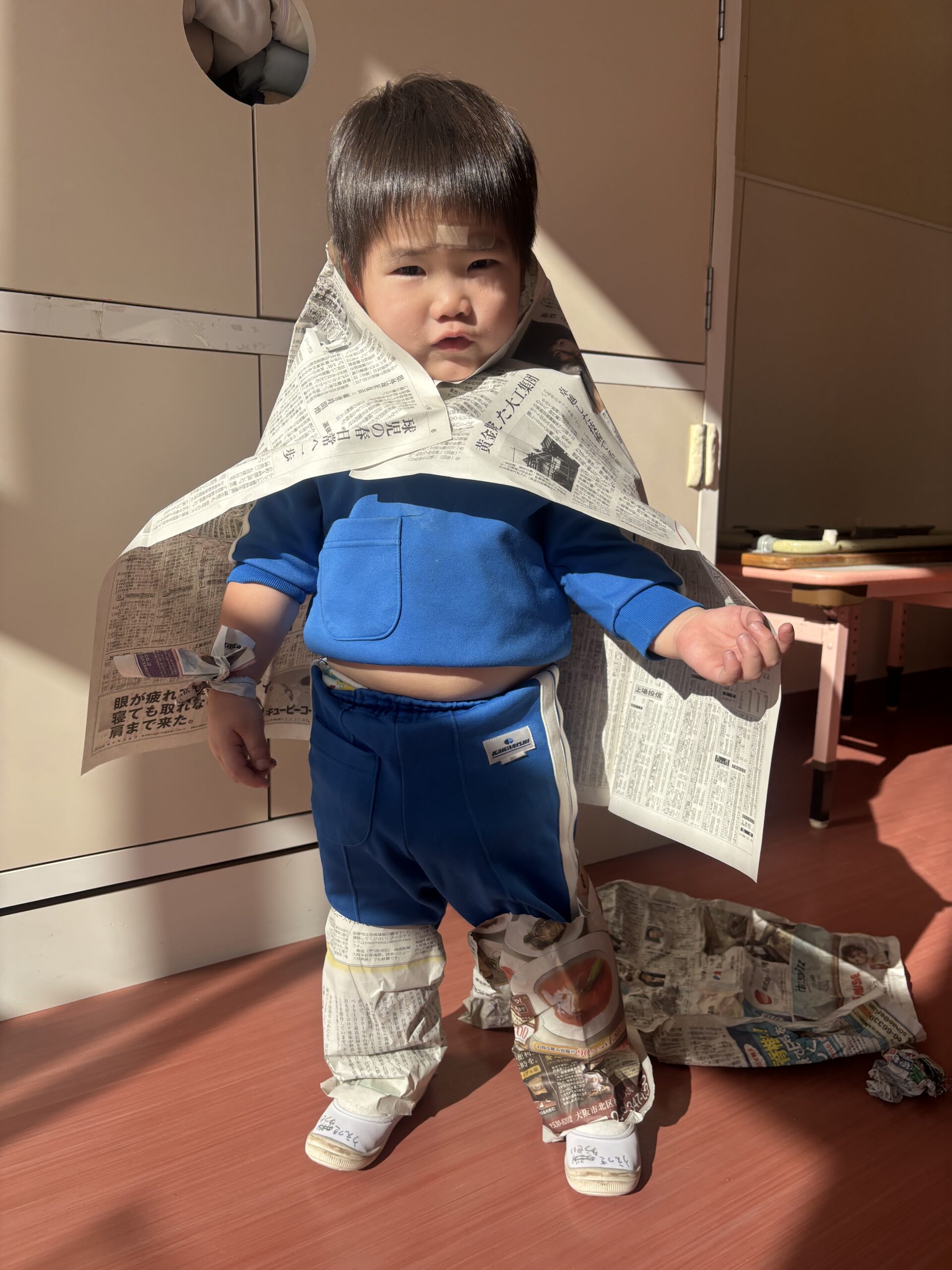 衣服類のストックを持ち帰ります。名前やサイズ等確認していただき、必要な分だけ次回登園時に持ってきていただきたいです。よろしくお願いいたします。