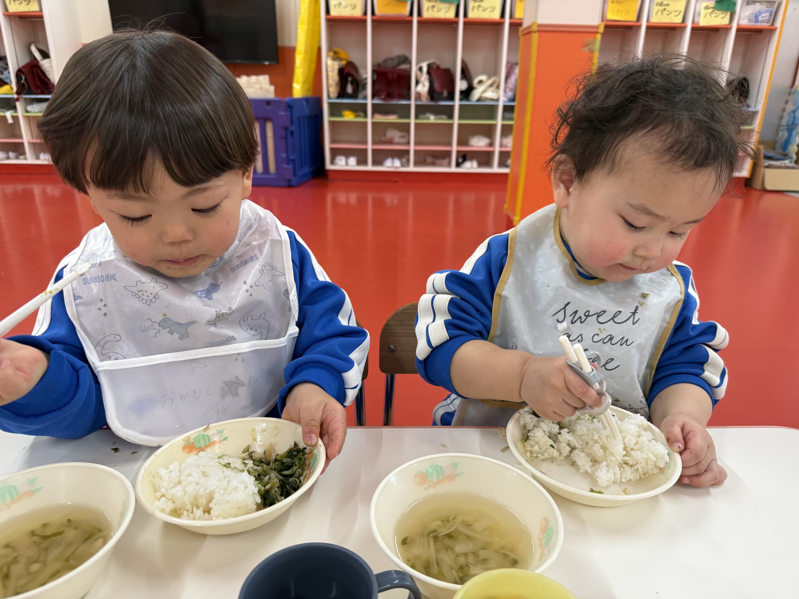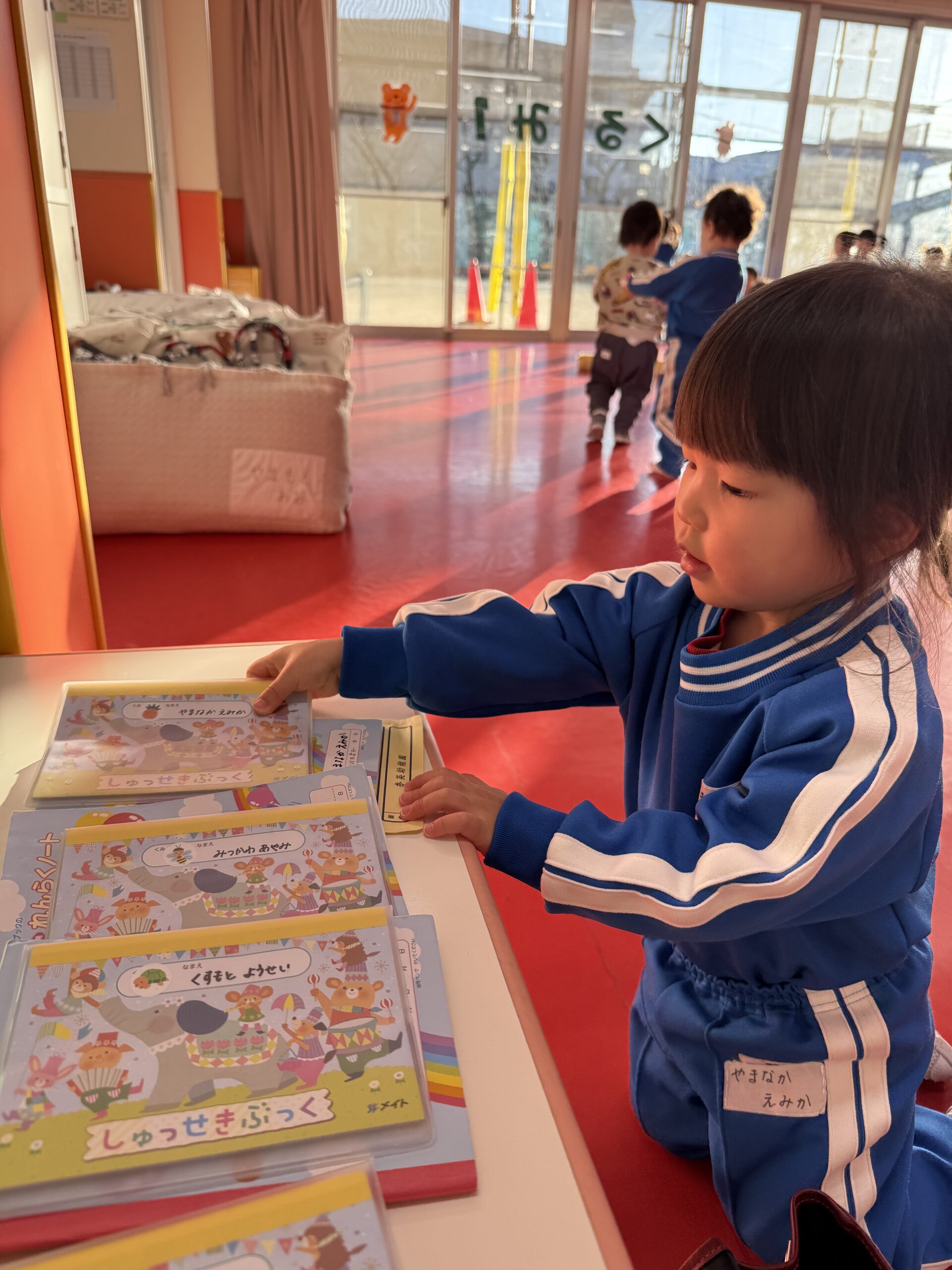 最近は自分たちで帰りの用意をしています!!自分のシール帳を見つけ、タオルにエプロン、コップも頑張ってなおしてくれています❤️🔥