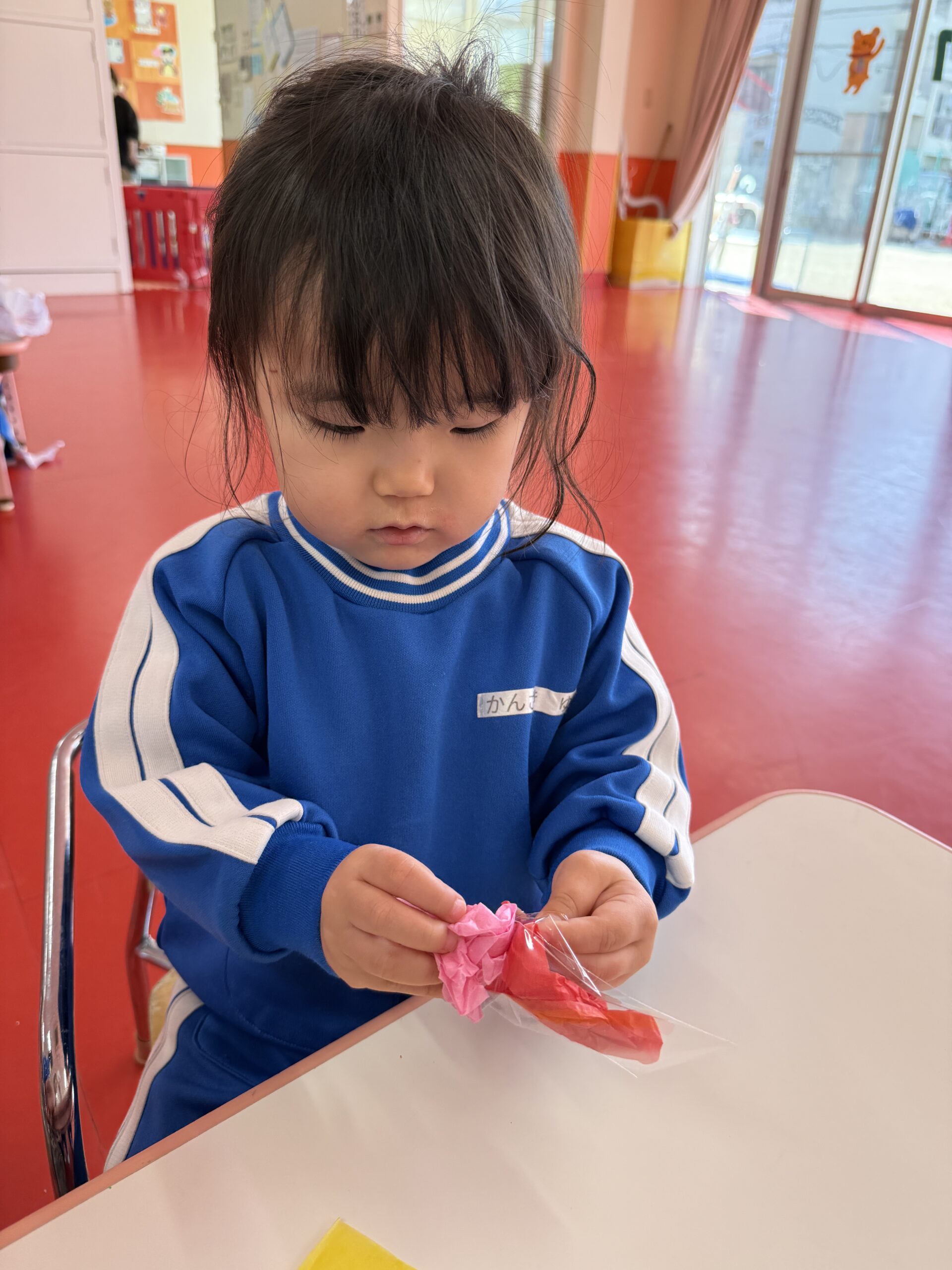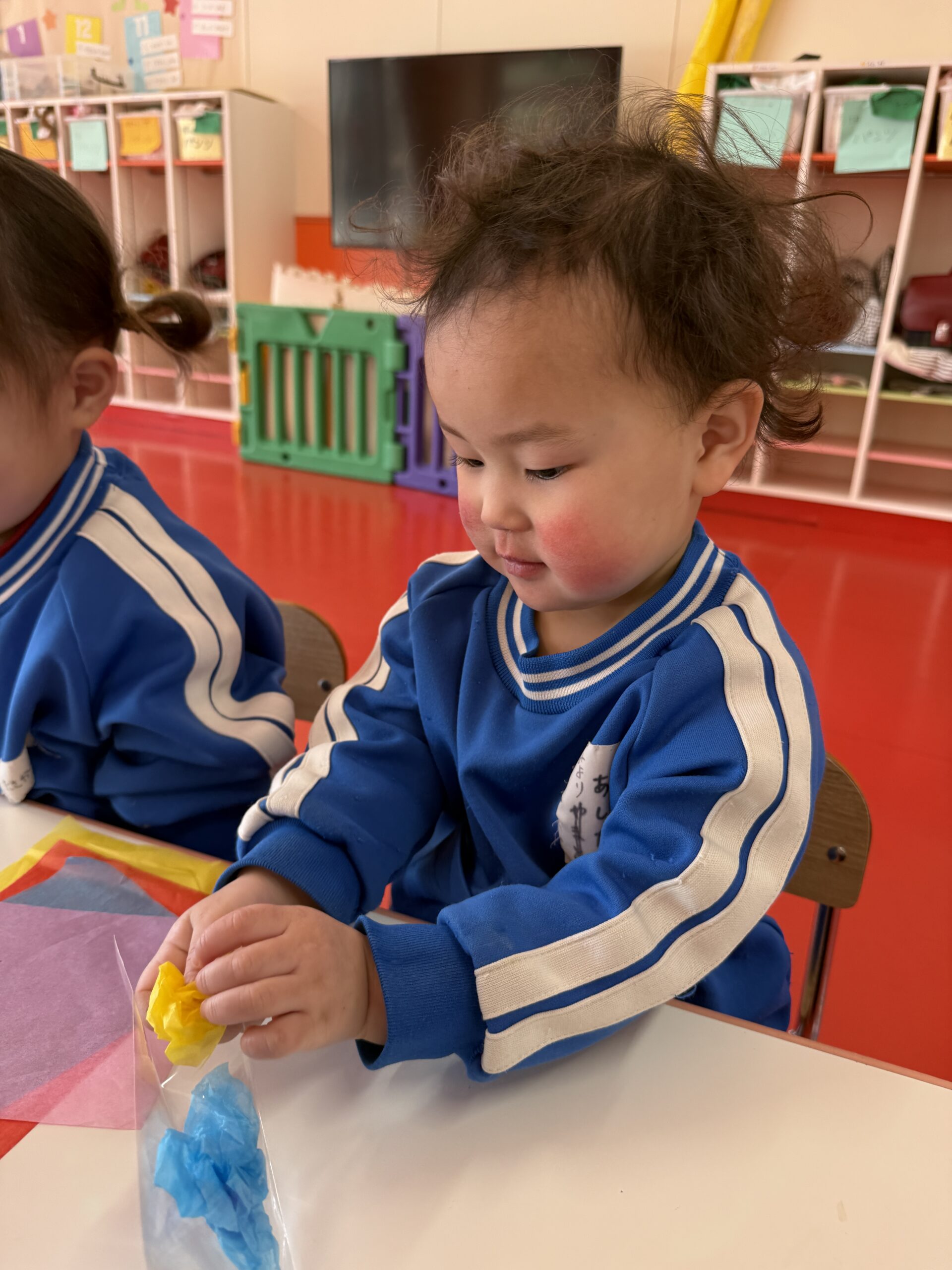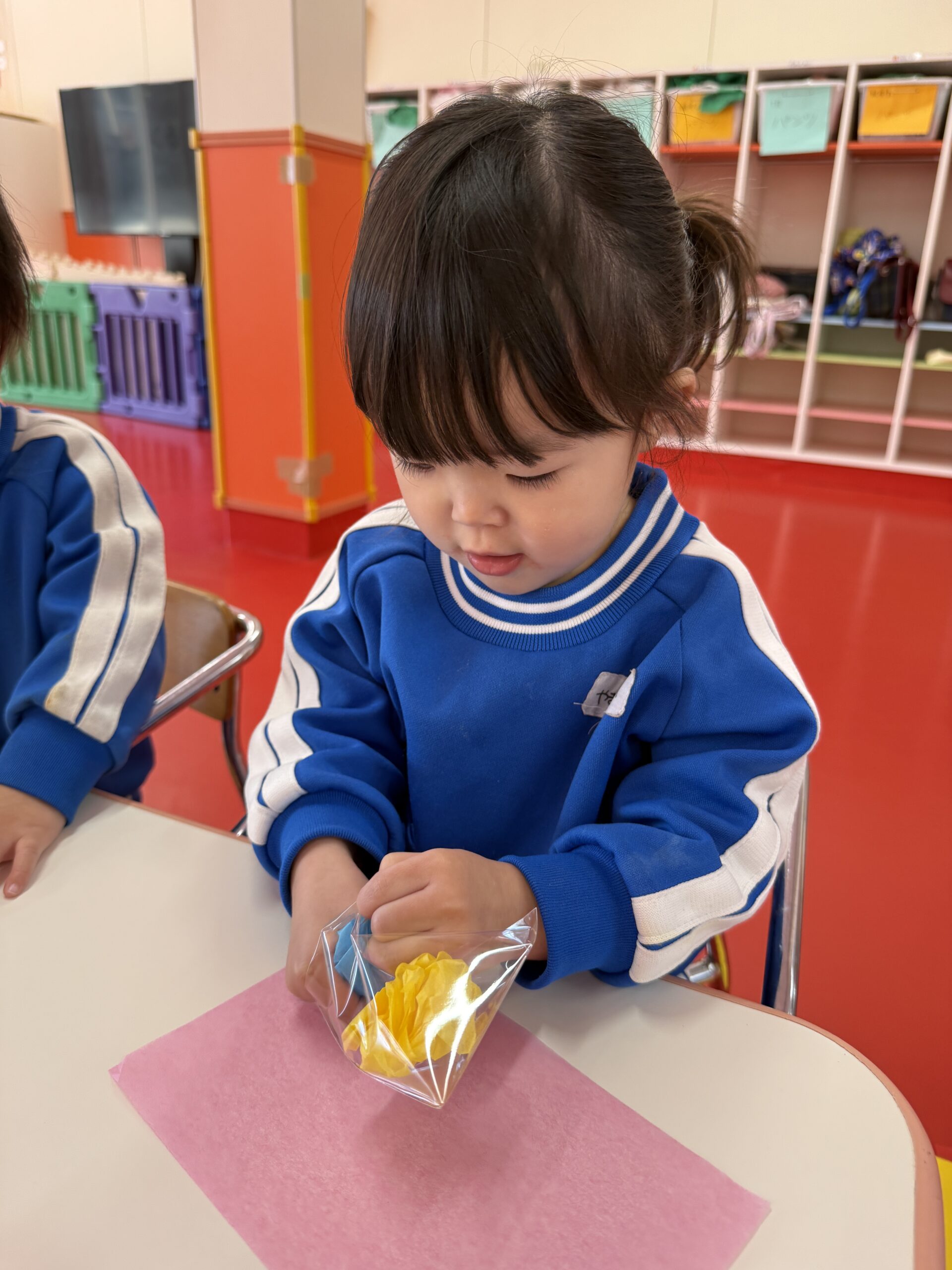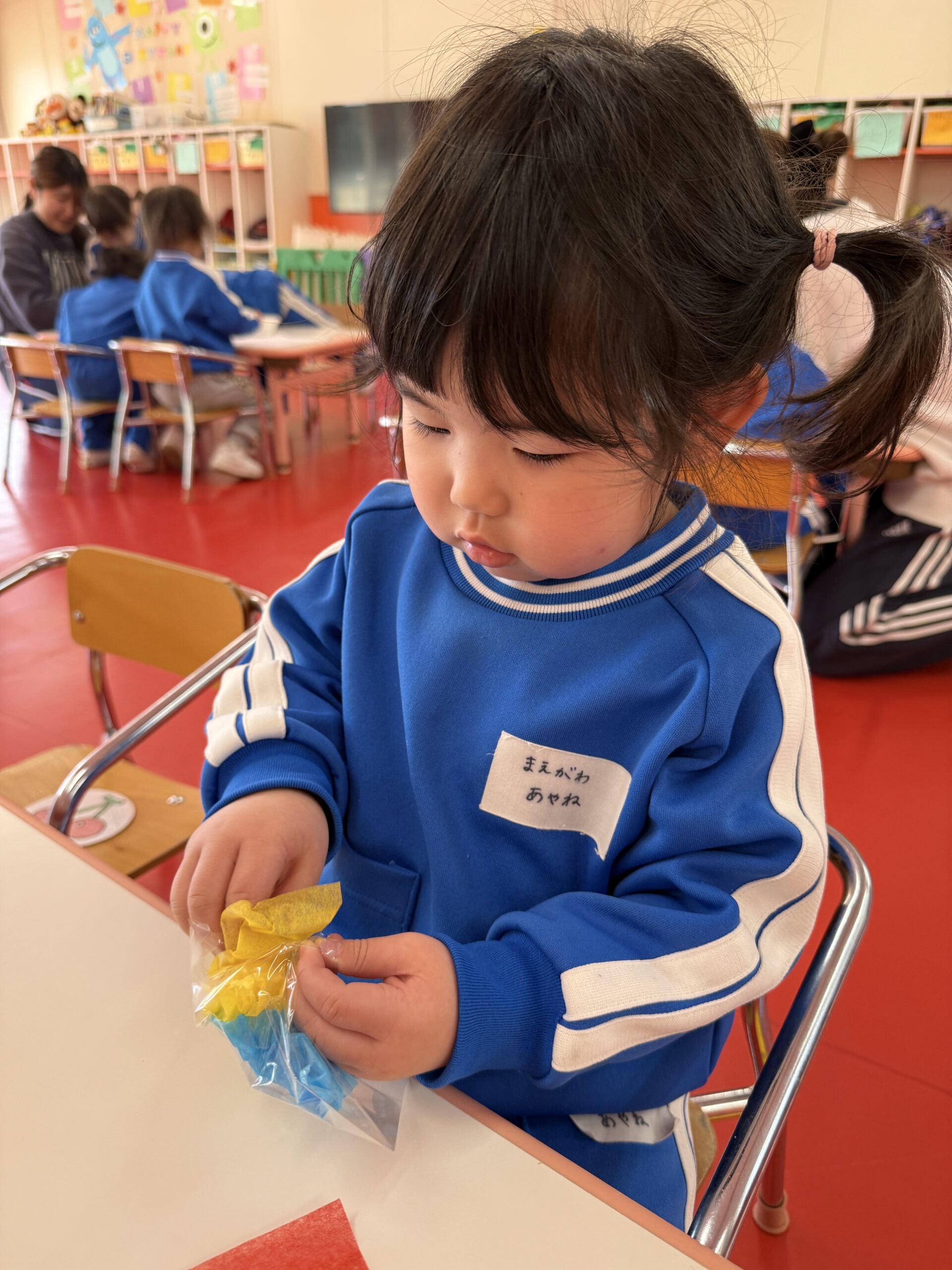 花紙を丸めて袋に入れたりクレパスを使ってお顔を描きました🖍