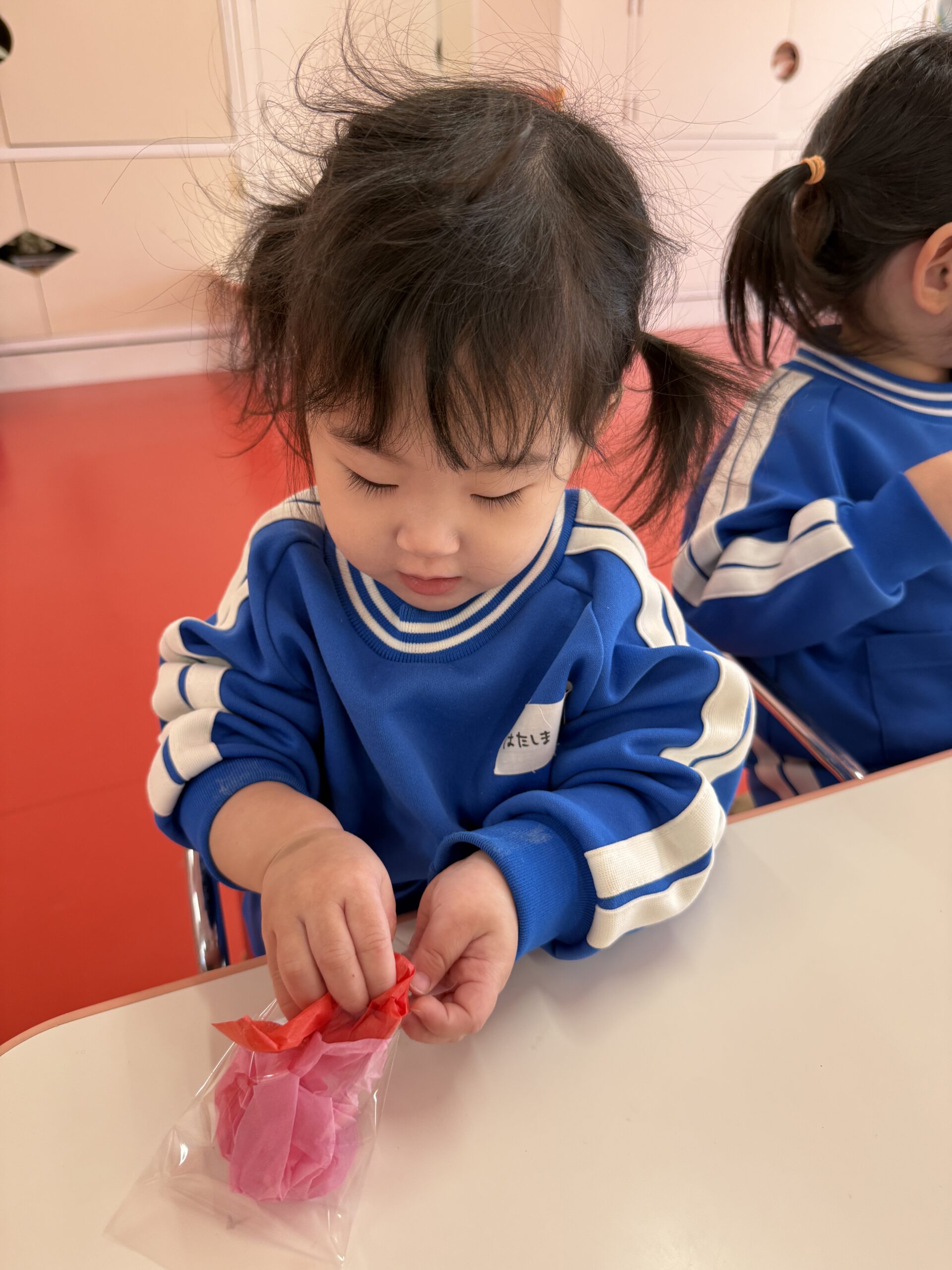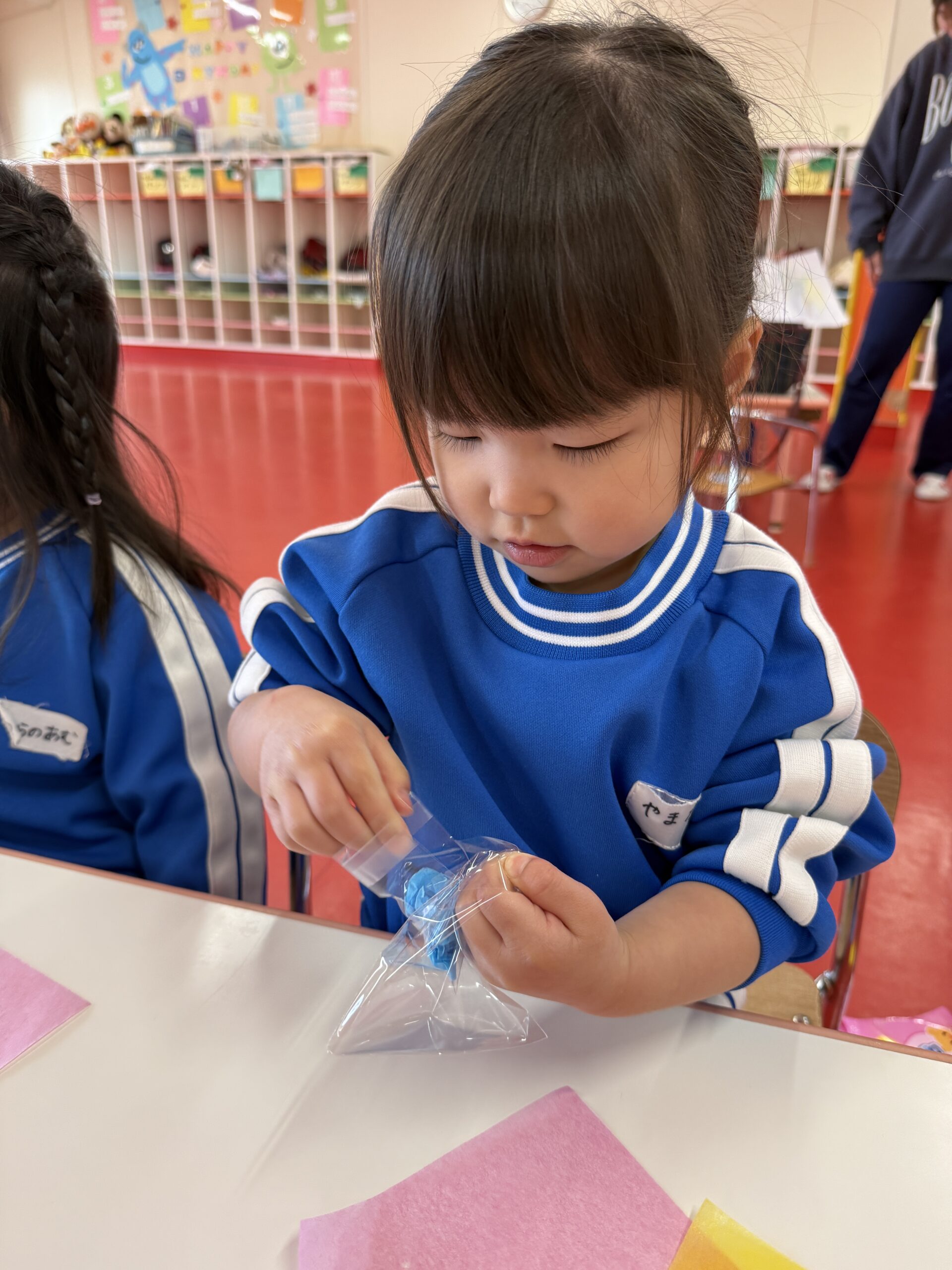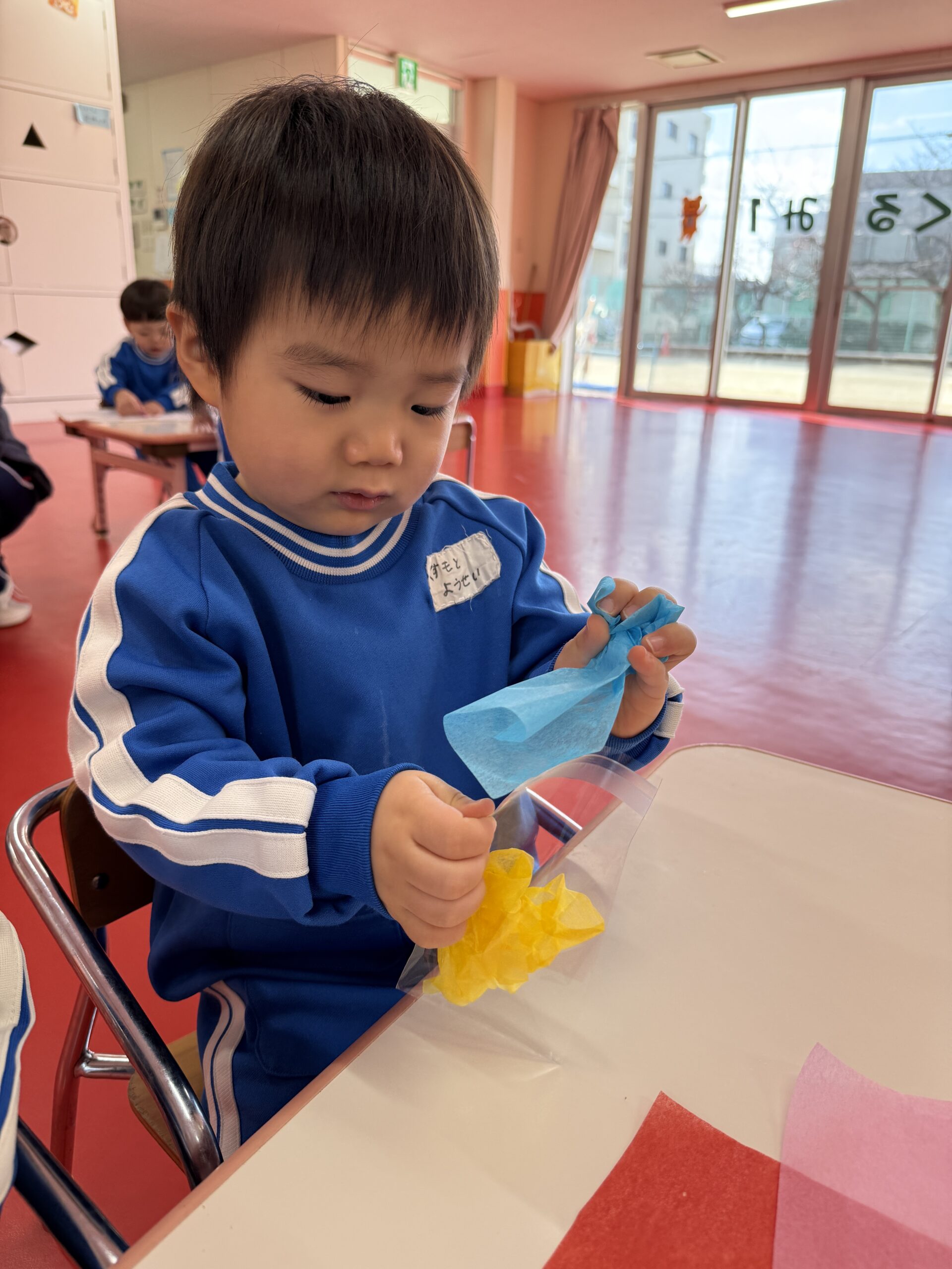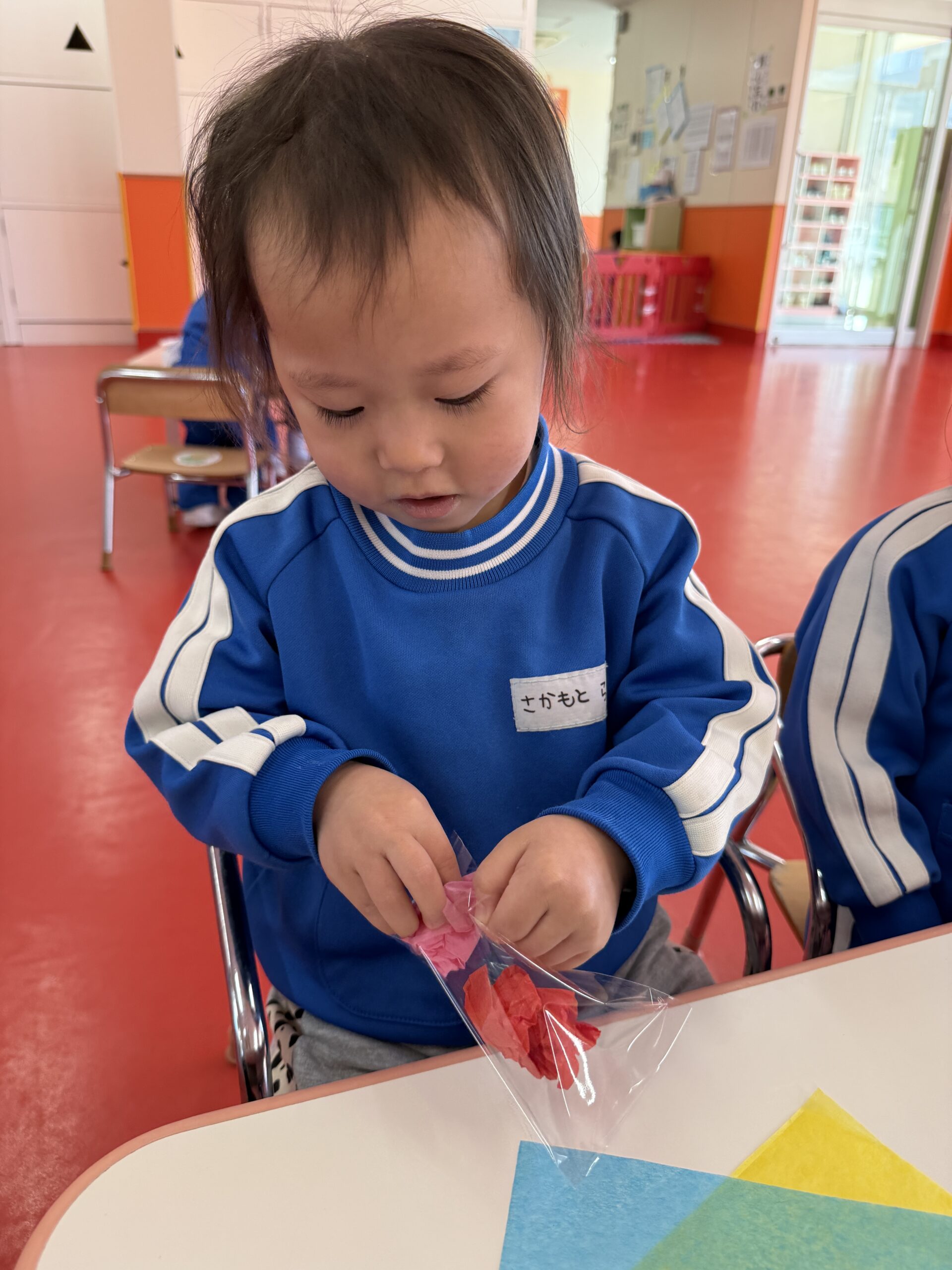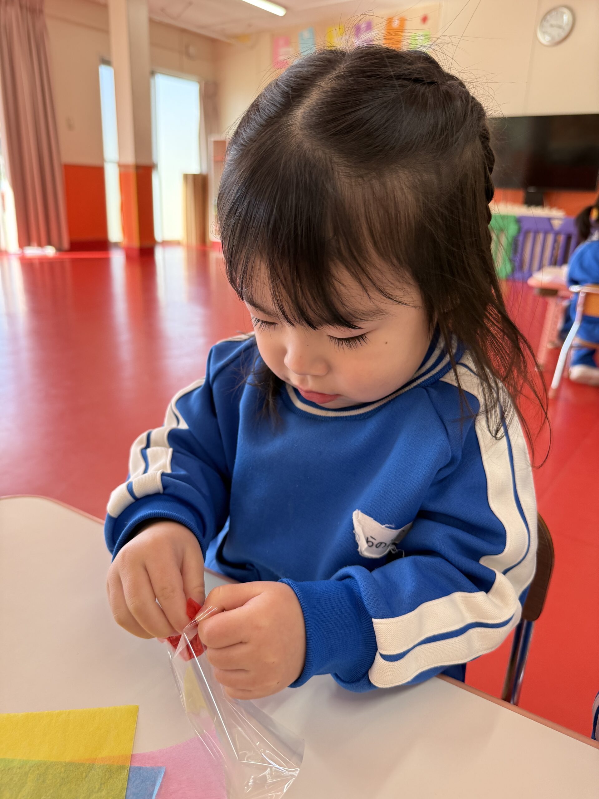 花紙を丸めて袋に入れたりクレパスを使ってお顔を描きました🖍