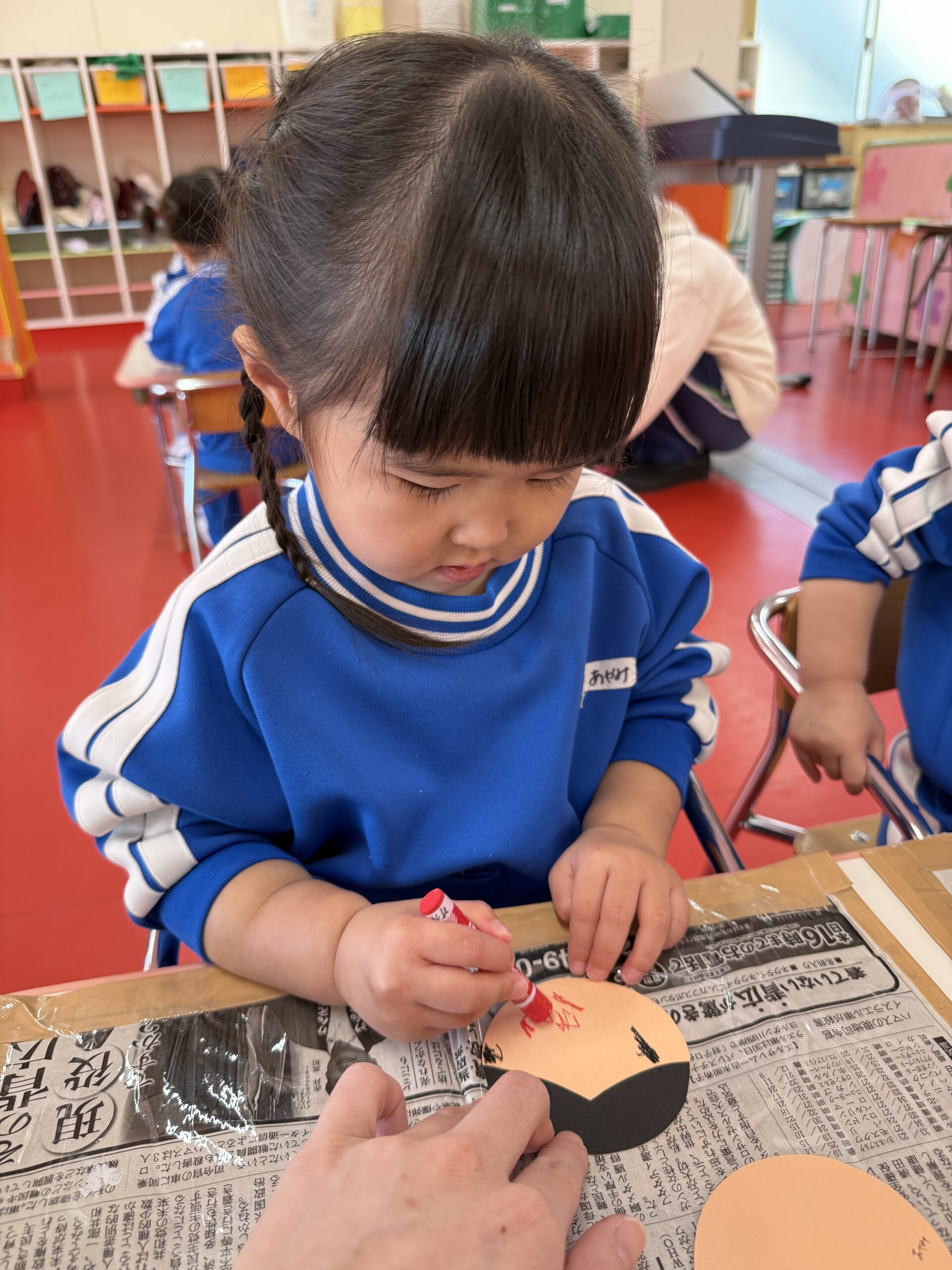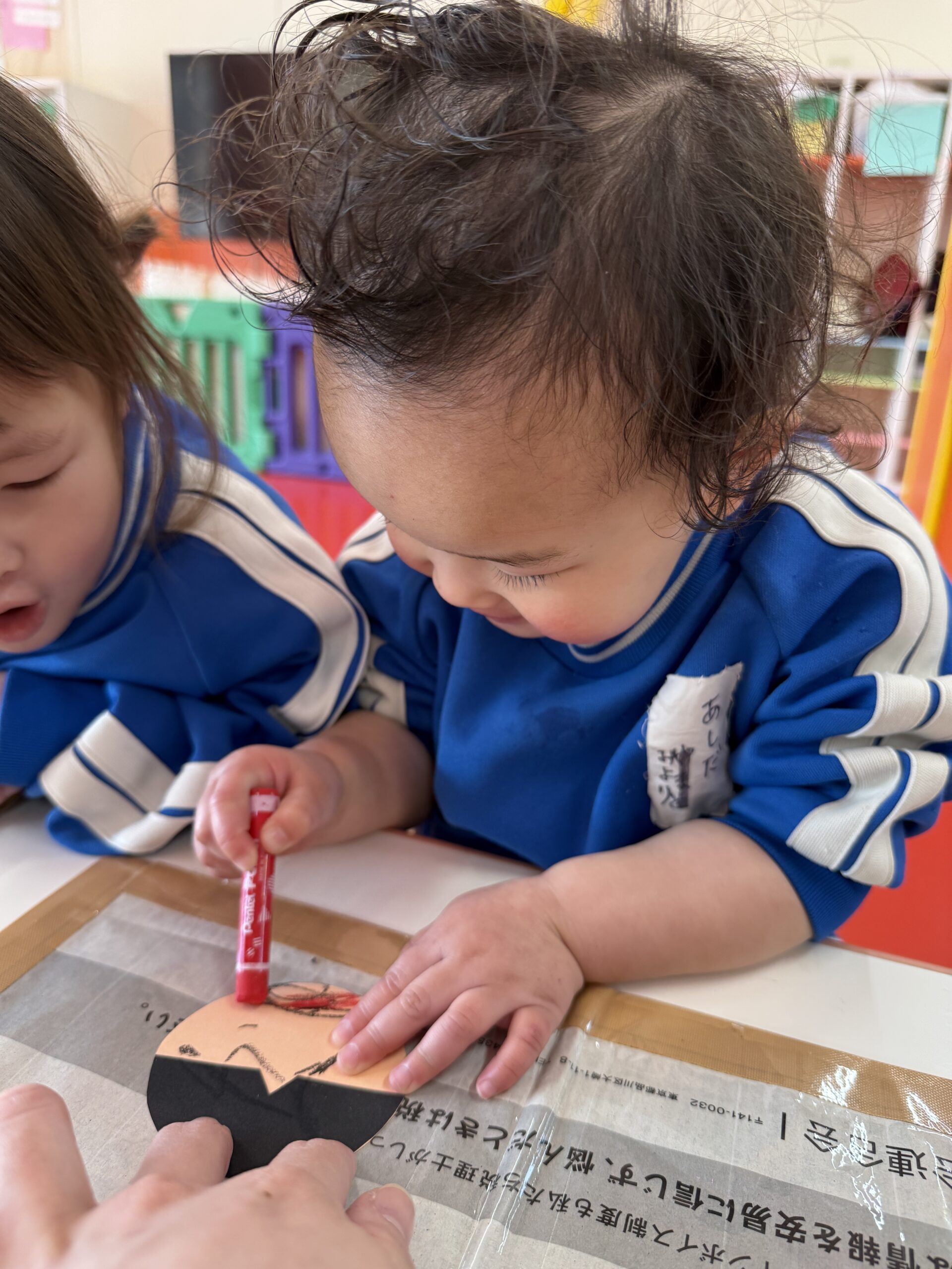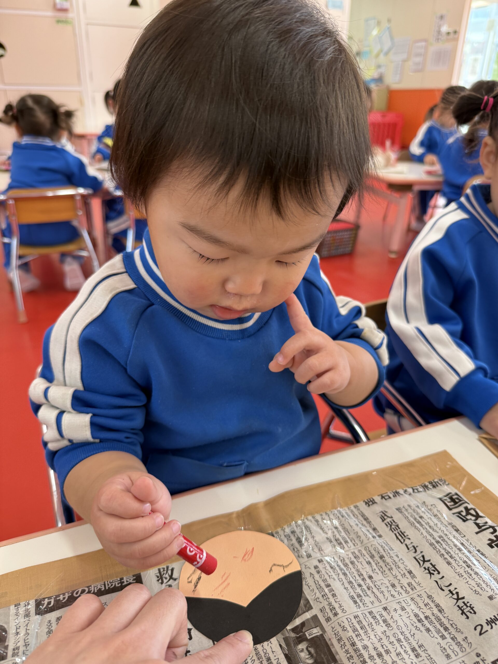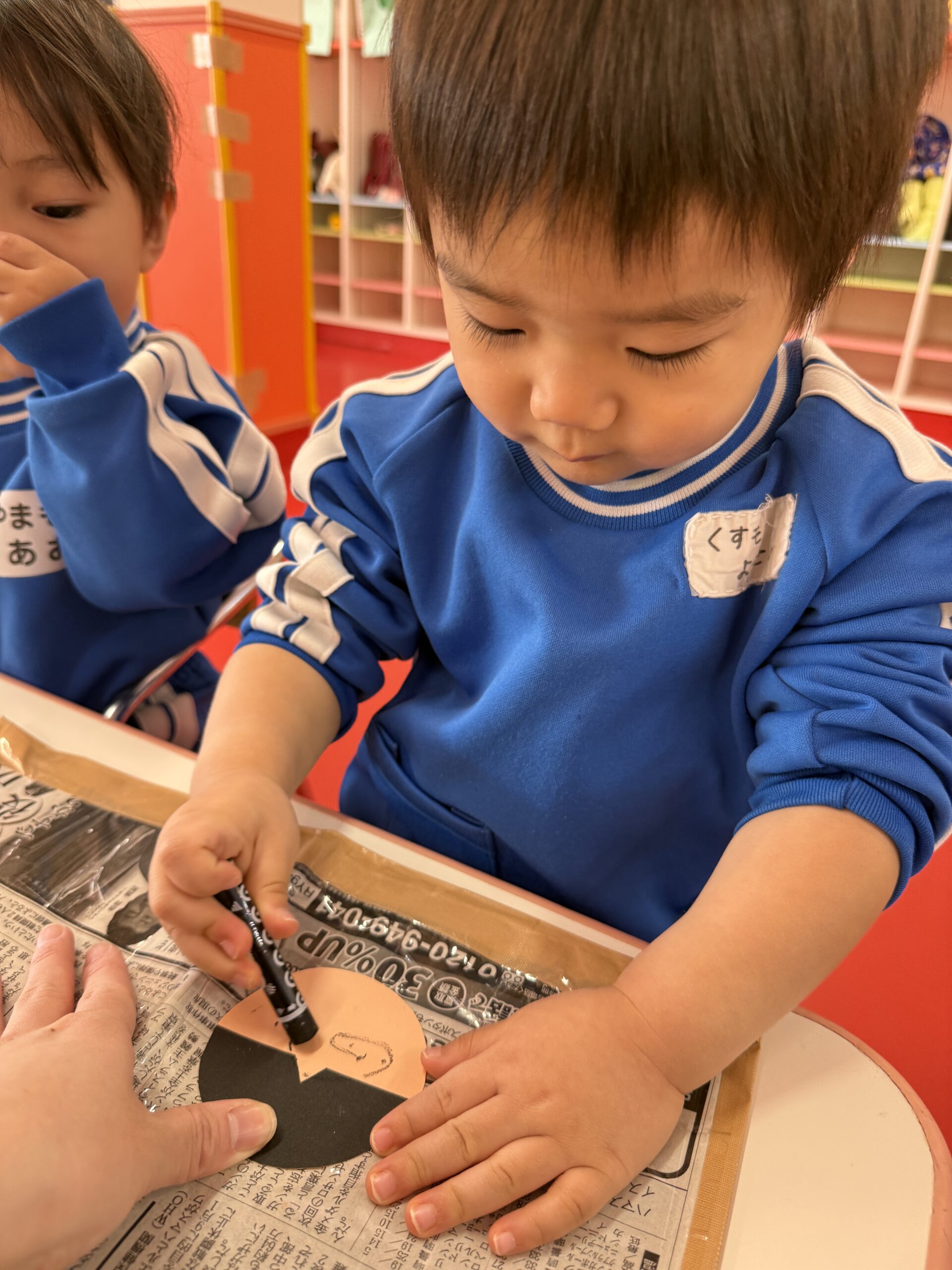 「おめめ🎶」「お口🎶」と口に出しながら上手にお顔を描いてくれていました😉