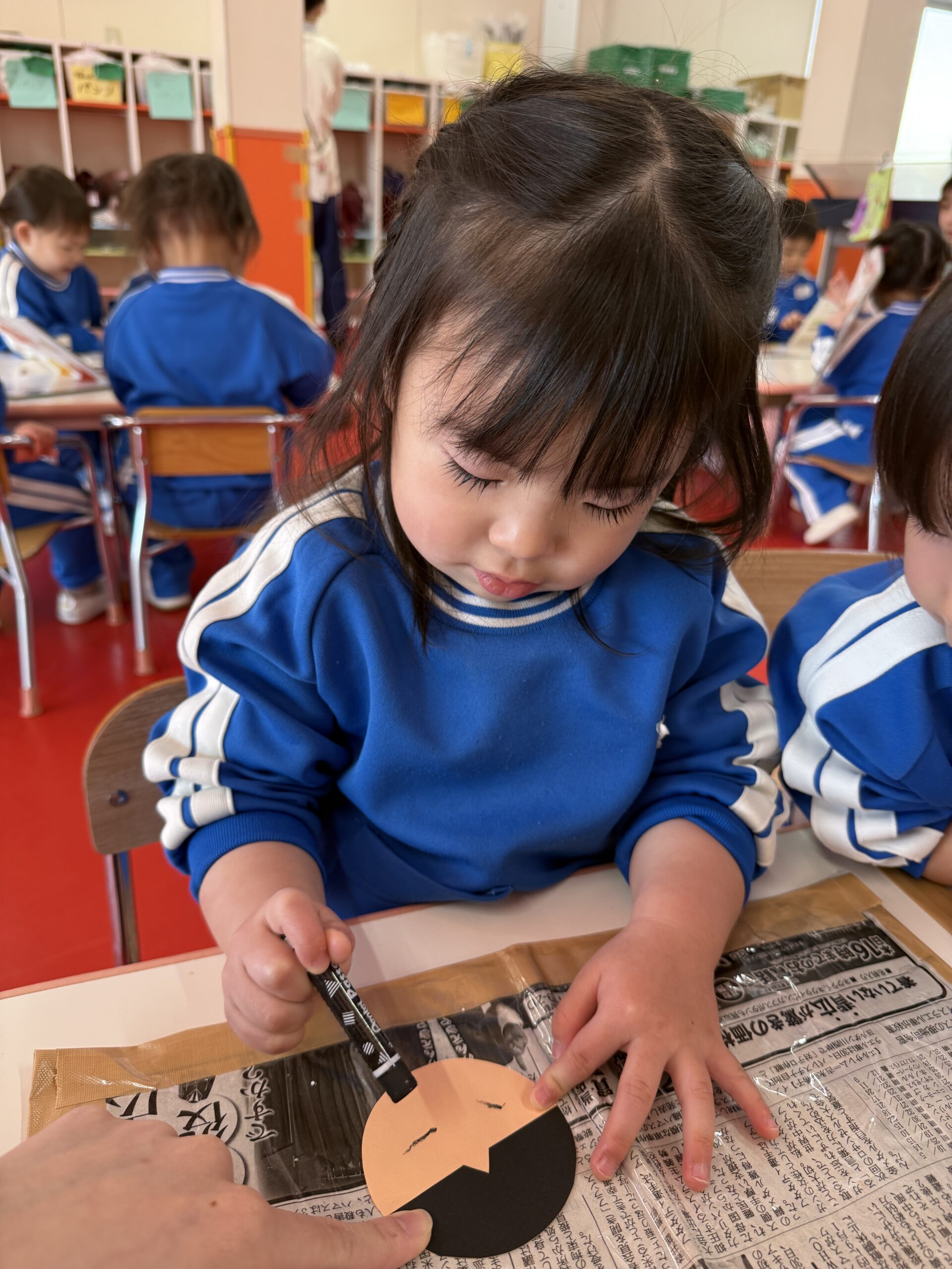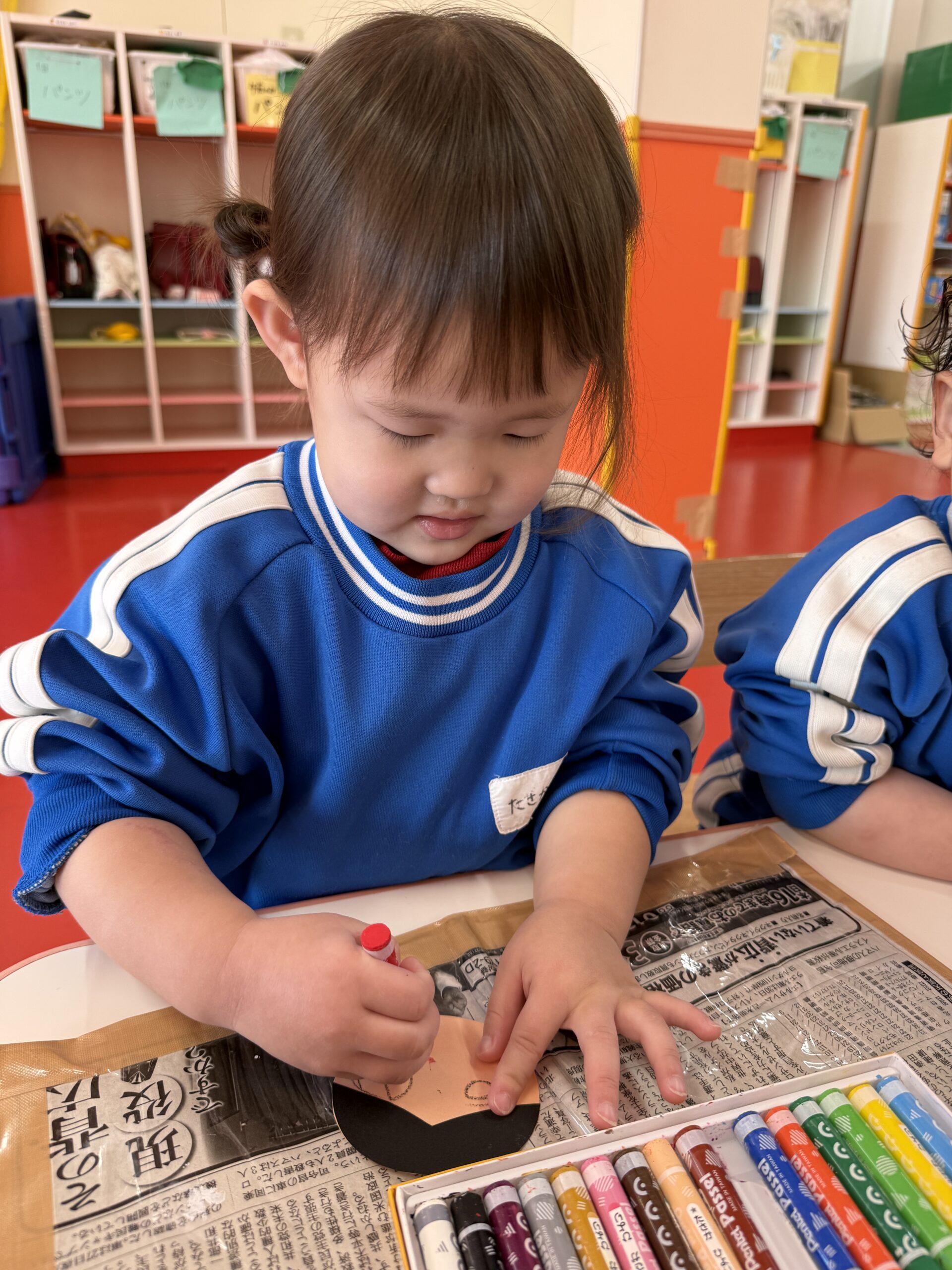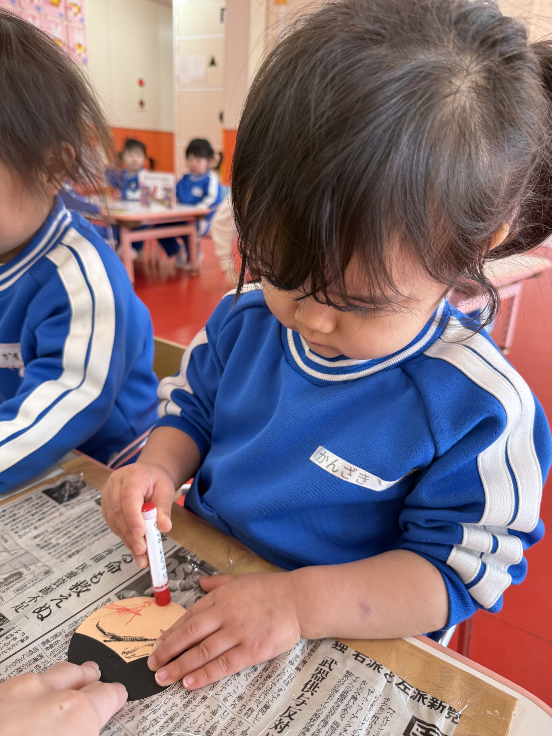 「おめめ🎶」「お口🎶」と口に出しながら上手にお顔を描いてくれていました😉