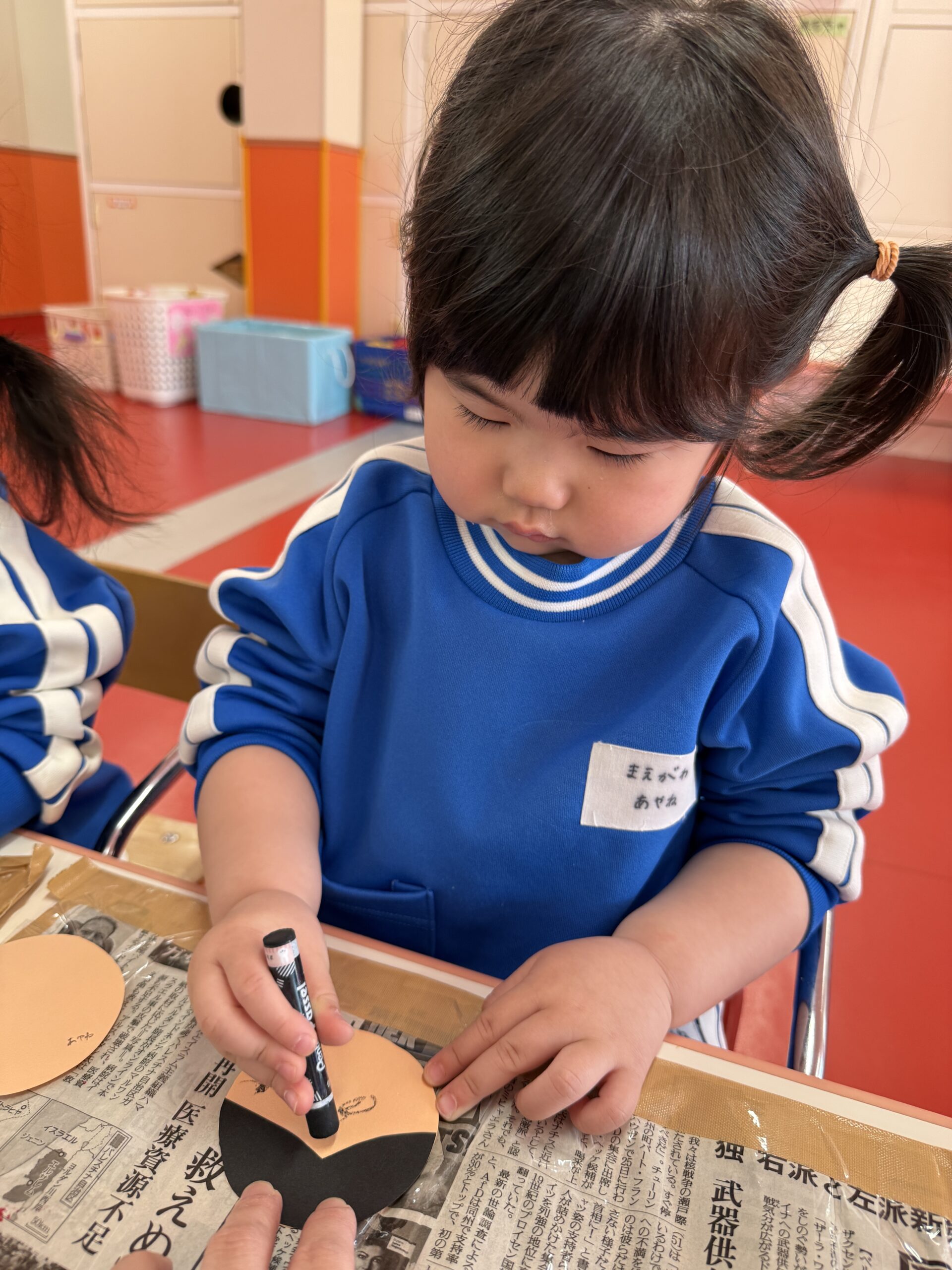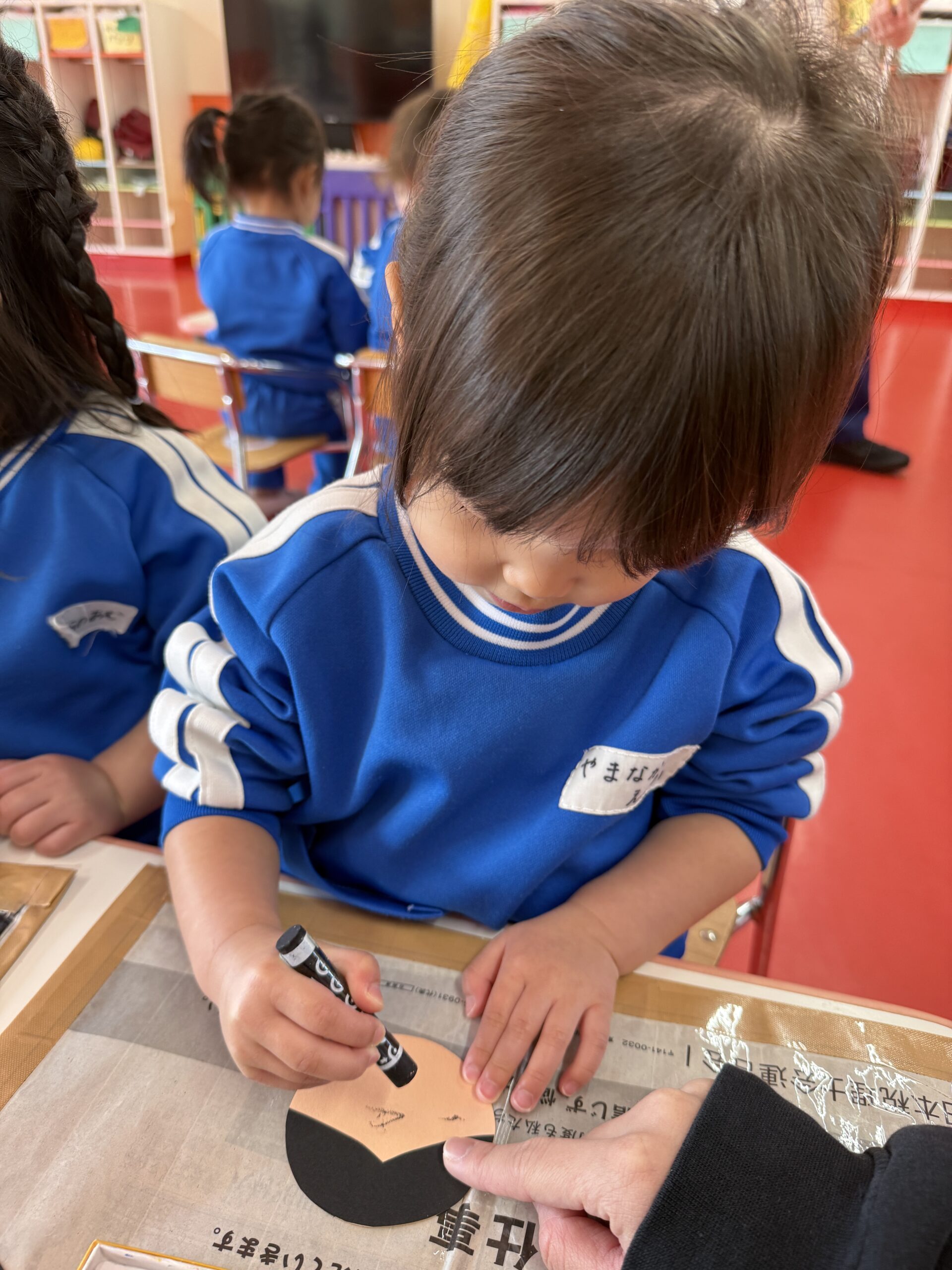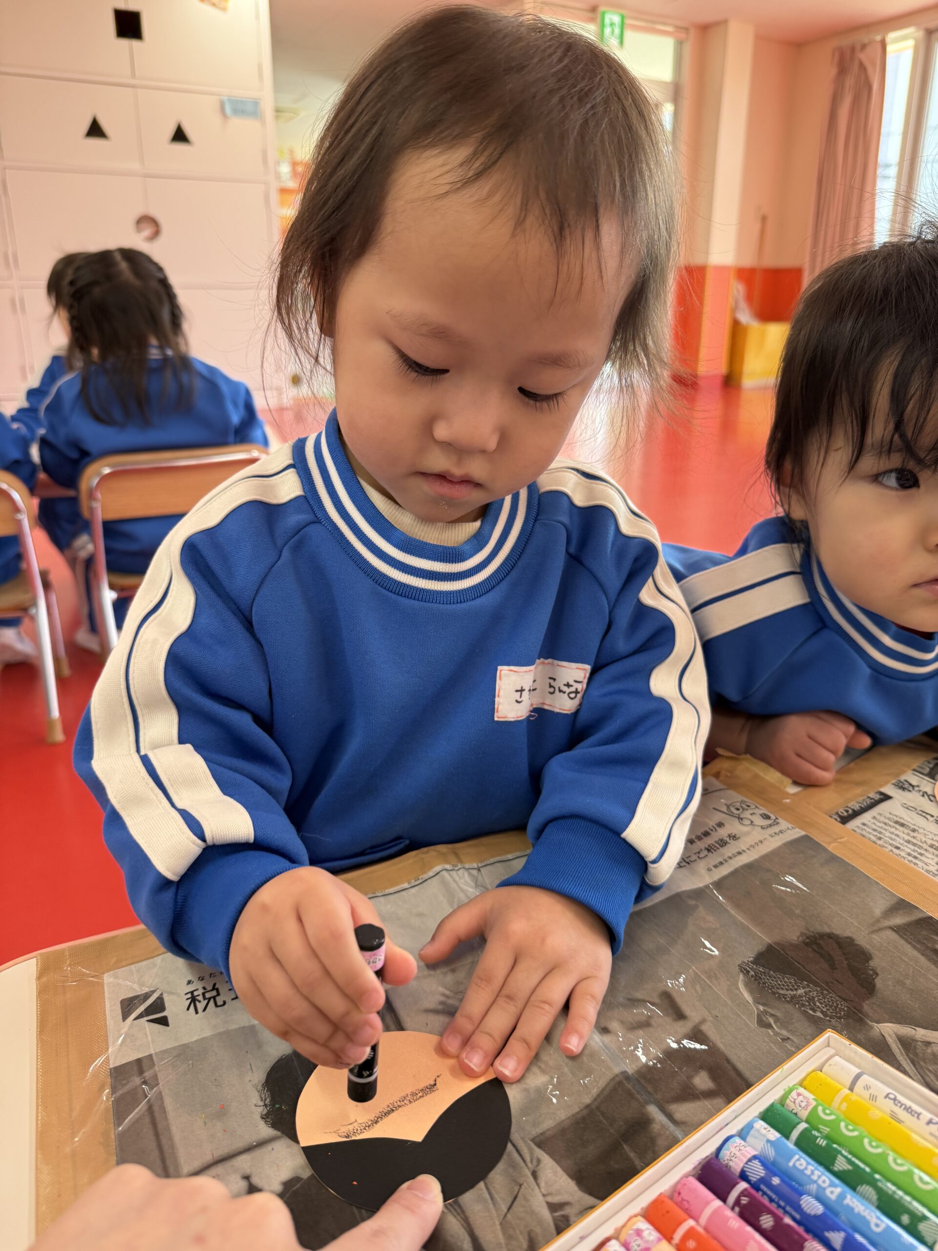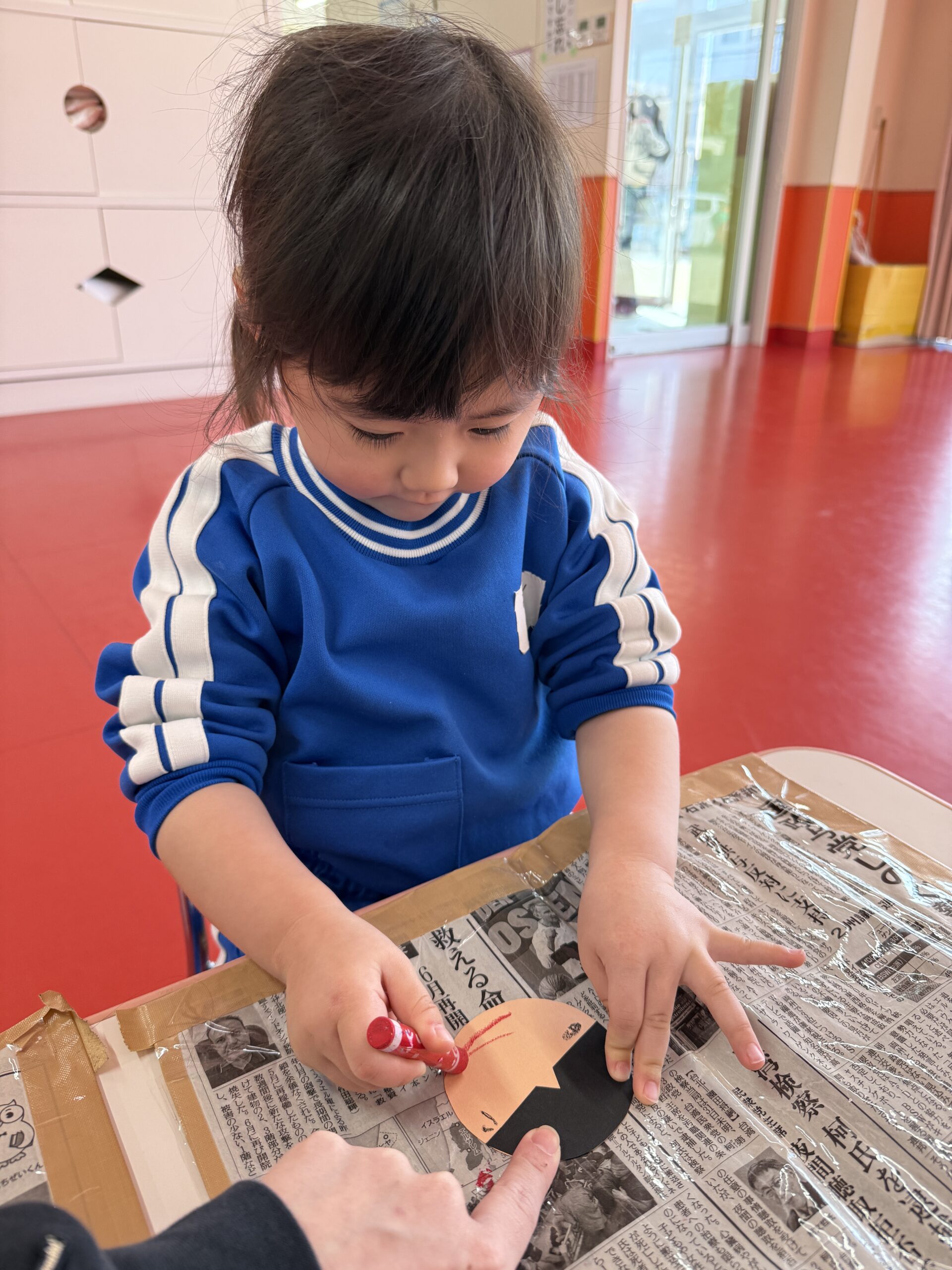 「おめめ🎶」「お口🎶」と口に出しながら上手にお顔を描いてくれていました😉
