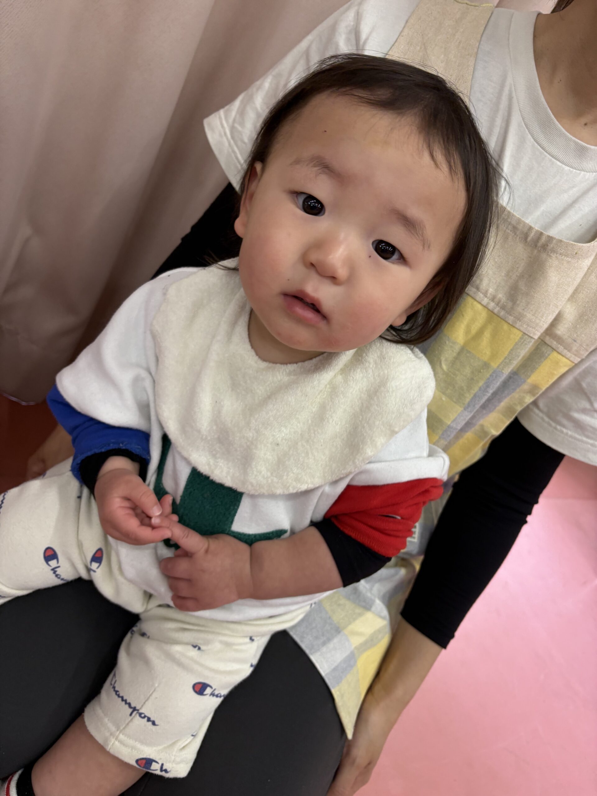 ズボンをあげる練習もしたり、お椀を押さえて、スプーンで、食べる事も、頑張っています❣️