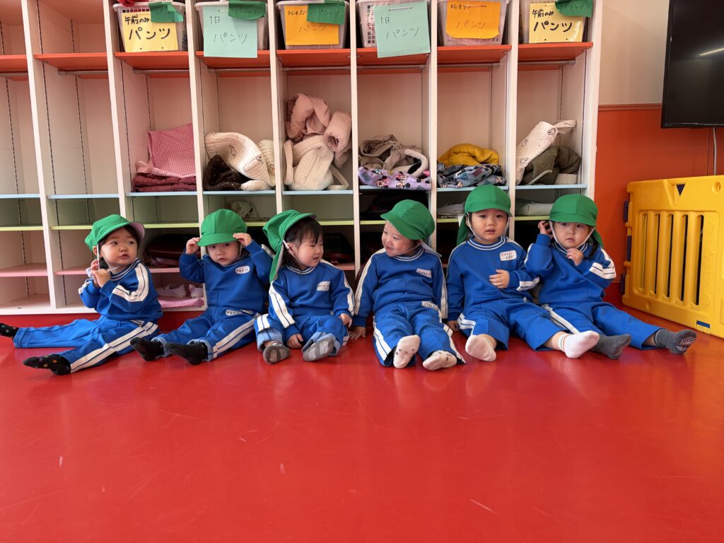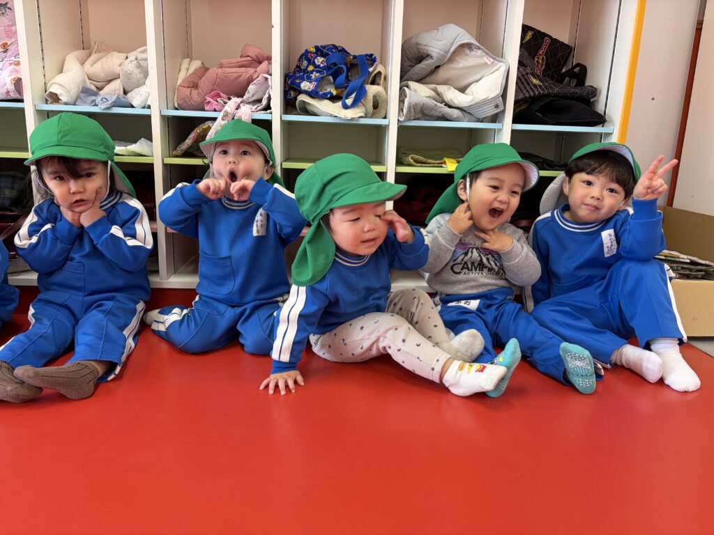 上靴を脱いで帽子を被ると、ロッカーの前に座って待ってくれています😊